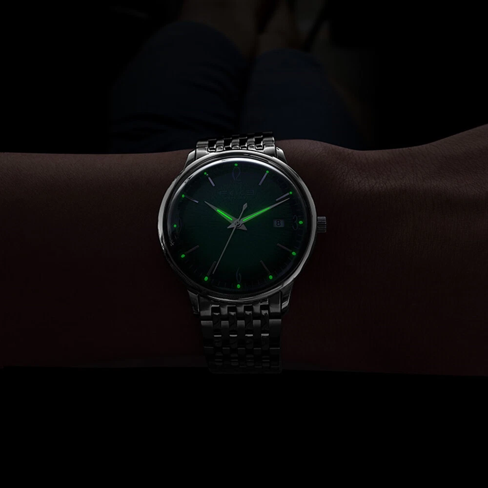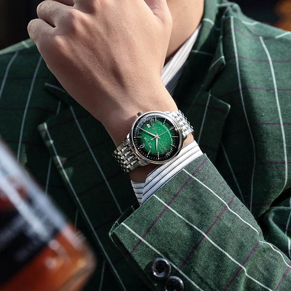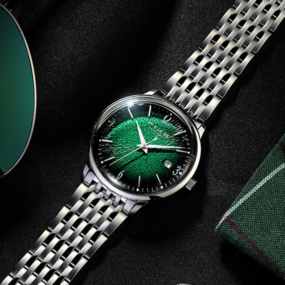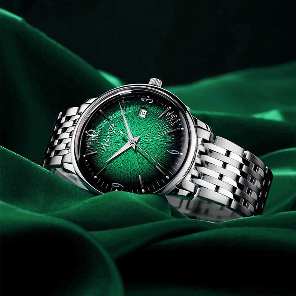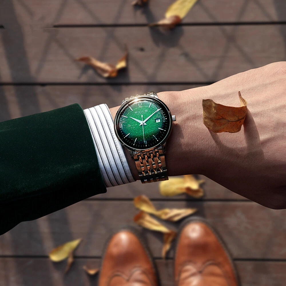 Men's Automatic Mechanical Watches Emerald Green Stainless Steel Thin Waterproof