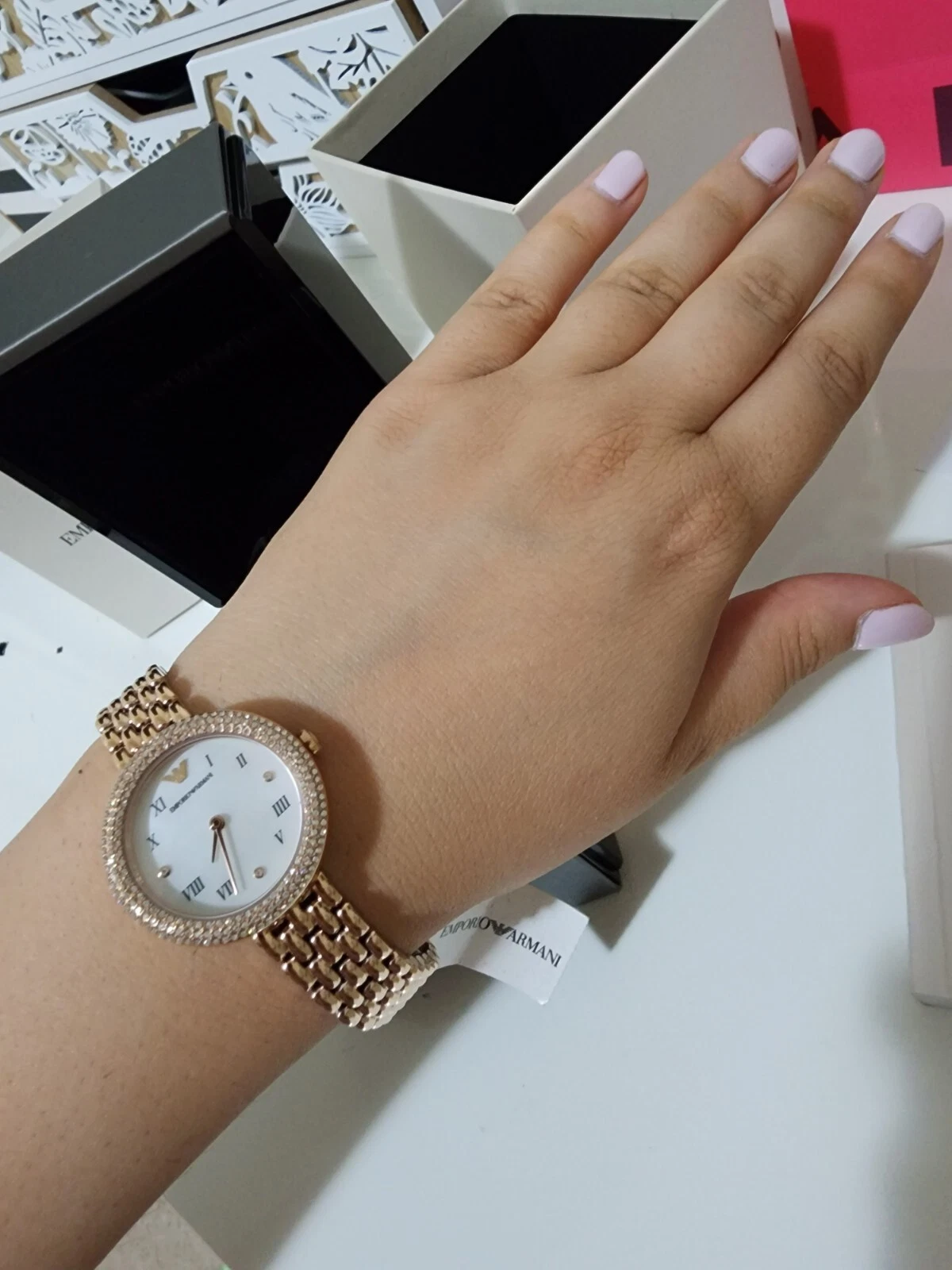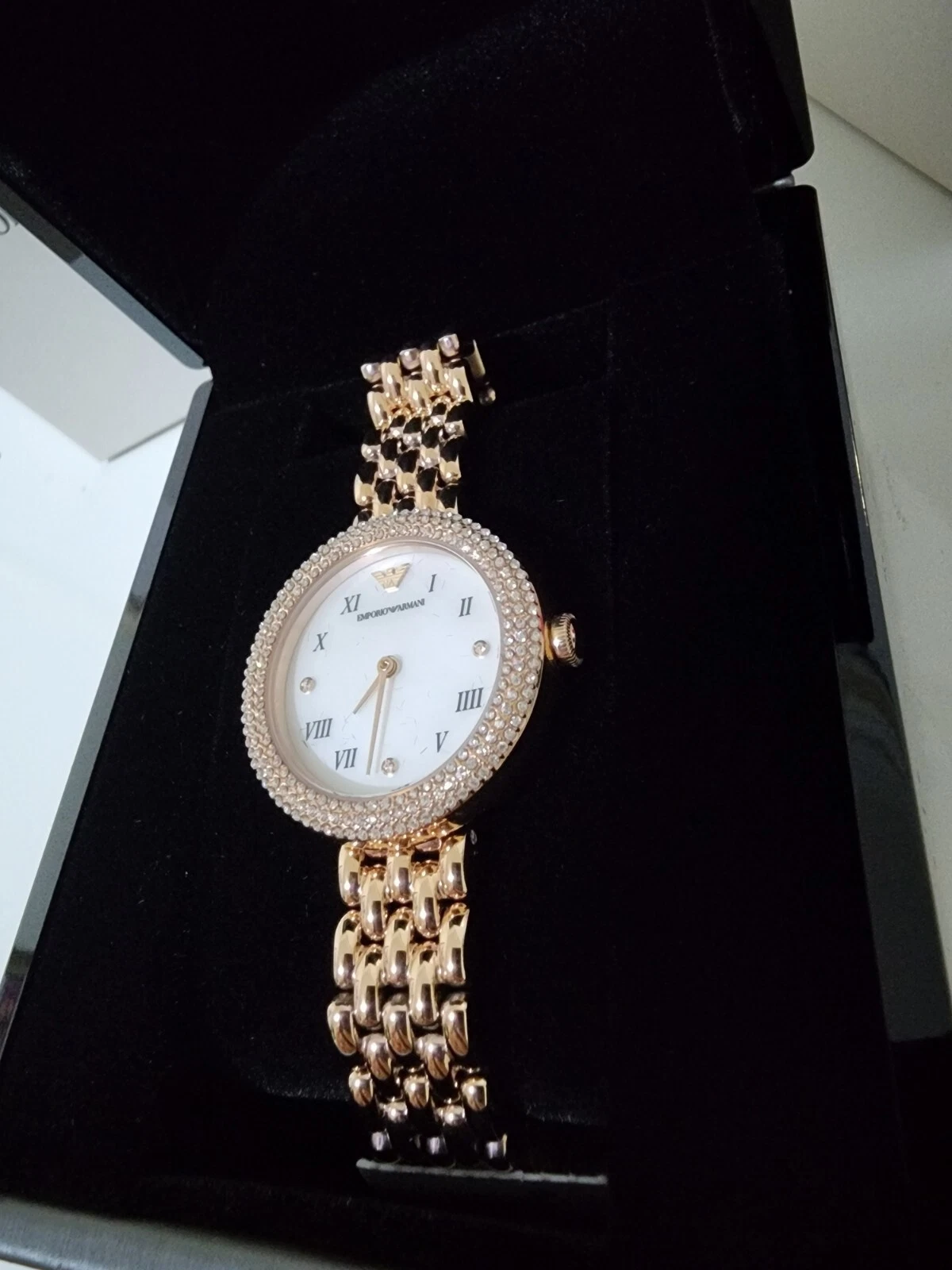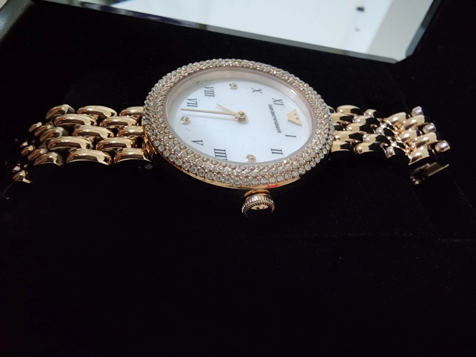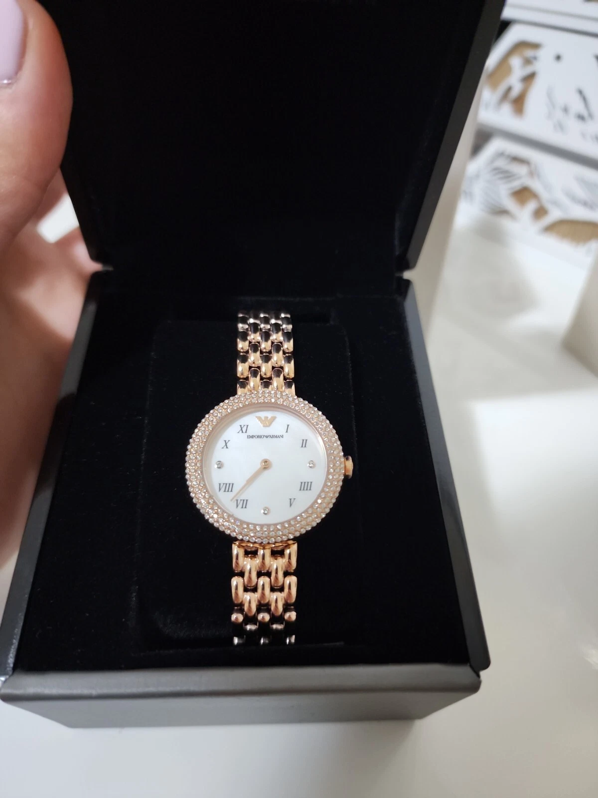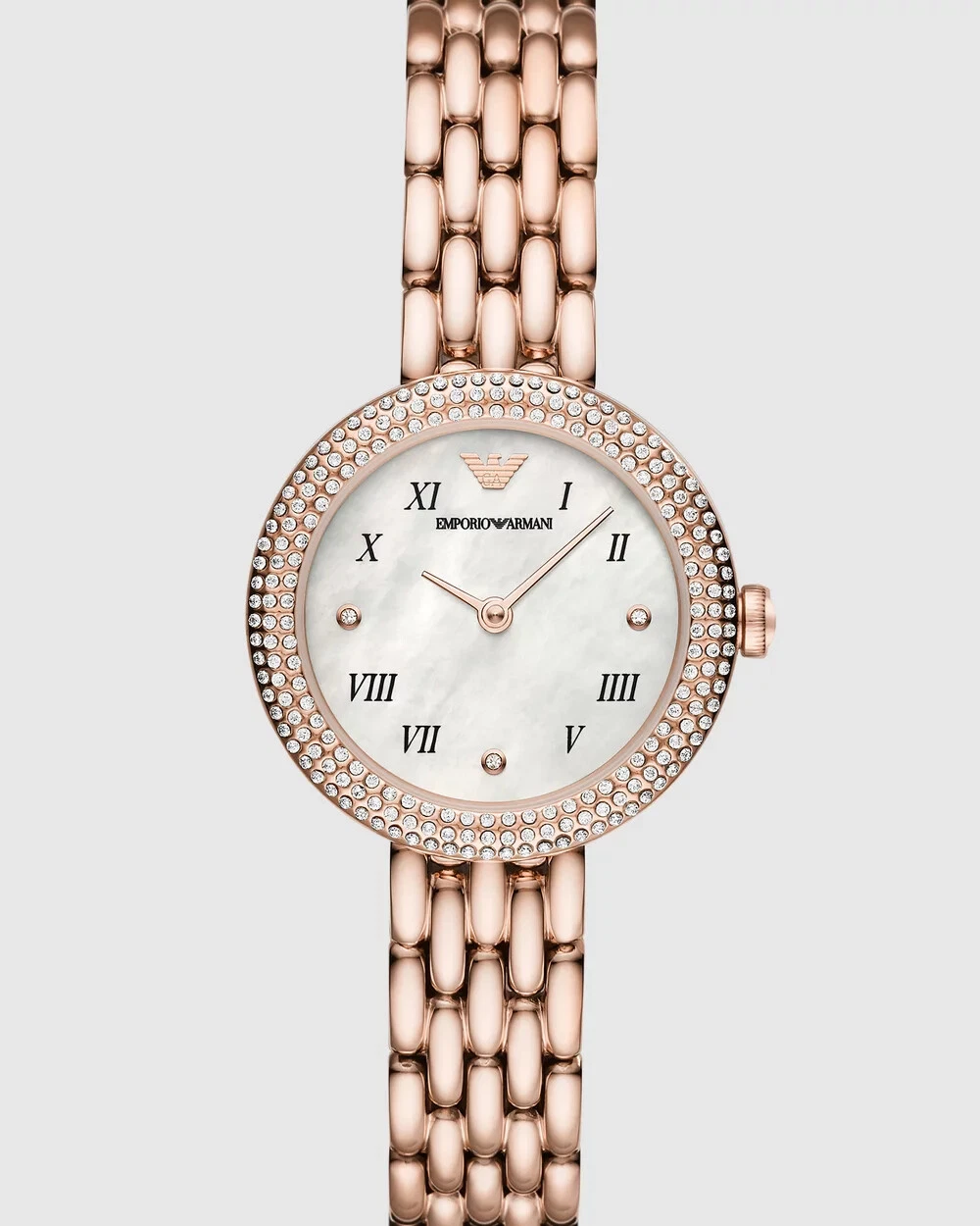 EMPORIO ARMANI FAVOURITE Rose Gold Tone diamantés Analogue Watch AR11355 BNIB