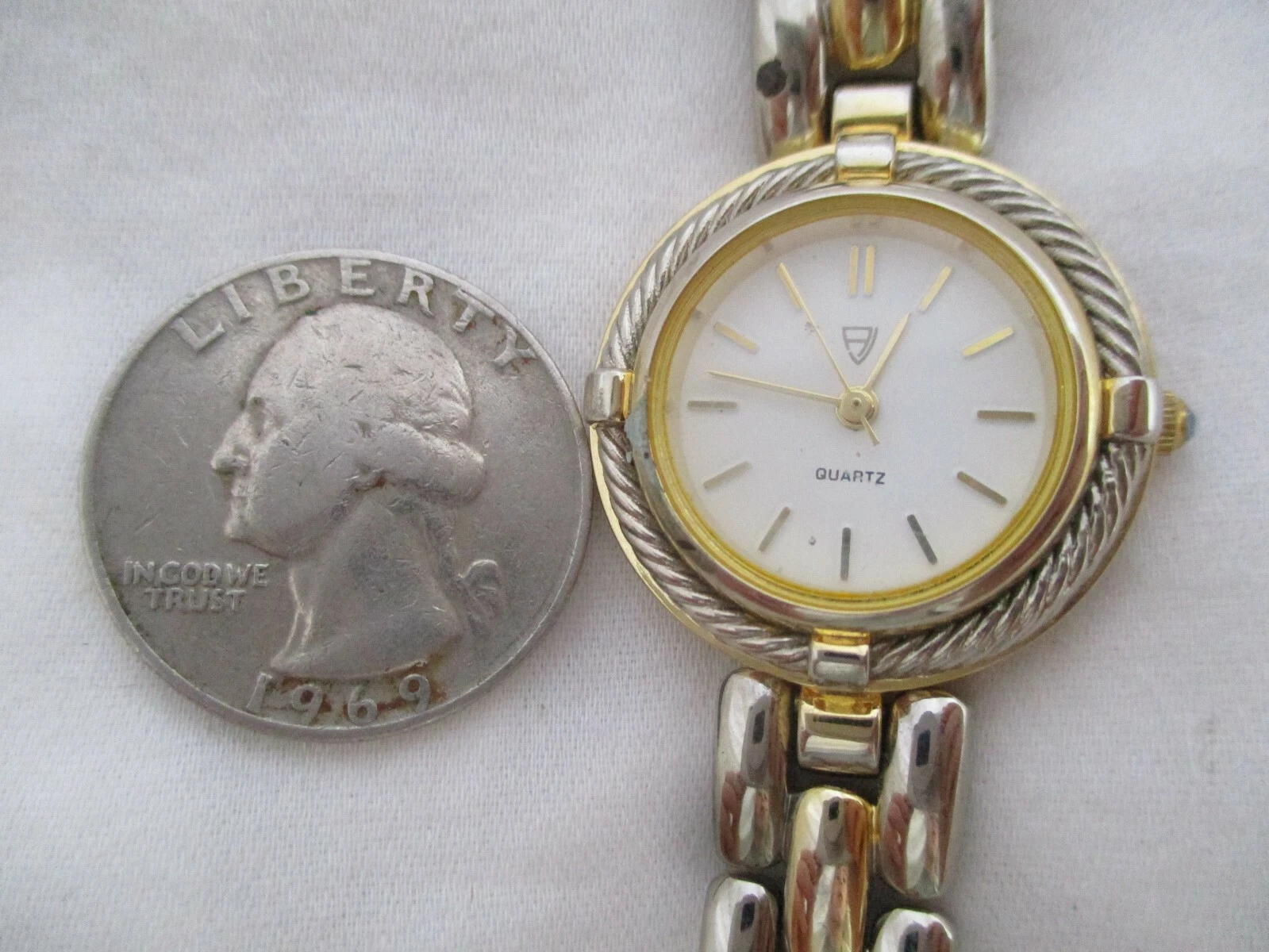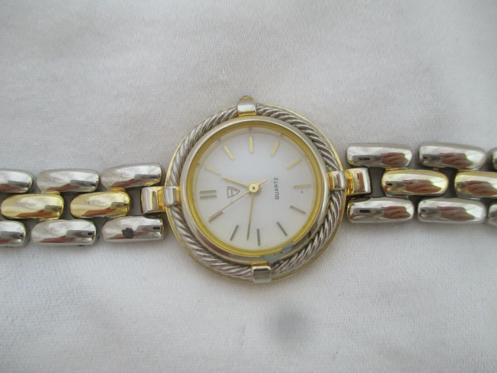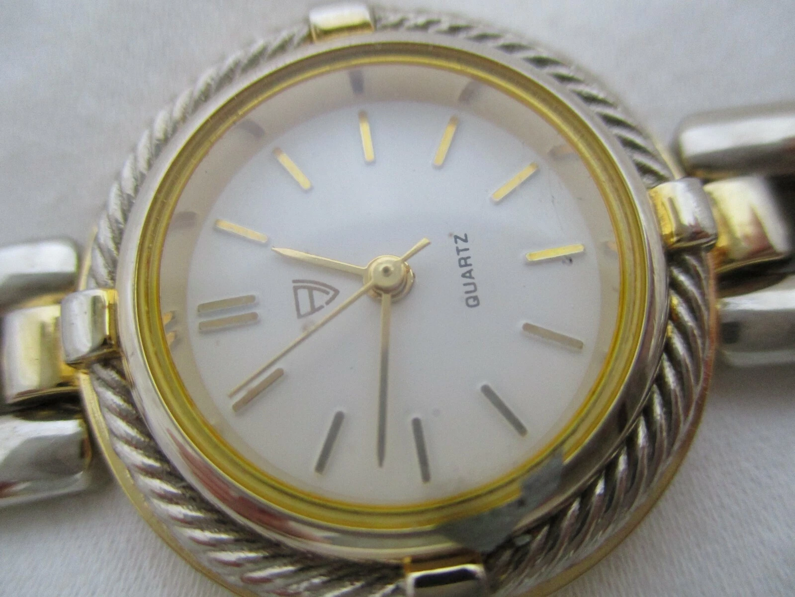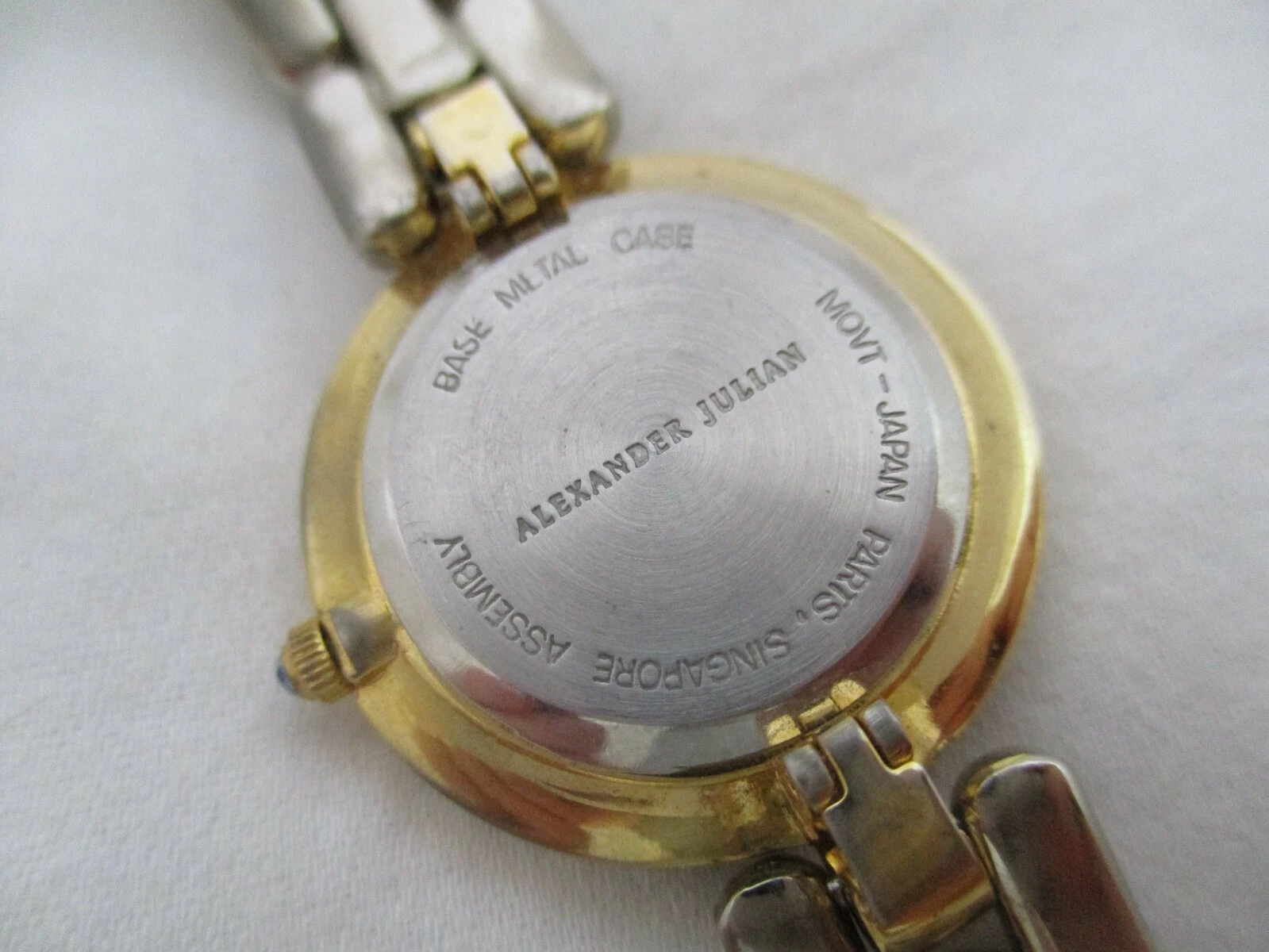 Alexander Julian Wristwatch Silver & Gold Tone Band Round White Face Elegant