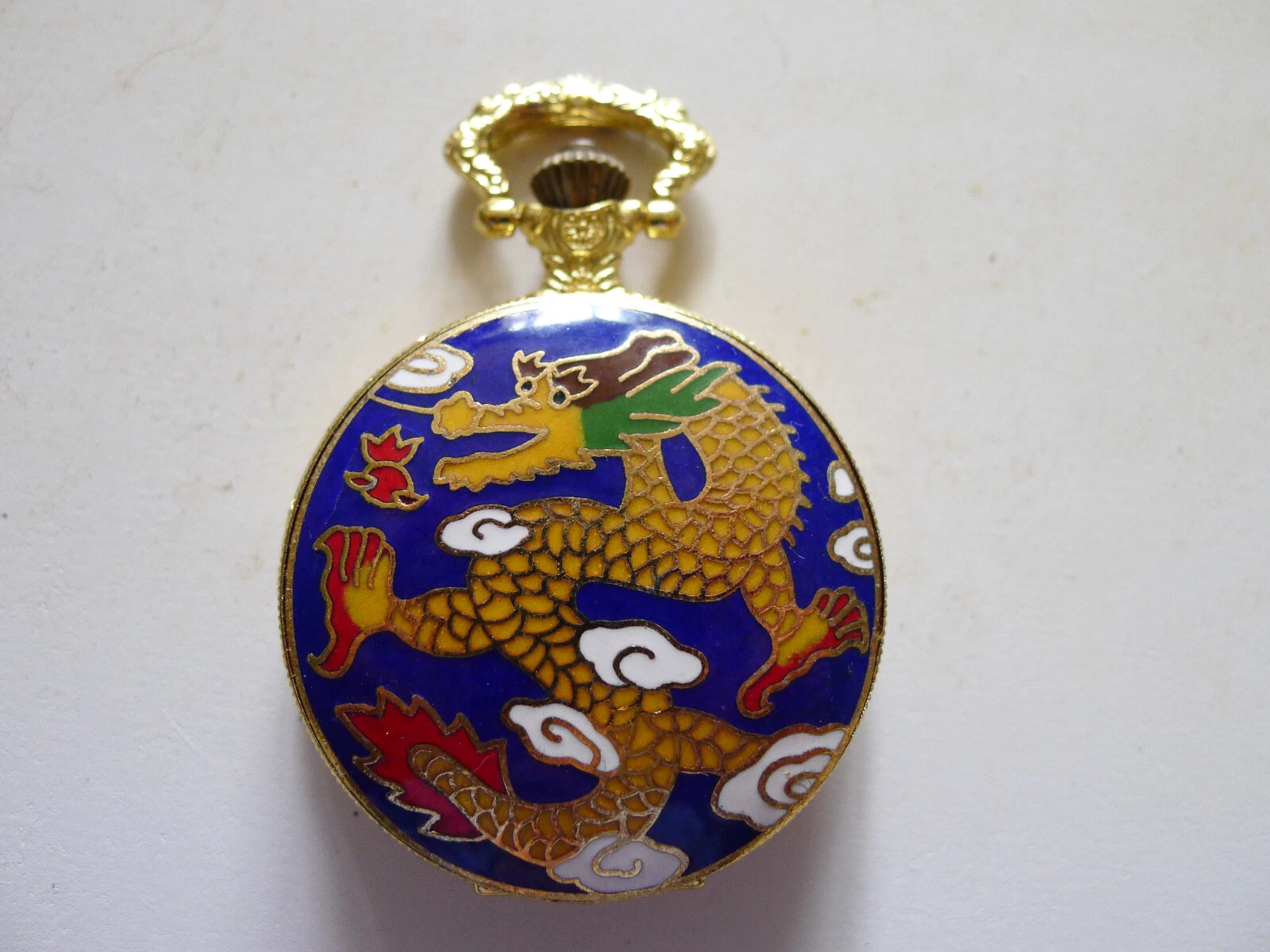 NEW.. Gold Plated Enamelled Dragon Qtz  Gents Pocket Watch.  ..GWC.