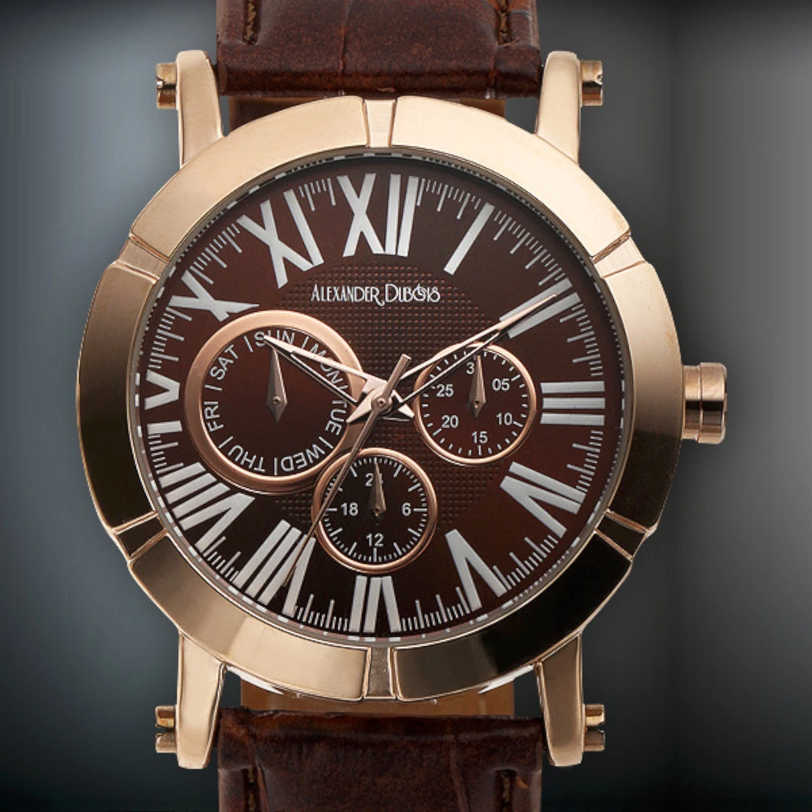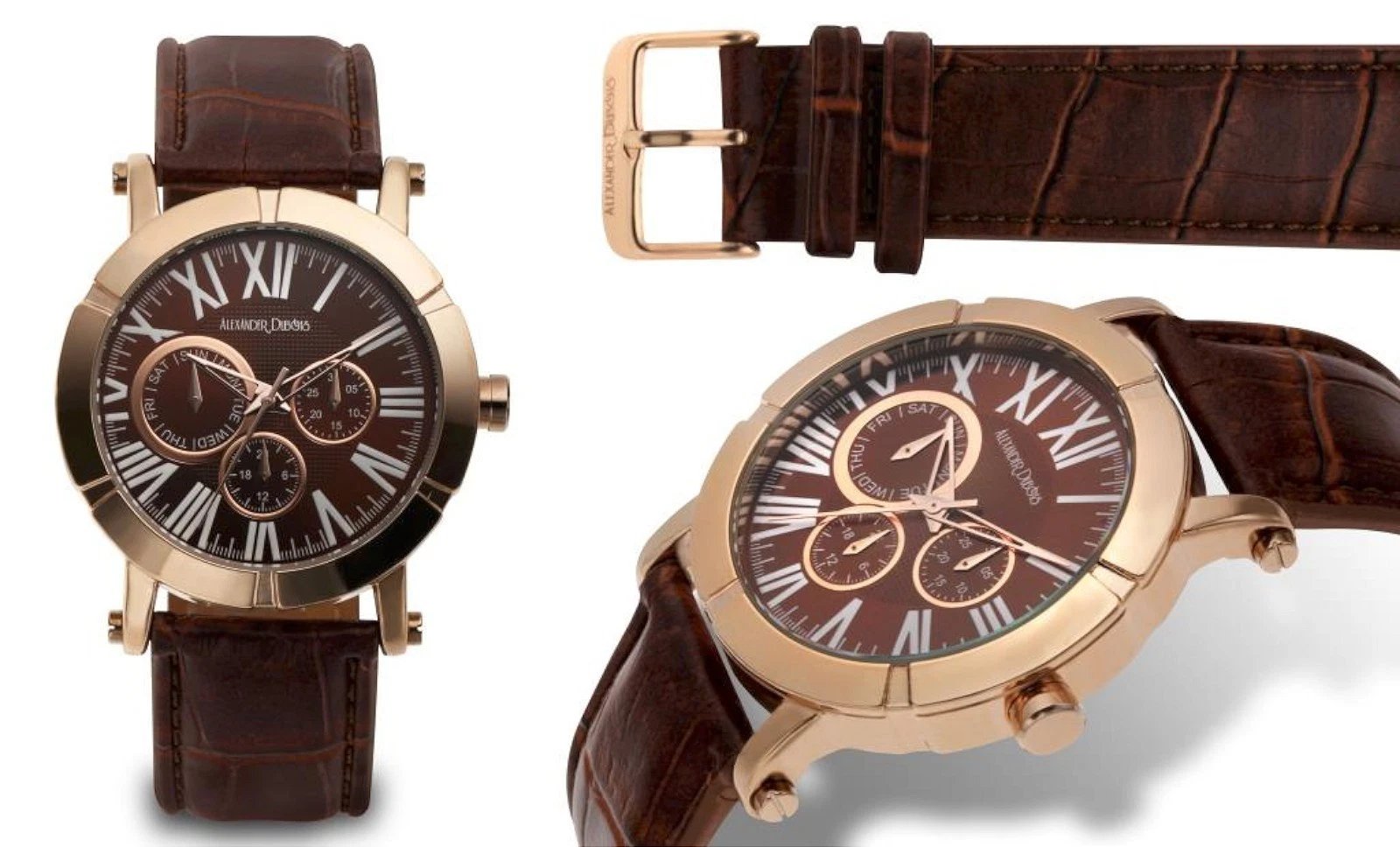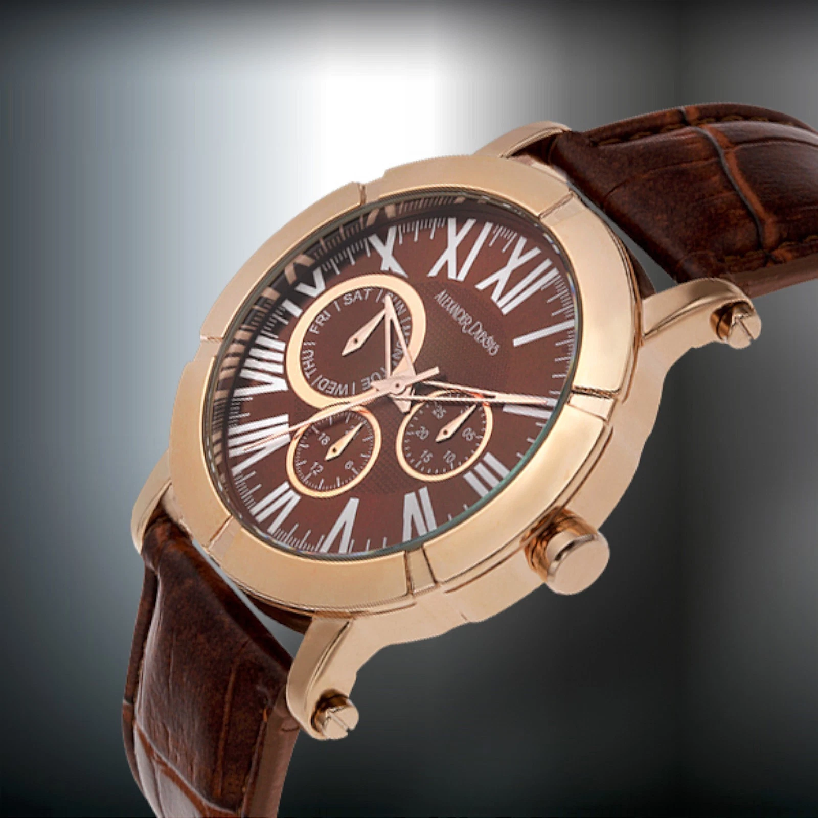 NEW Alexander Dubois 14024 Womens Loire Watch Multi-Function Brown/Gold Day Date