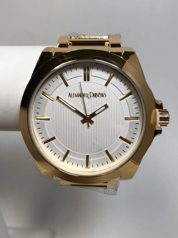 NEW Alexander Dubois 1487A Mens St Emilion White Textured Yellow Gold Dial Watch