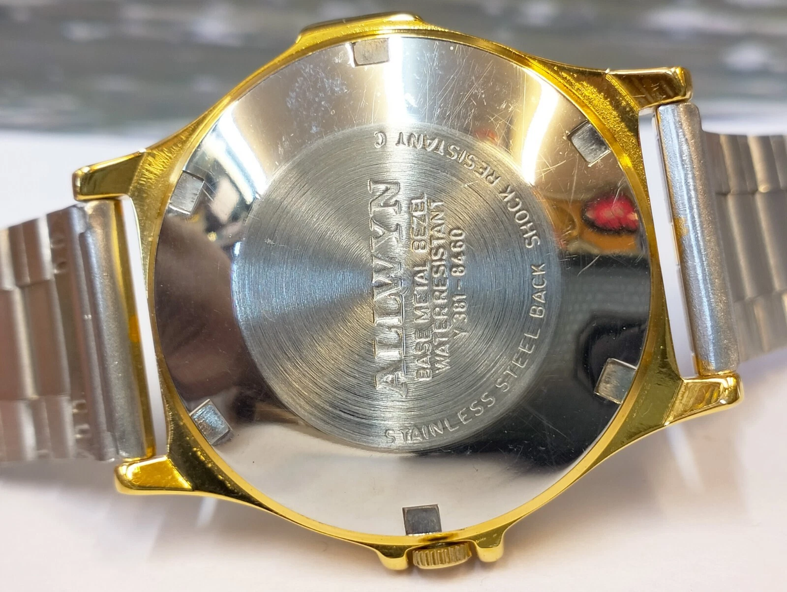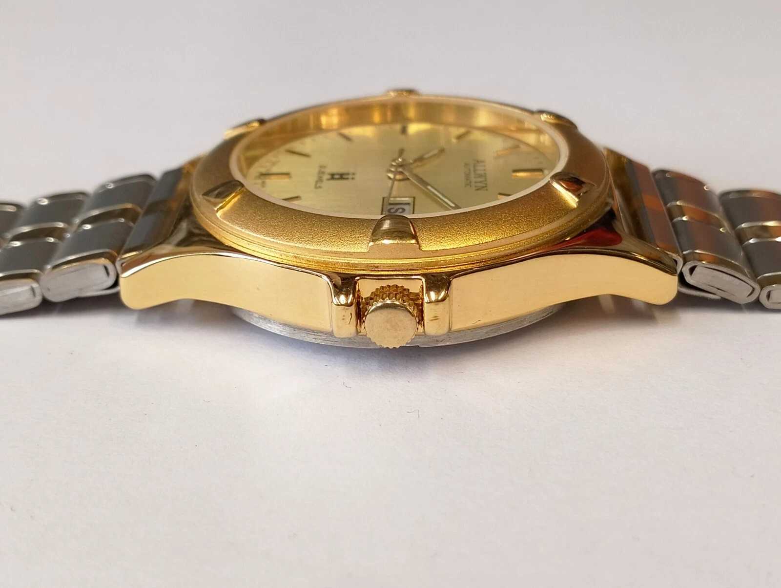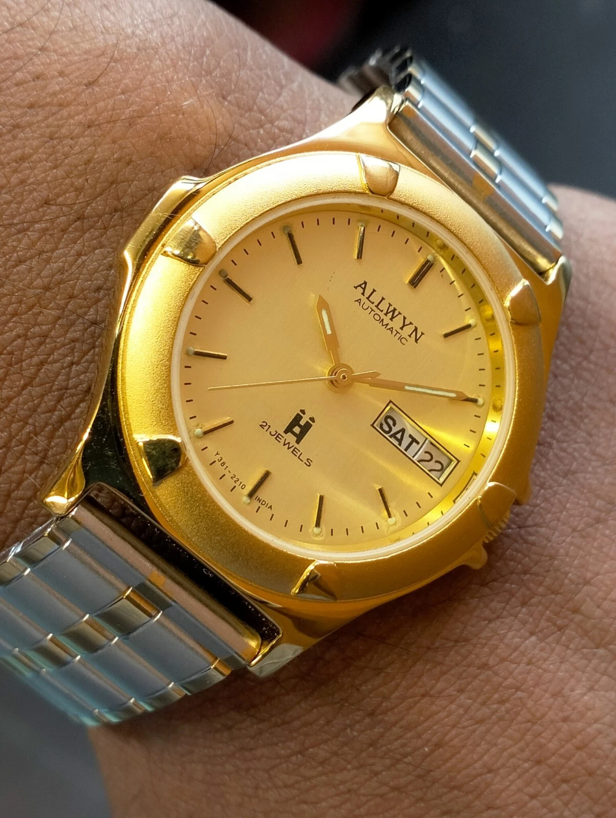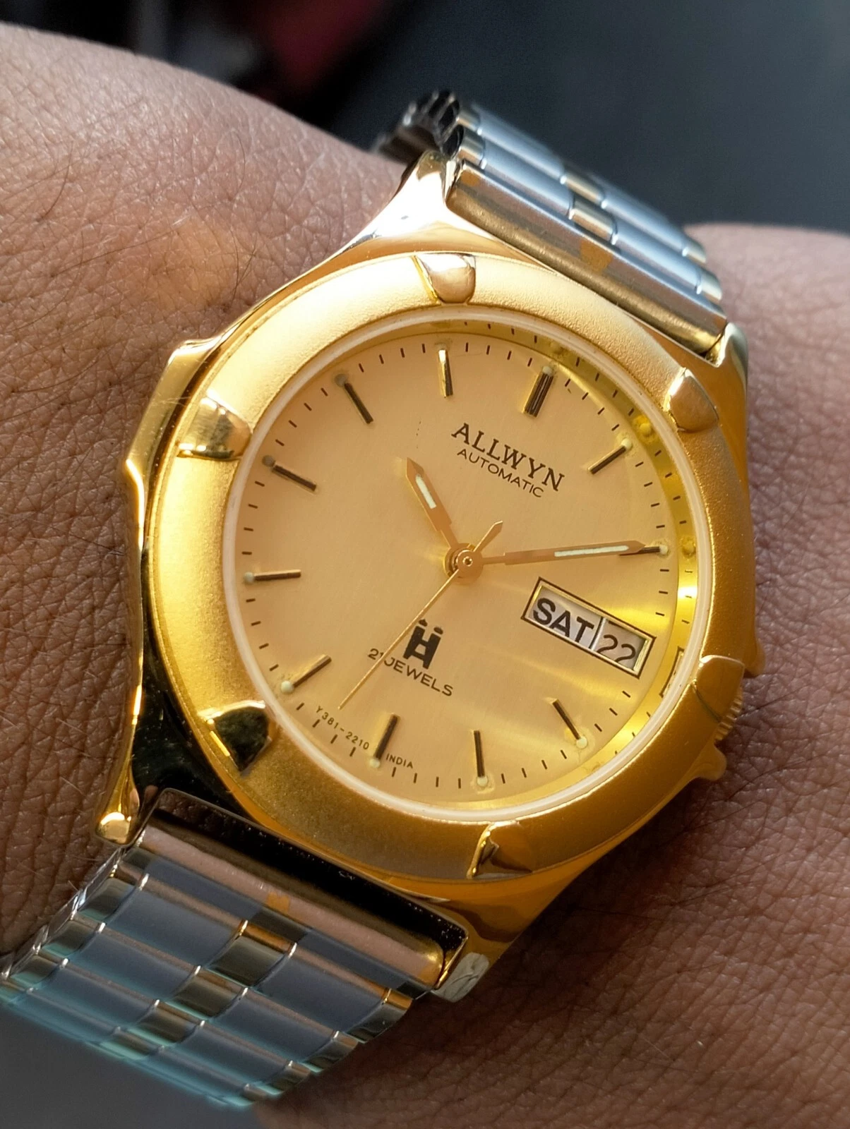 ALLWYN 21 JEWELS AUTOMATIC NOS GOLD DIAL Y381-8460 INDIA MEN'S FULL WORKING VTG.