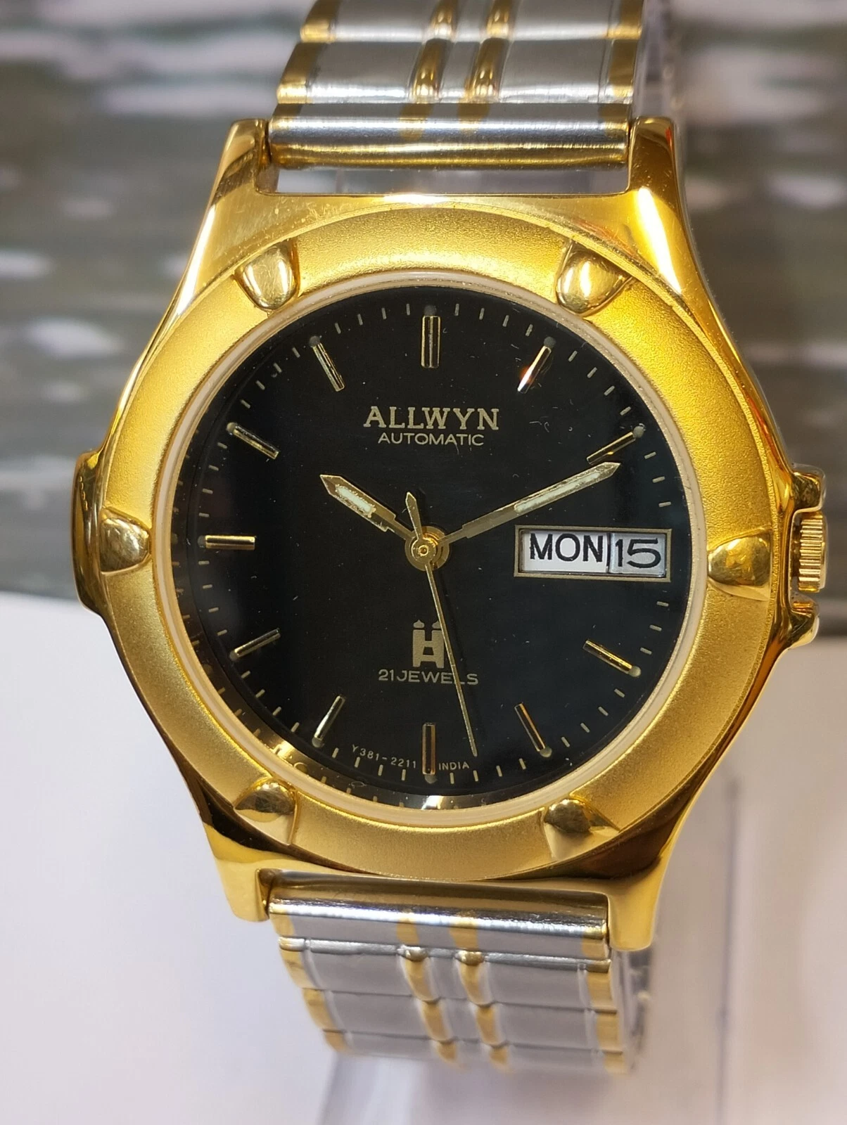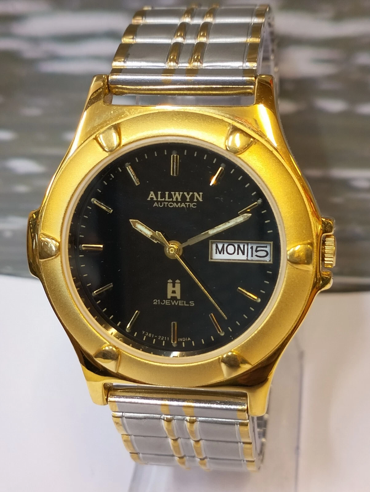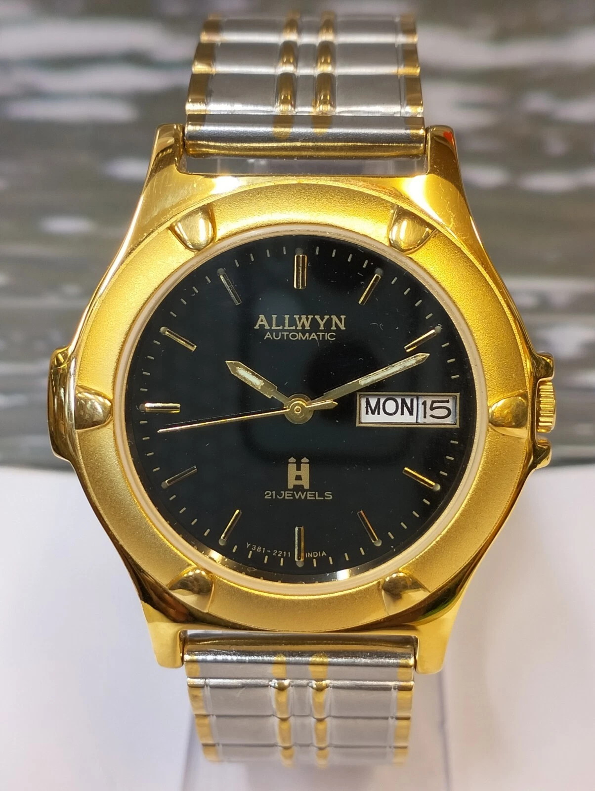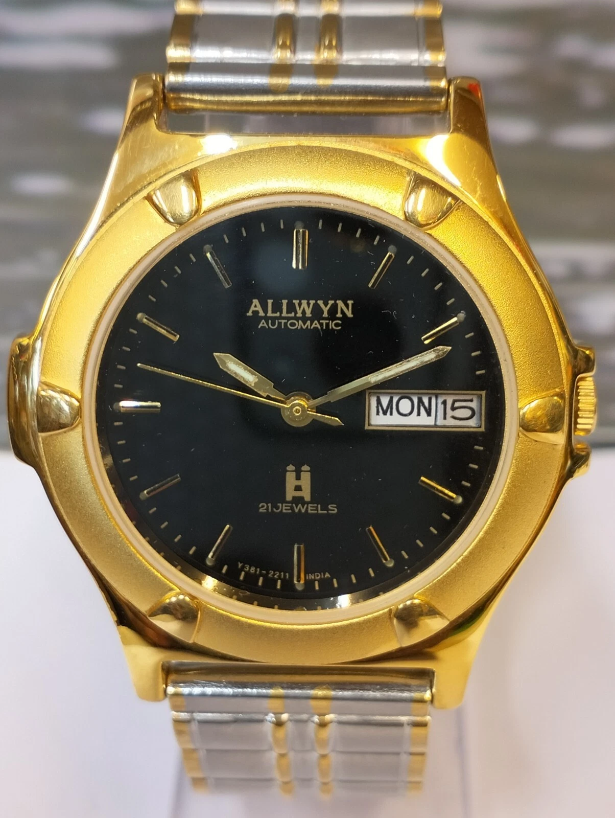 ALLWYN 21 JEWELS AUTOMATIC NOS BLACK DIAL Y381-8460 INDIA MEN FULL WORKING MINT