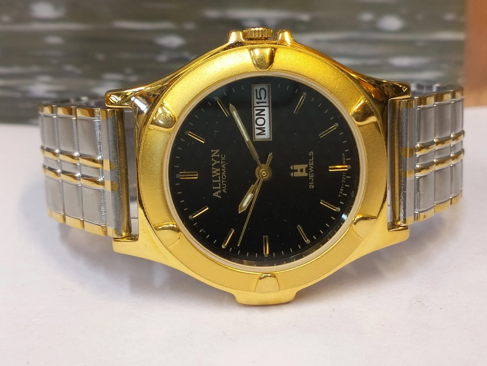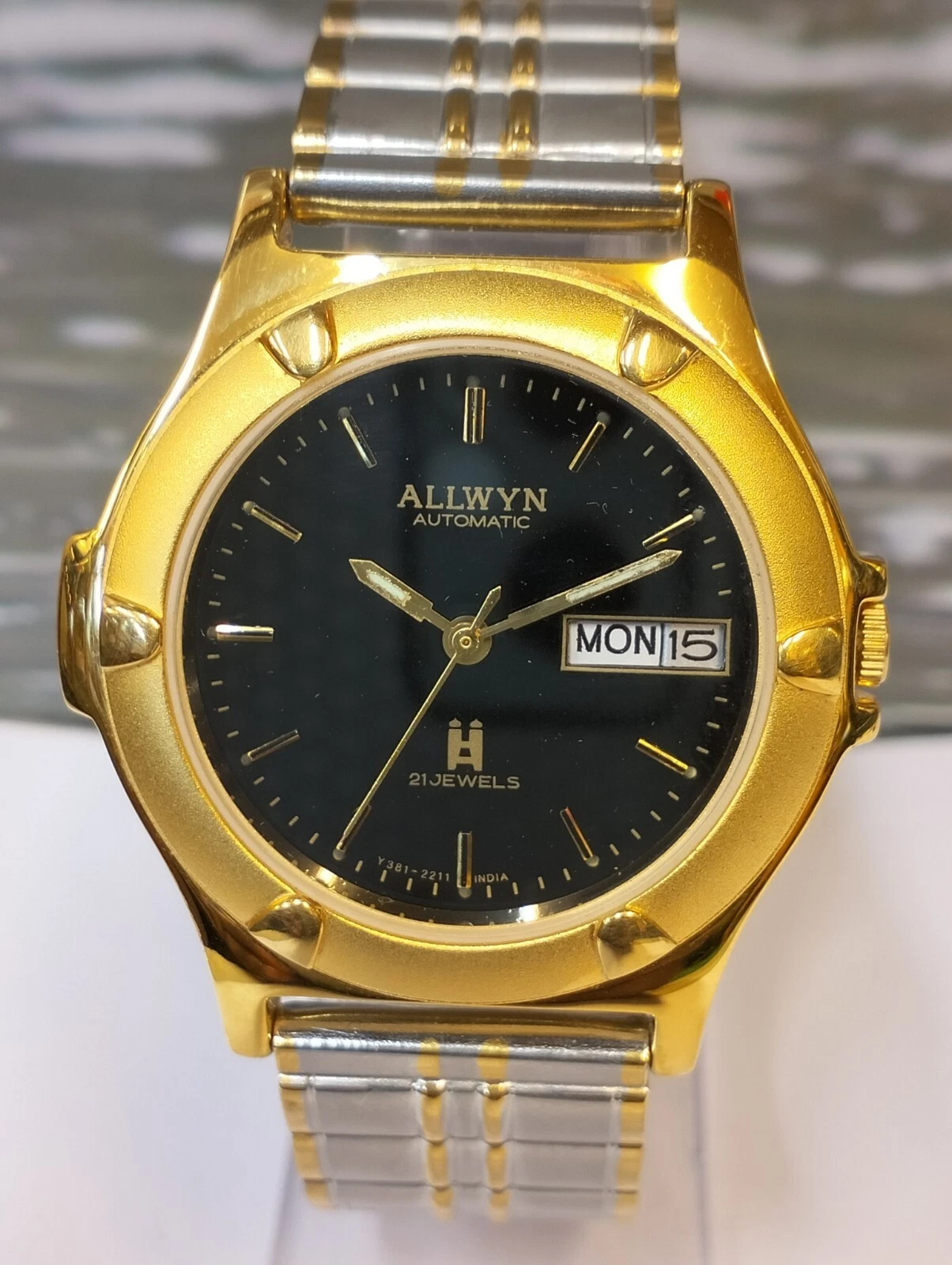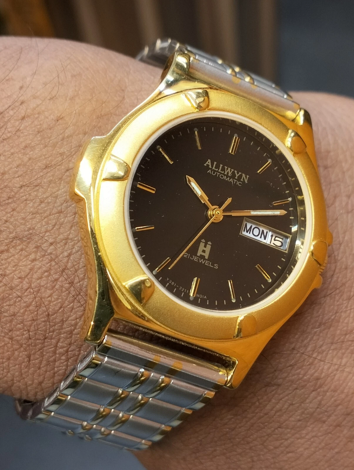 ALLWYN 21 JEWELS AUTOMATIC NOS BLACK DIAL Y381-8460 INDIA MEN FULL WORKING MINT