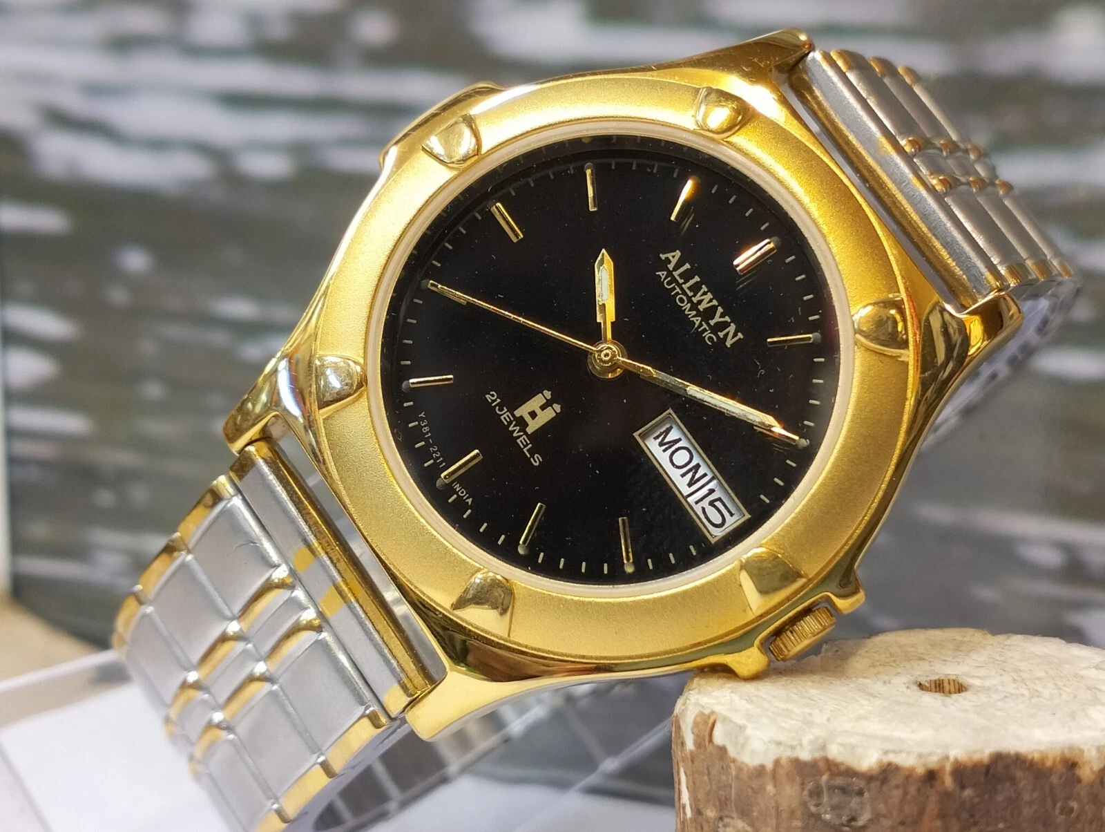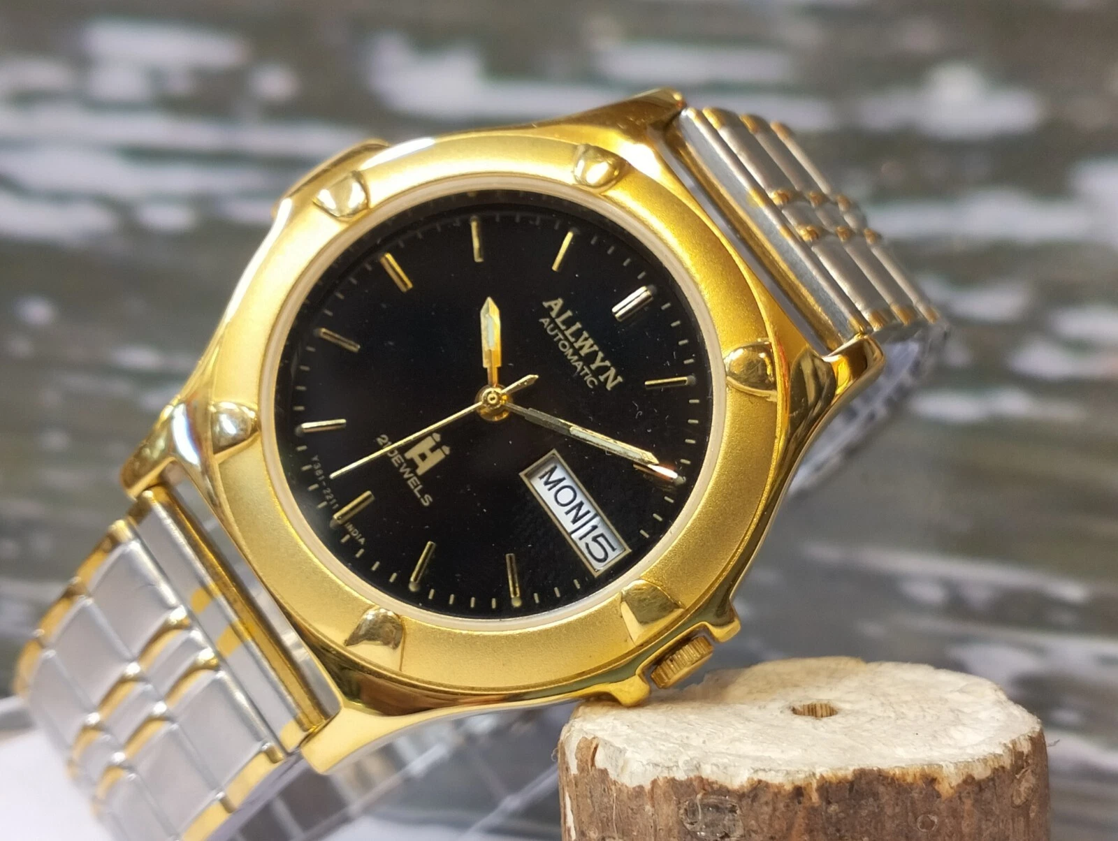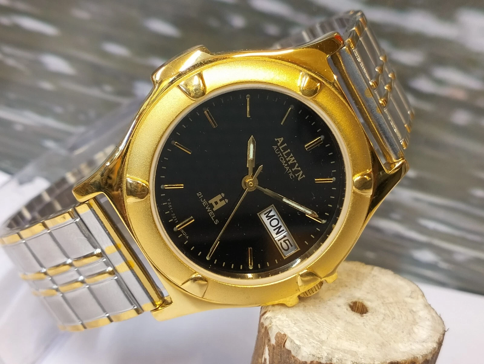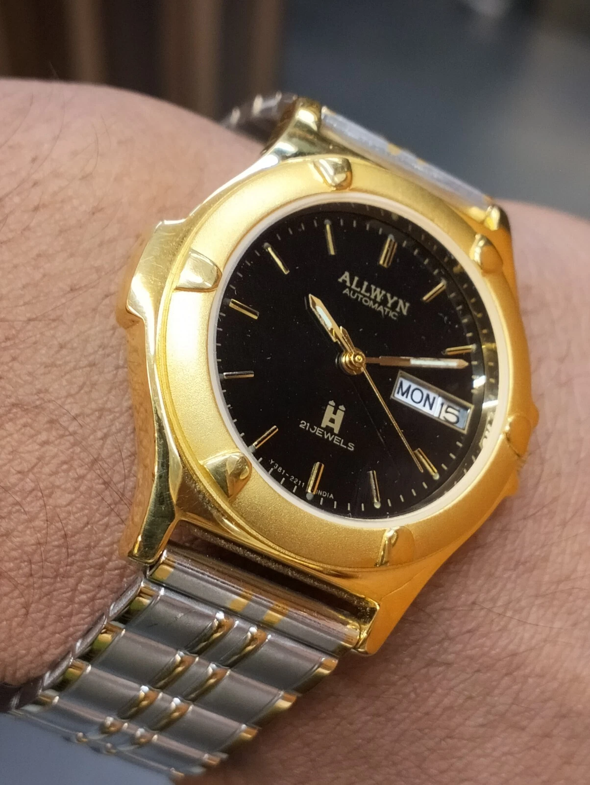 ALLWYN 21 JEWELS AUTOMATIC NOS BLACK DIAL Y381-8460 INDIA MEN FULL WORKING MINT