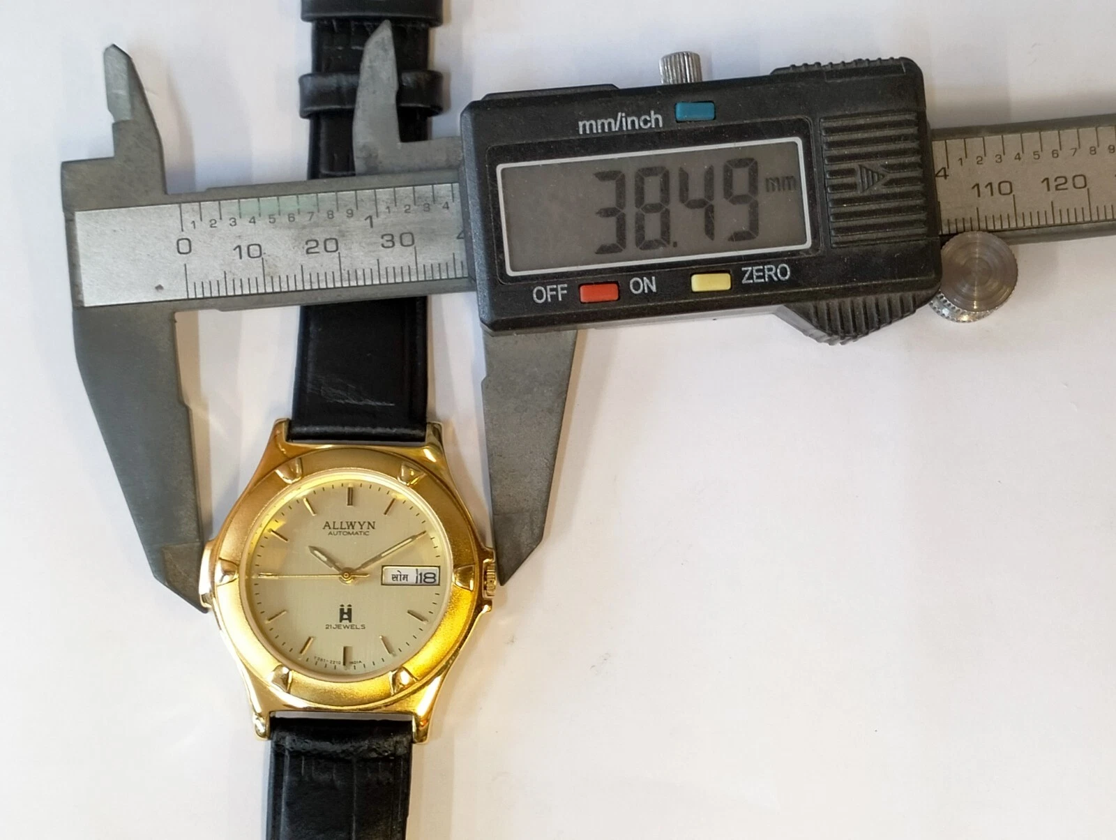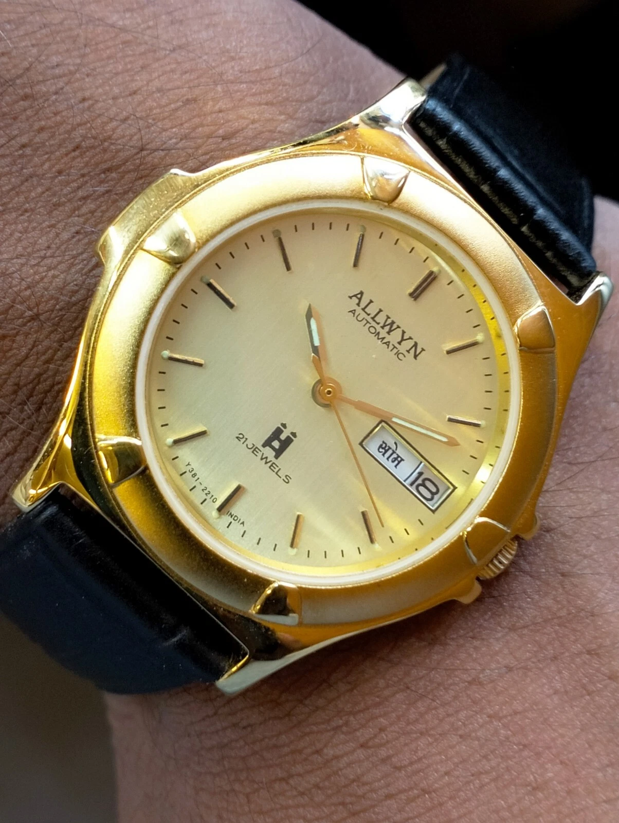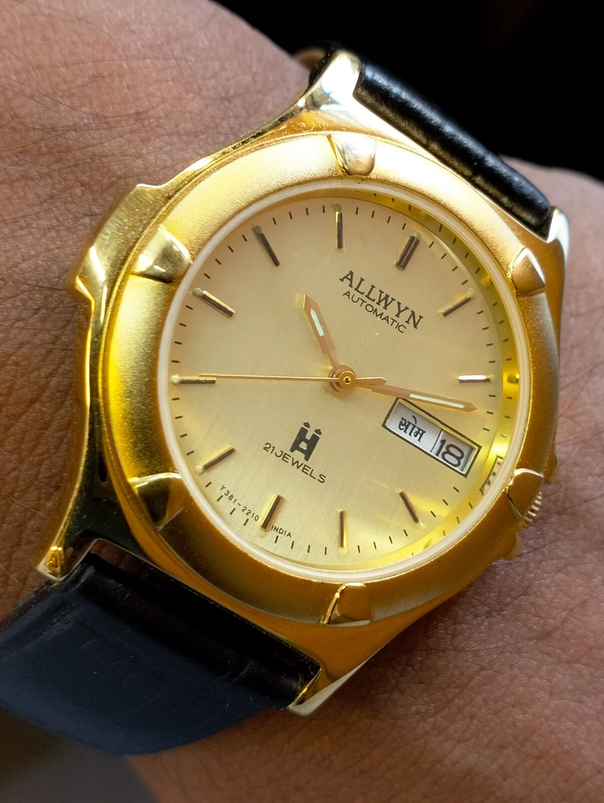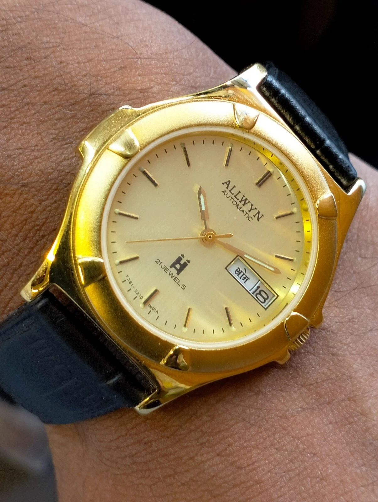 ORIGINAL ALLWYN AUTOMATIC 21J NOS GOLD DIAL Y381-8460 INDIA MEN'S FULL WORKING