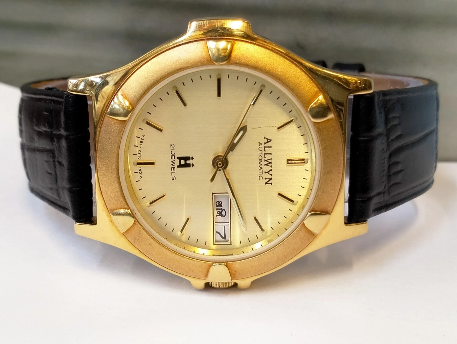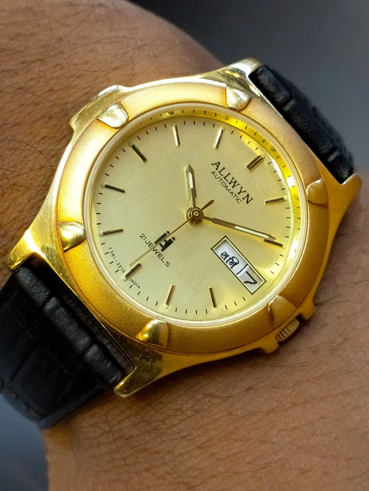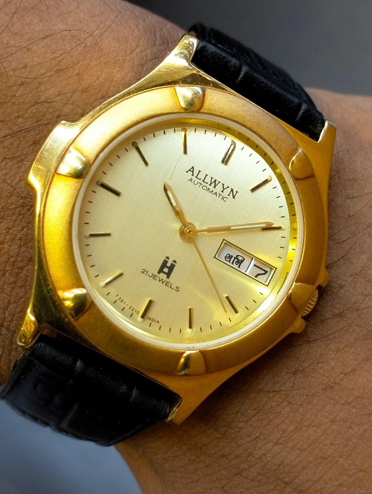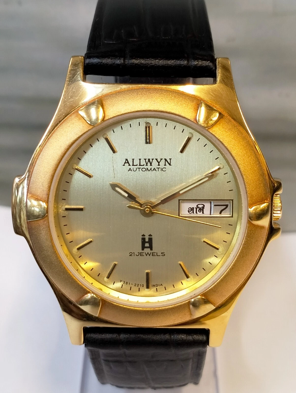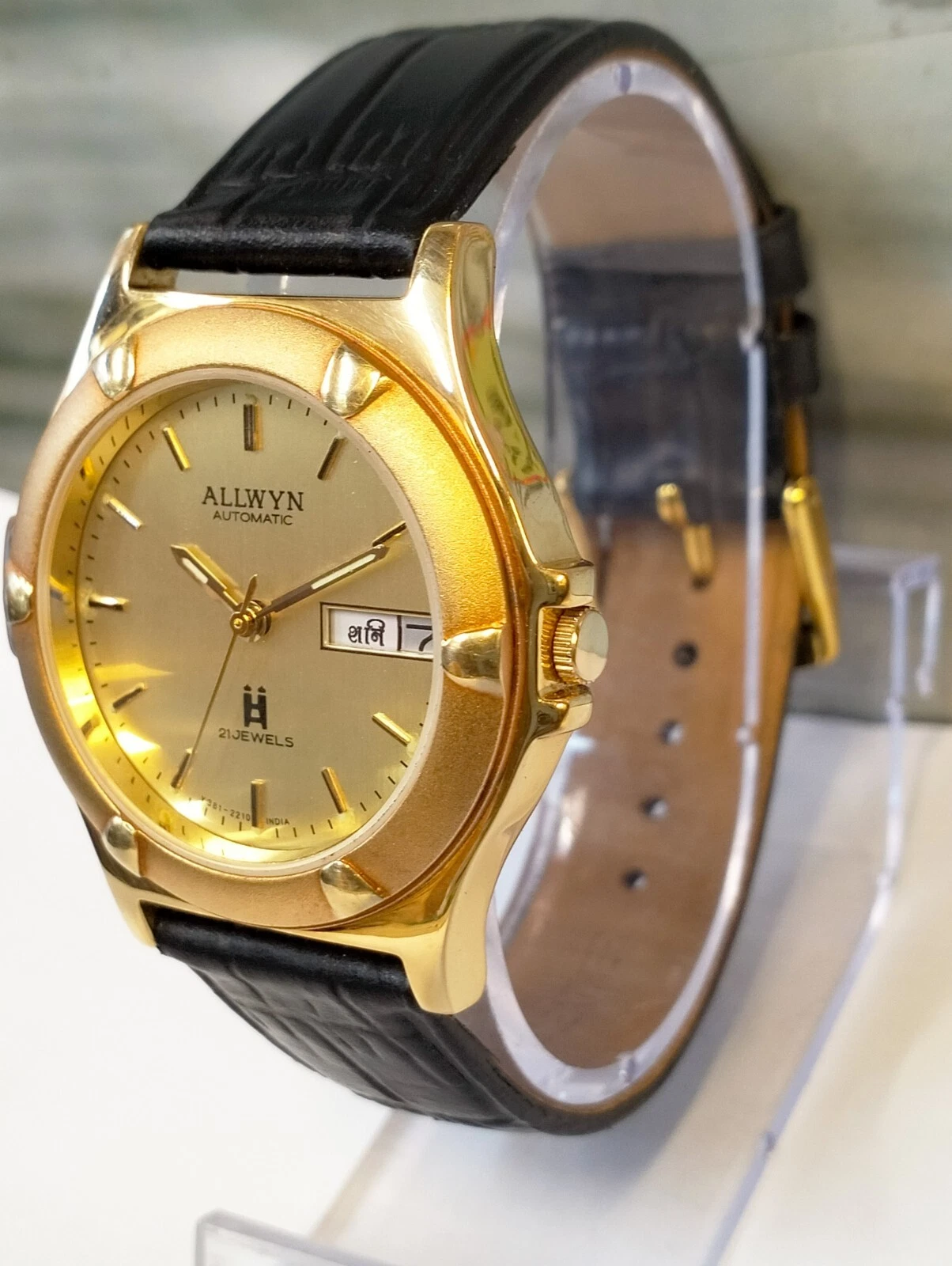 ORIGINAL ALLWYN AUTOMATIC NOS 21J GOLD DIAL Y381-8460 INDIA MEN'S FULL WORKING