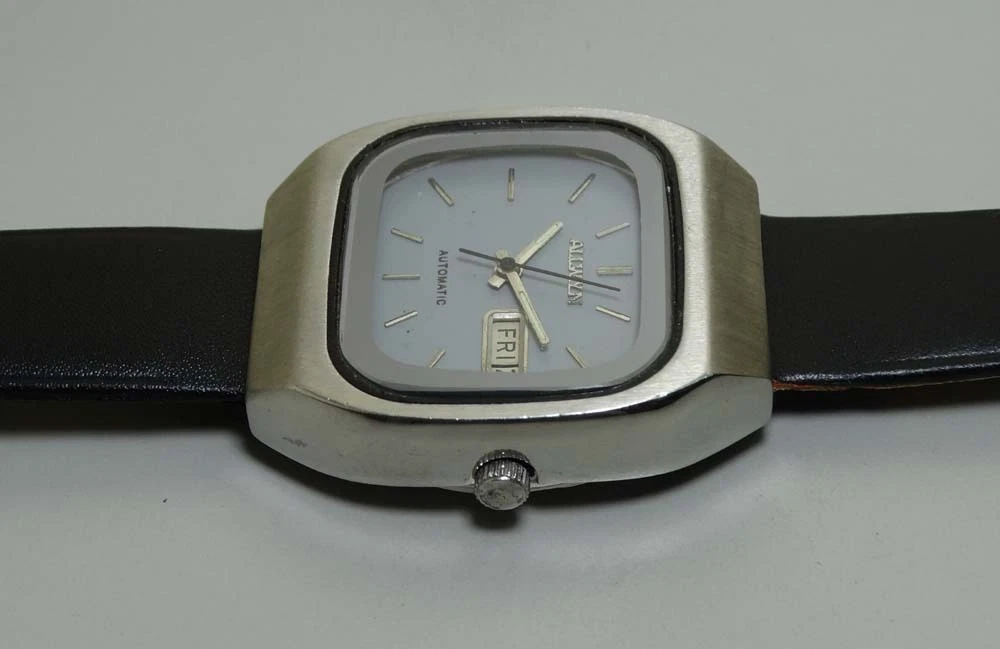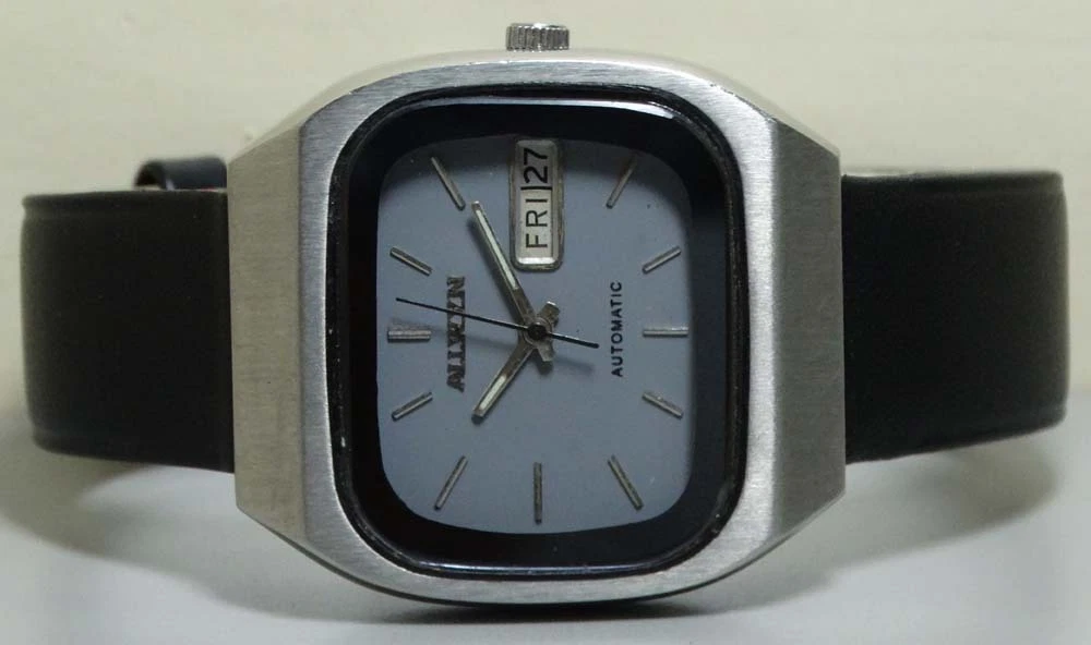 Vintage Allwyn Automatic Day Date Steel Mens Wrist Watch R723 Old Used Antique