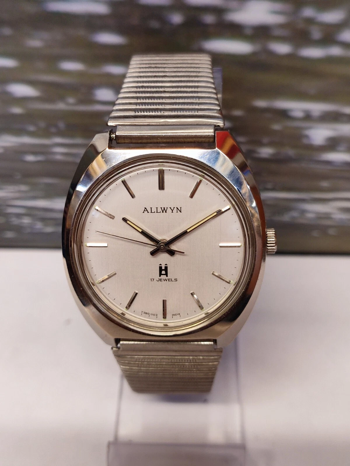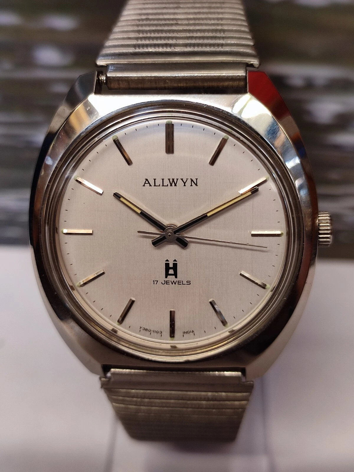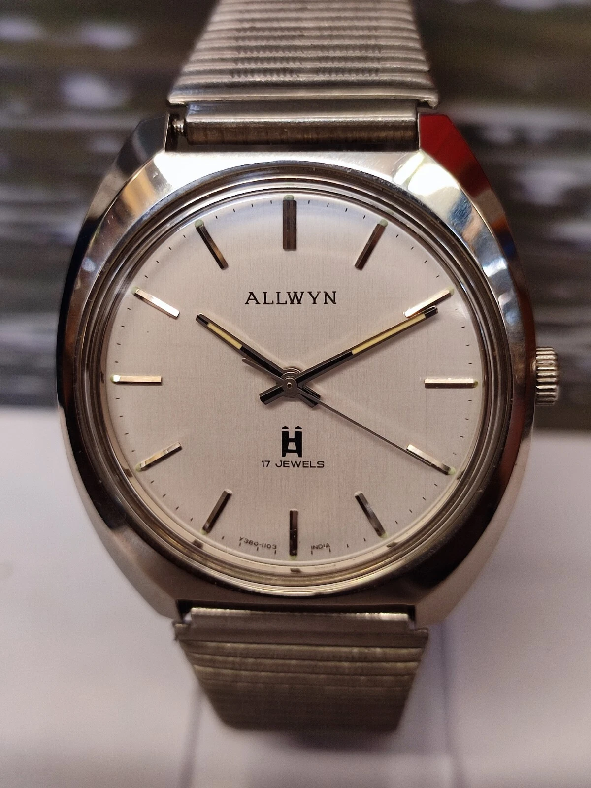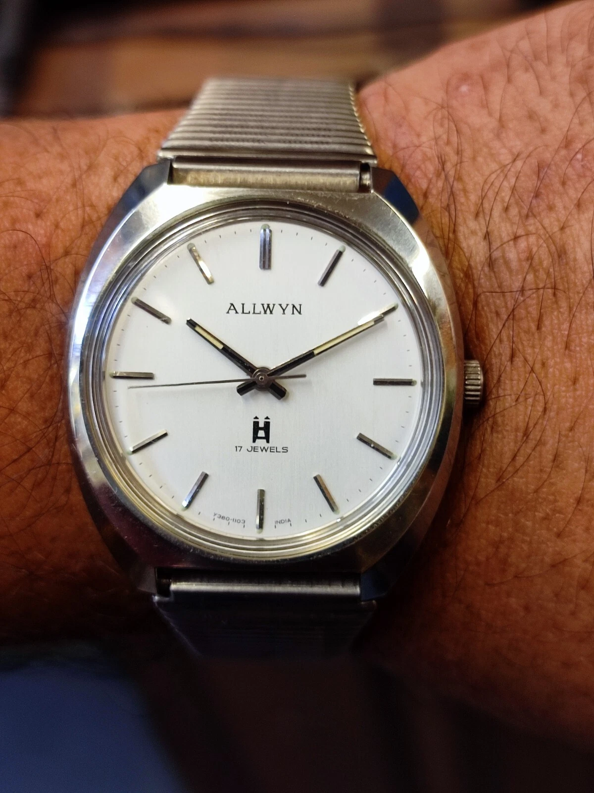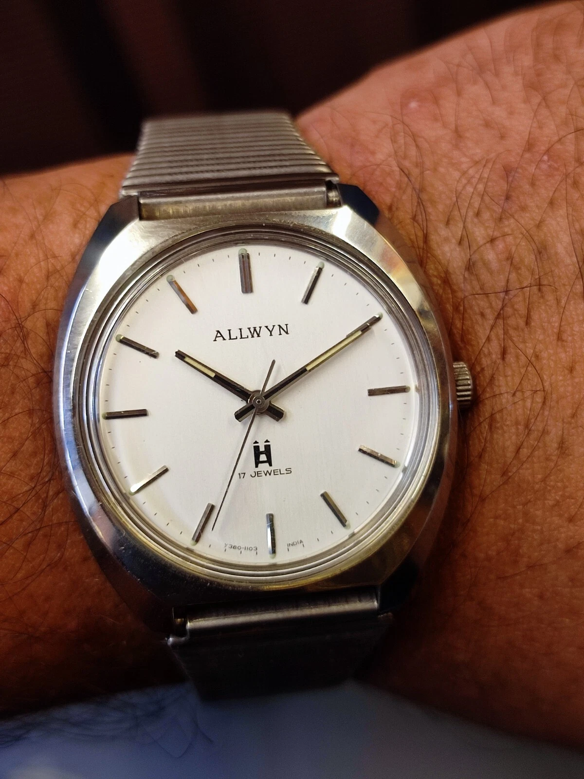 ALLWYN 17 JEWELS WINDING NEW OLD STOCK Y380-8150 INDIA MEN'S FULL WORKING VTG.