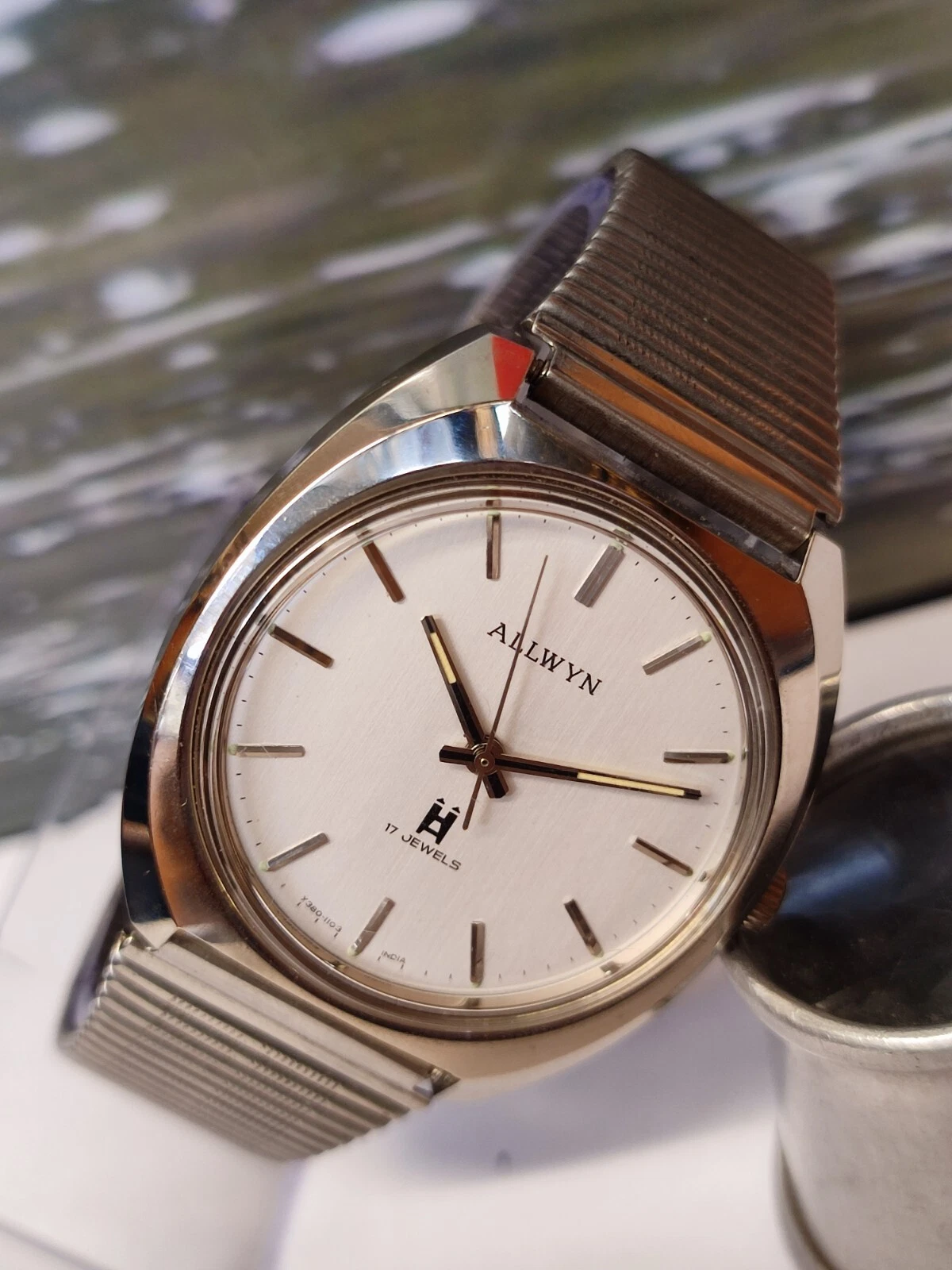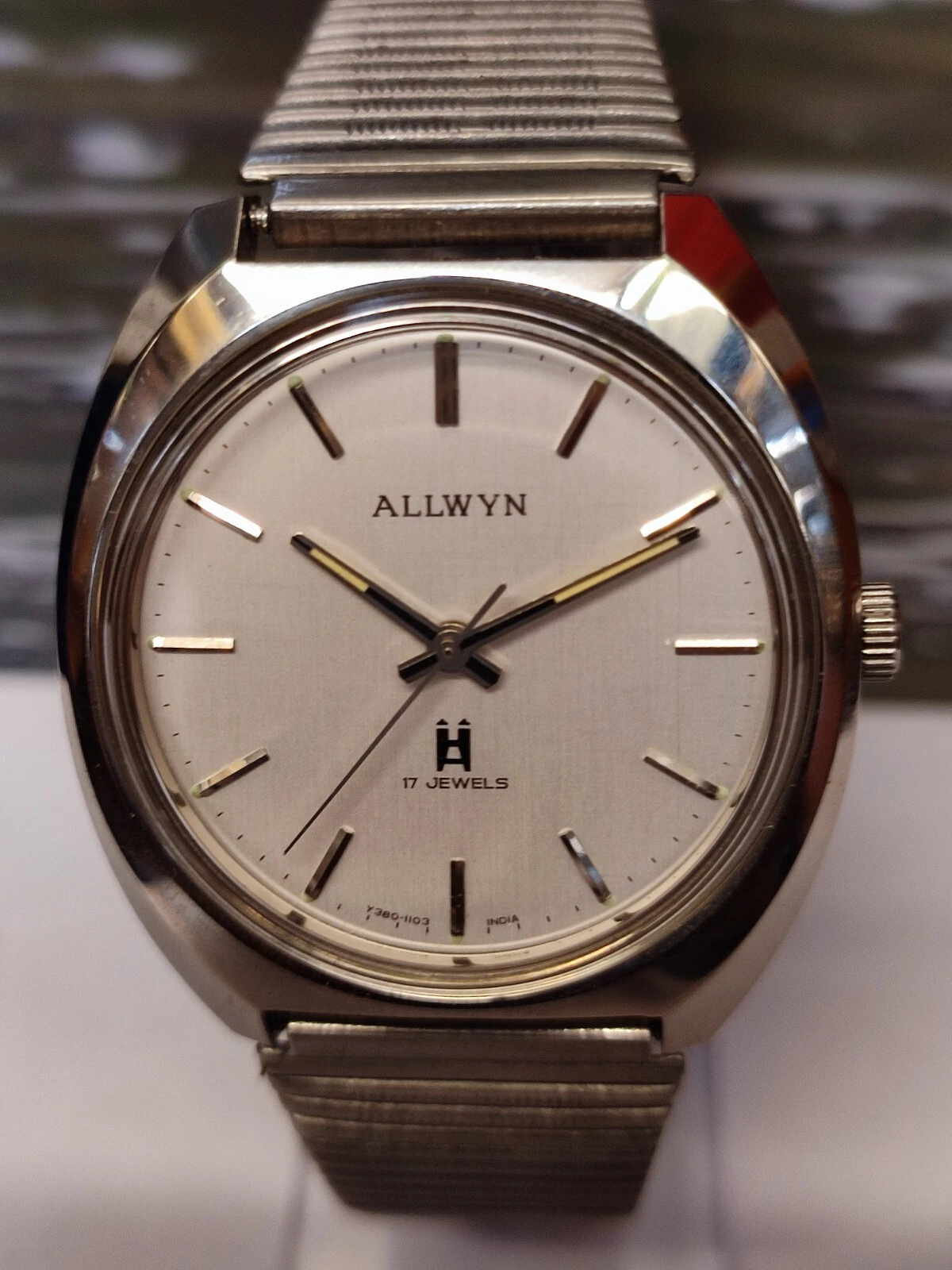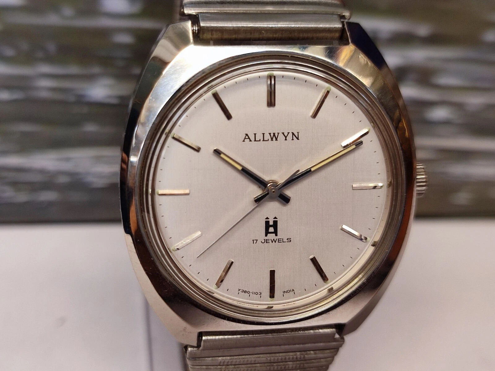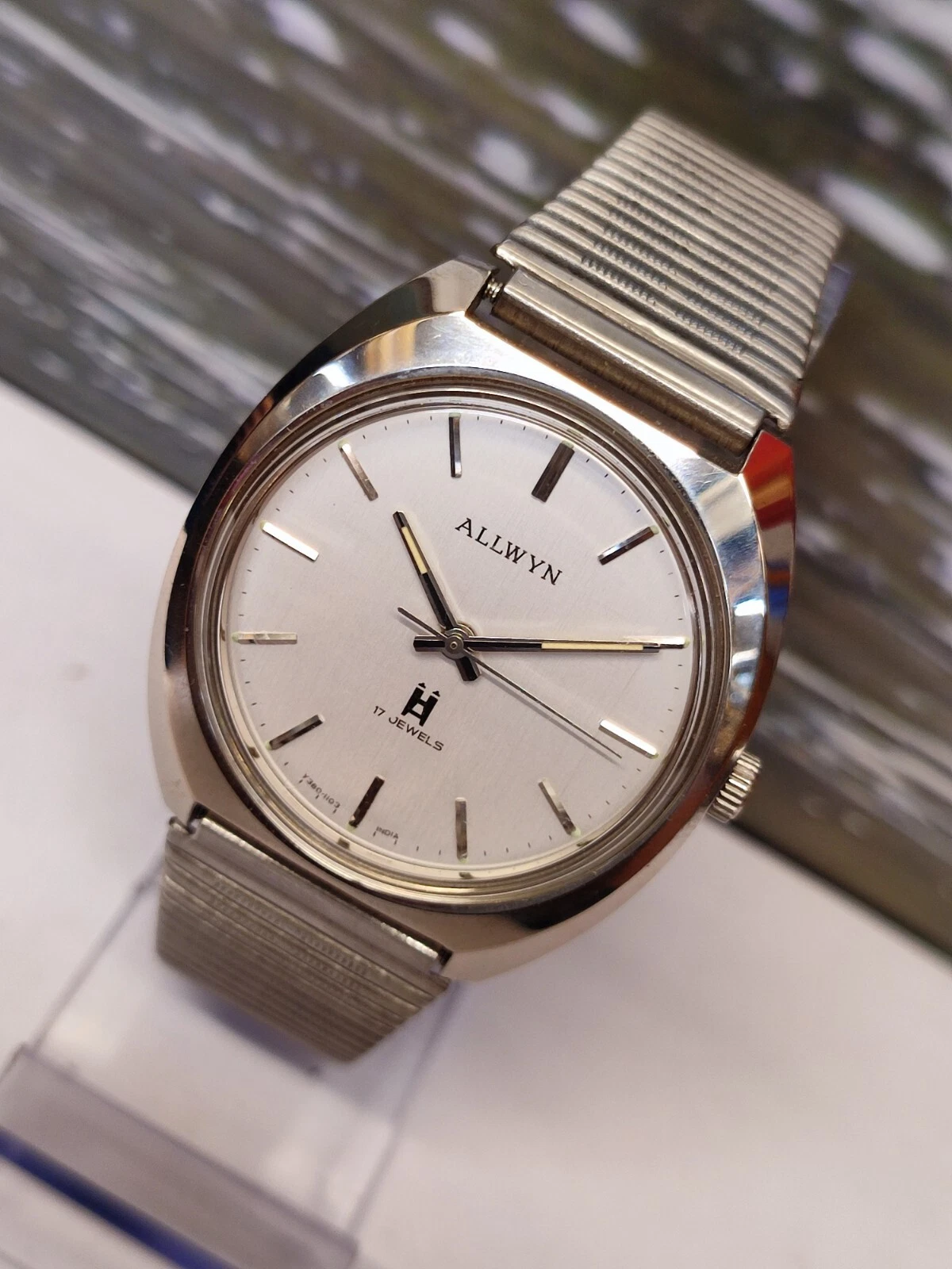 ALLWYN 17 JEWELS WINDING NEW OLD STOCK Y380-8150 INDIA MEN'S FULL WORKING VTG.
