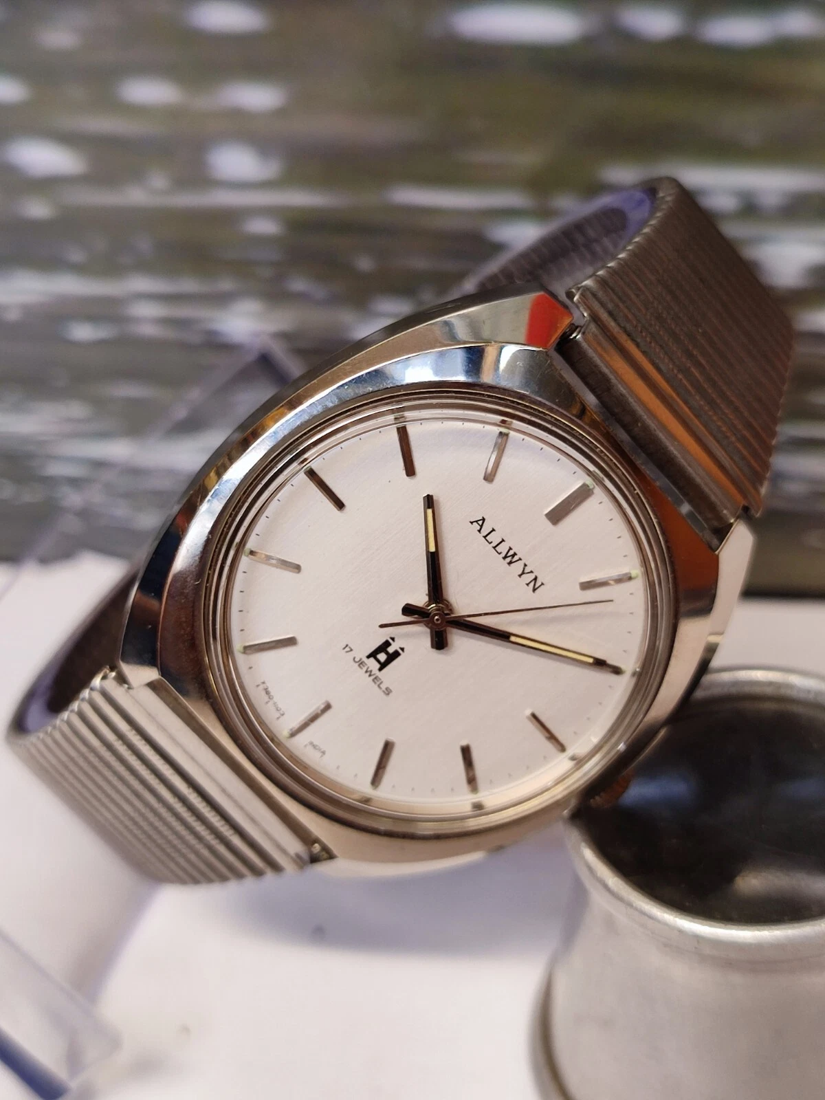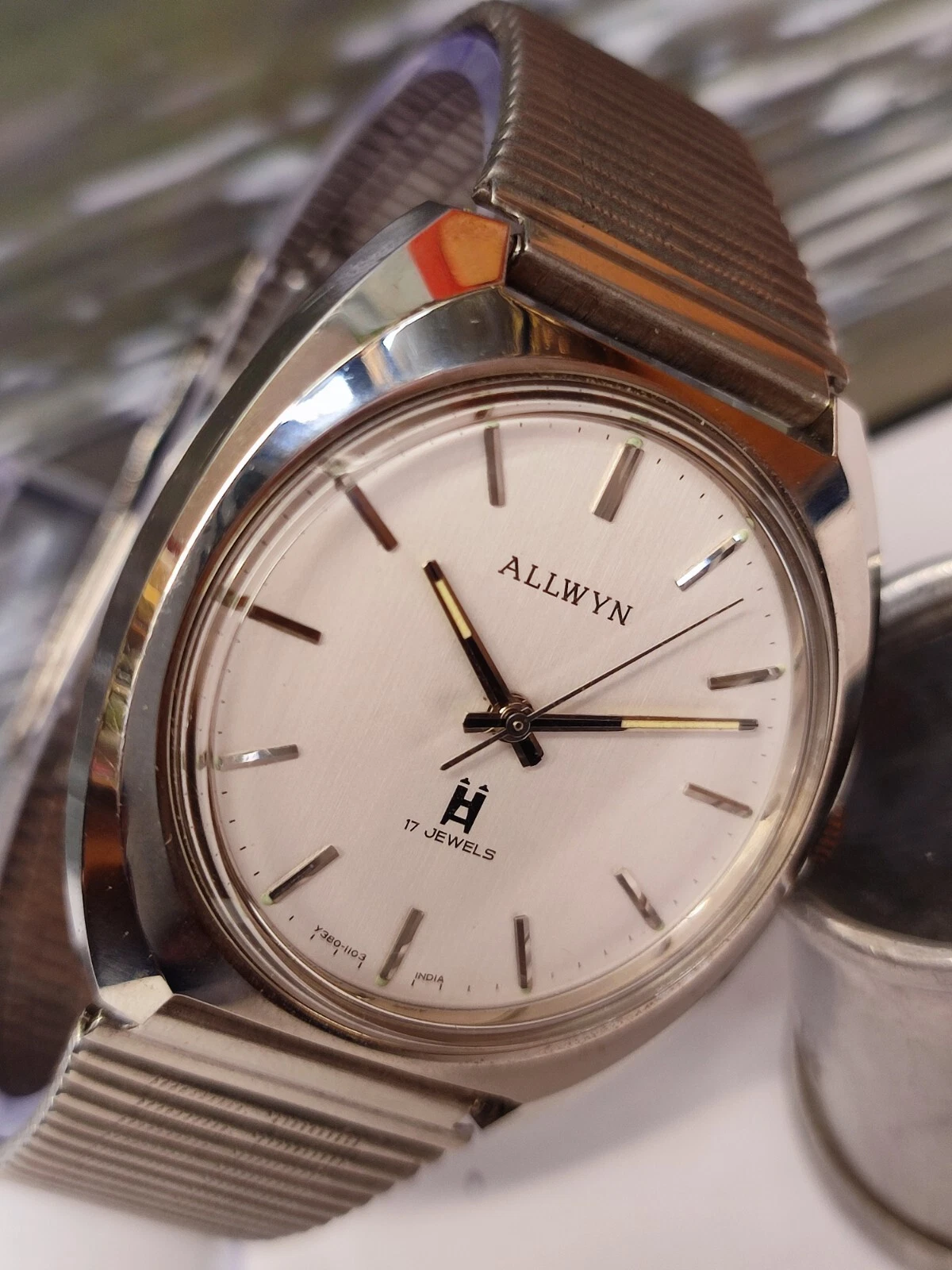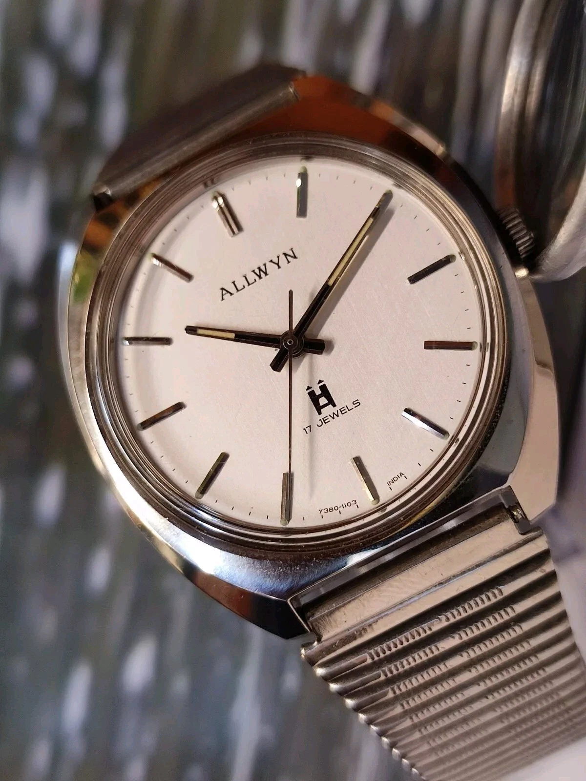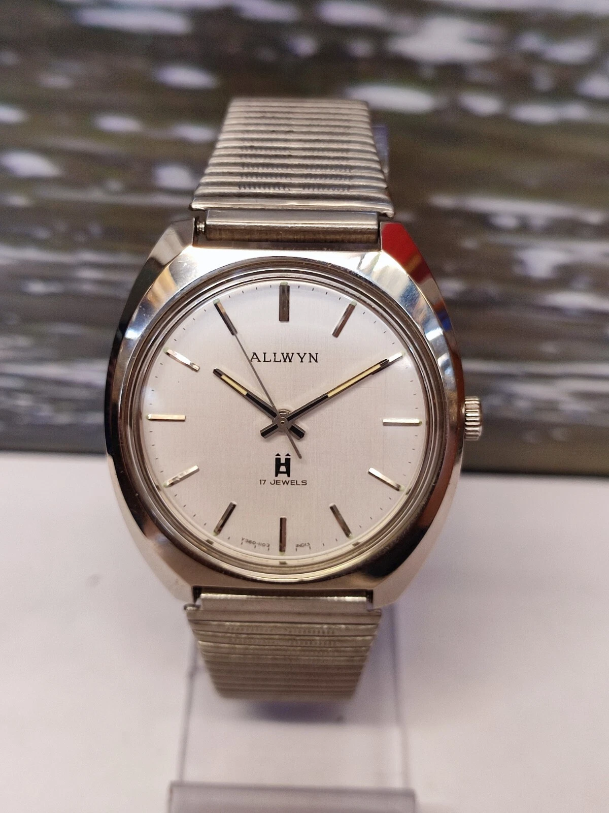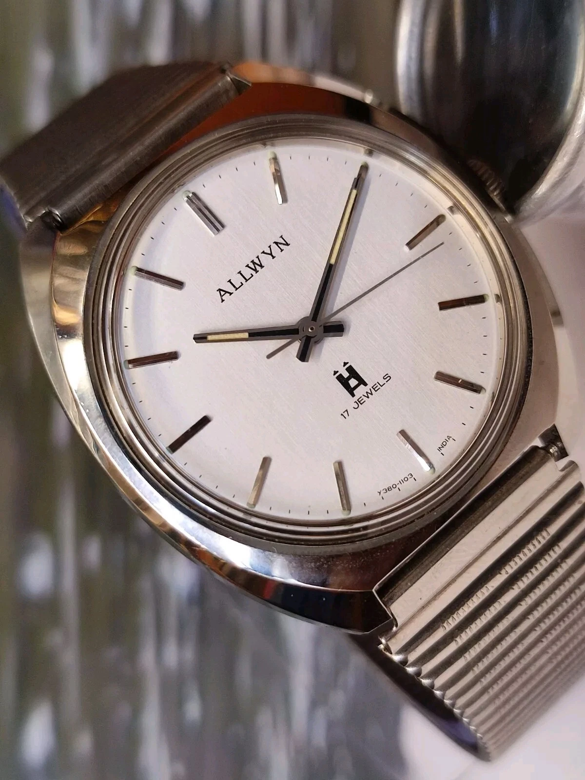 ALLWYN 17 JEWELS WINDING NEW OLD STOCK Y380-8150 INDIA MEN'S FULL WORKING VTG.