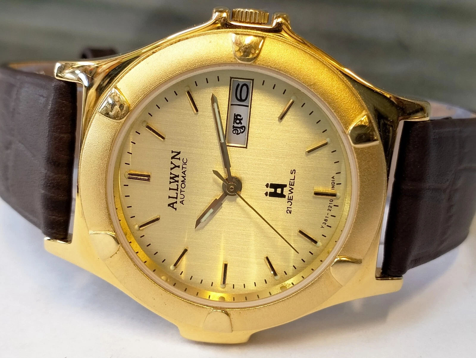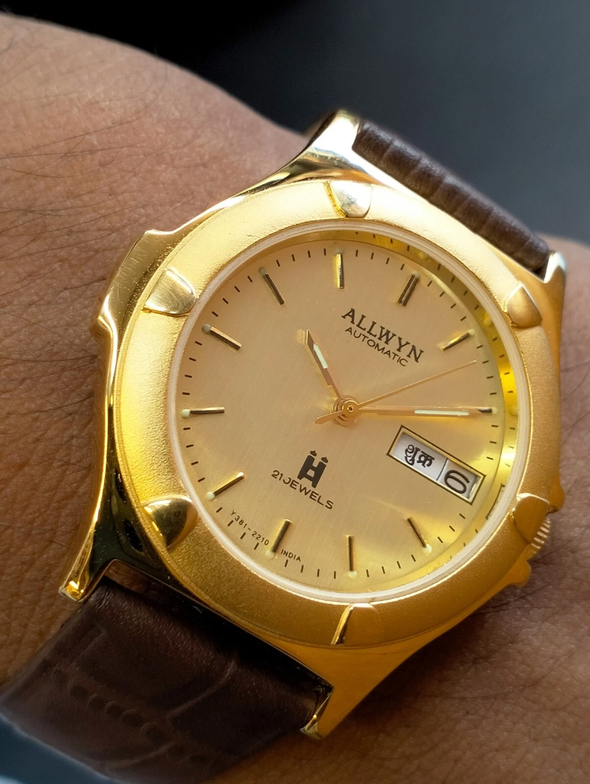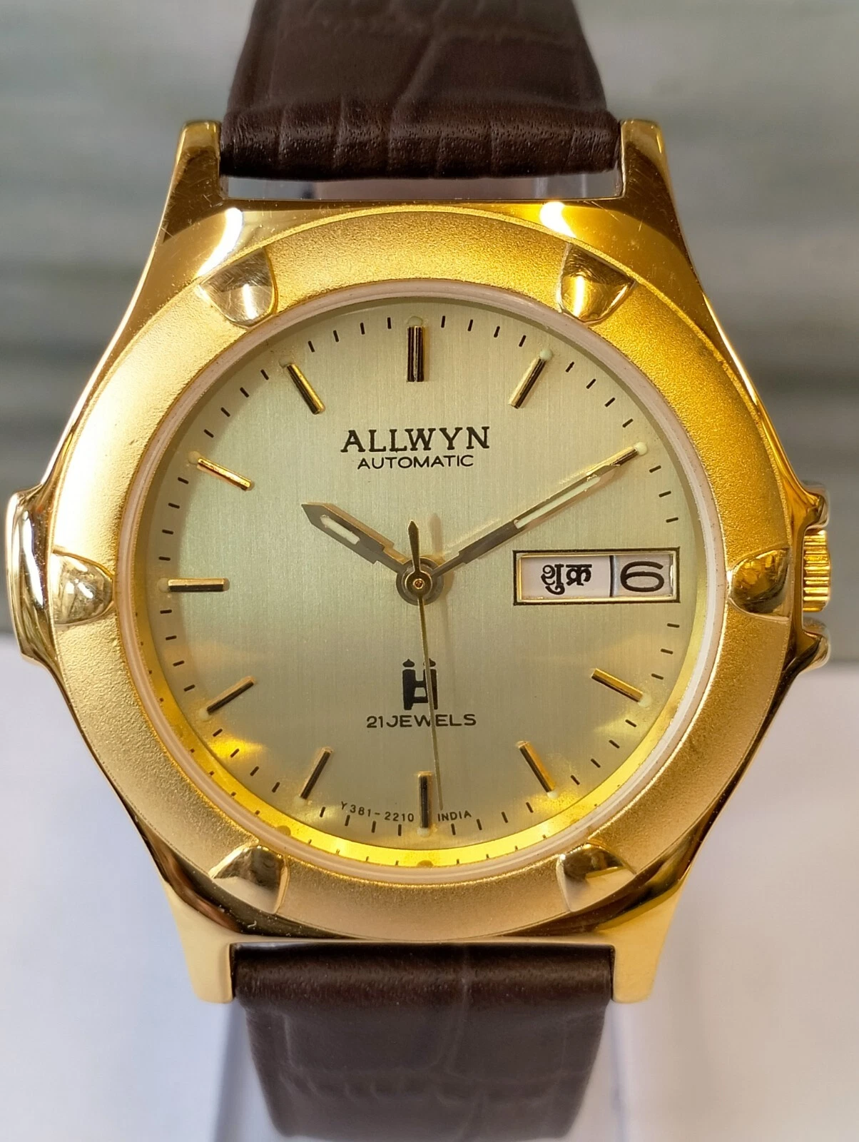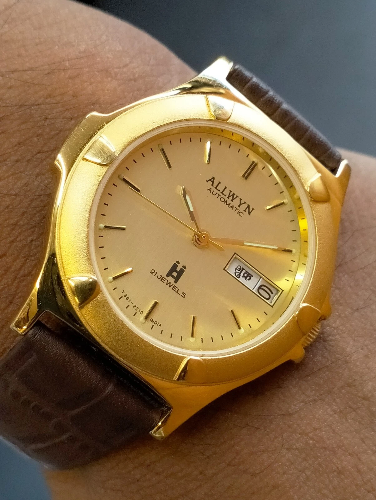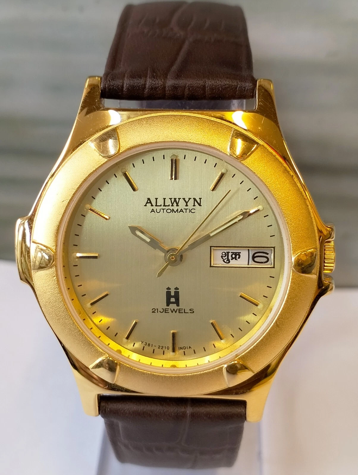 ORIGINAL ALLWYN AUTOMATIC NOS 21J GOLD DIAL Y381-8460 INDIA MEN'S FULL WORKING