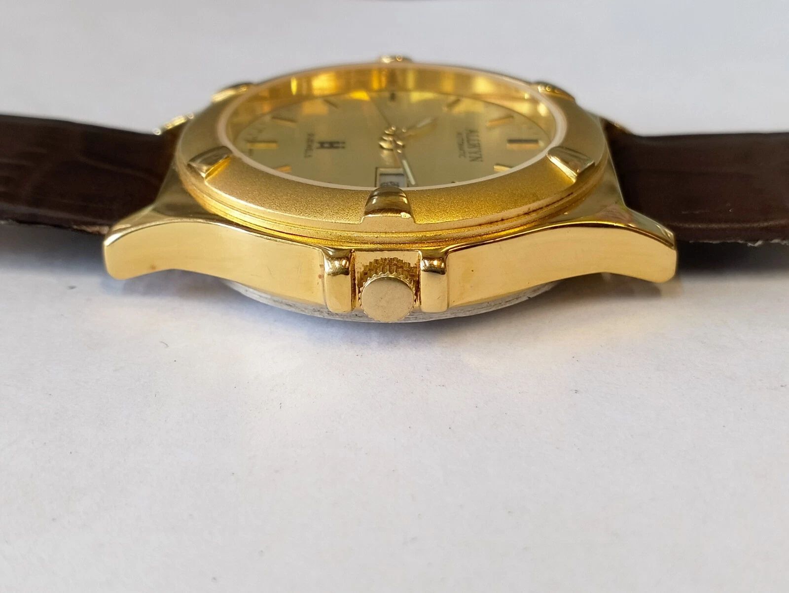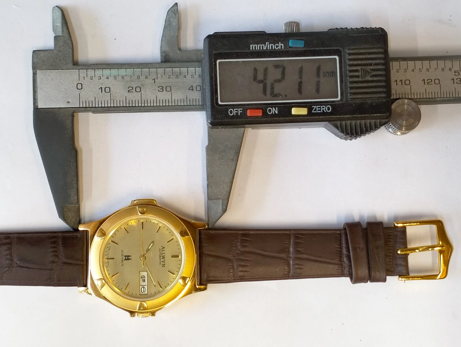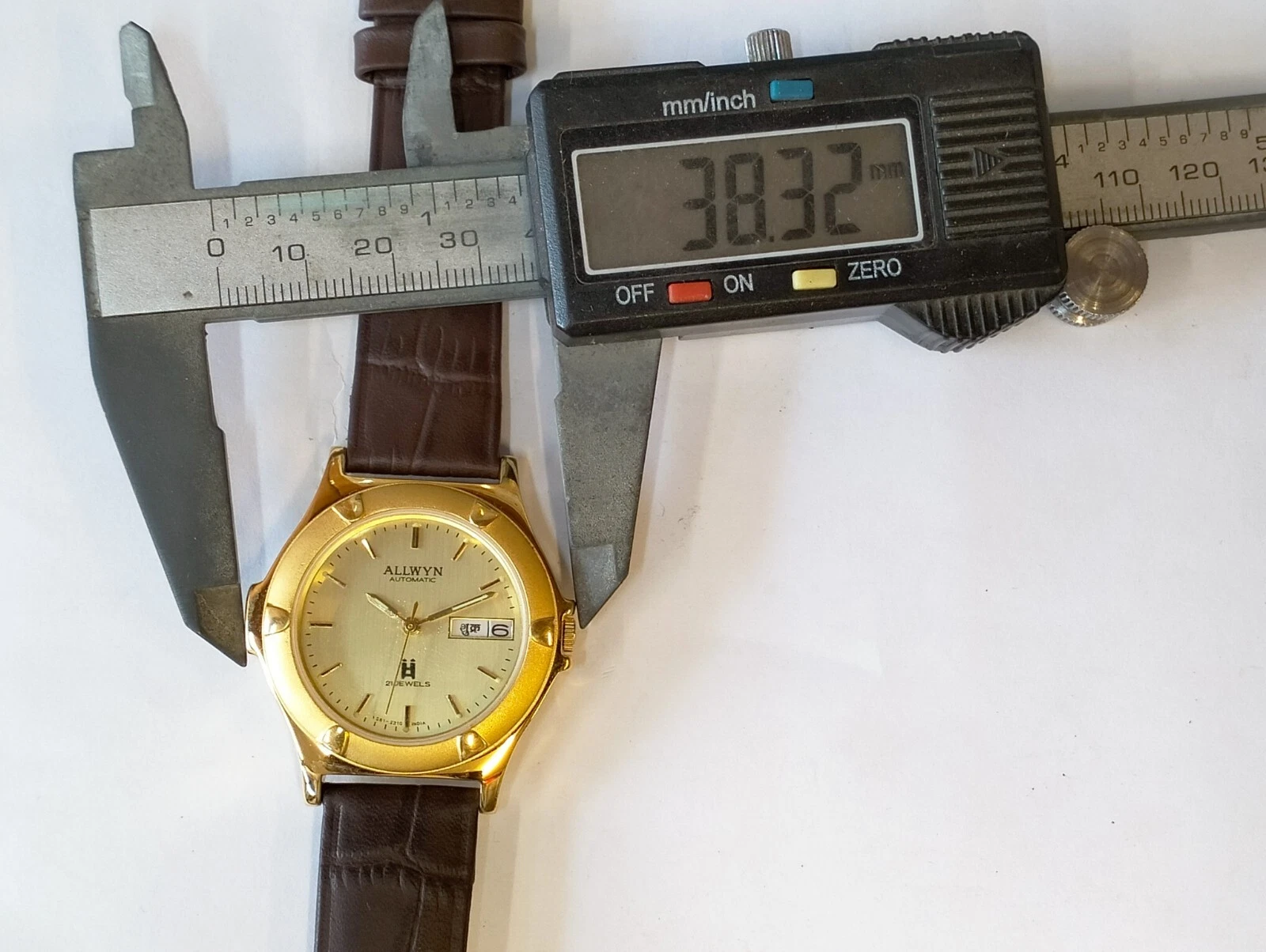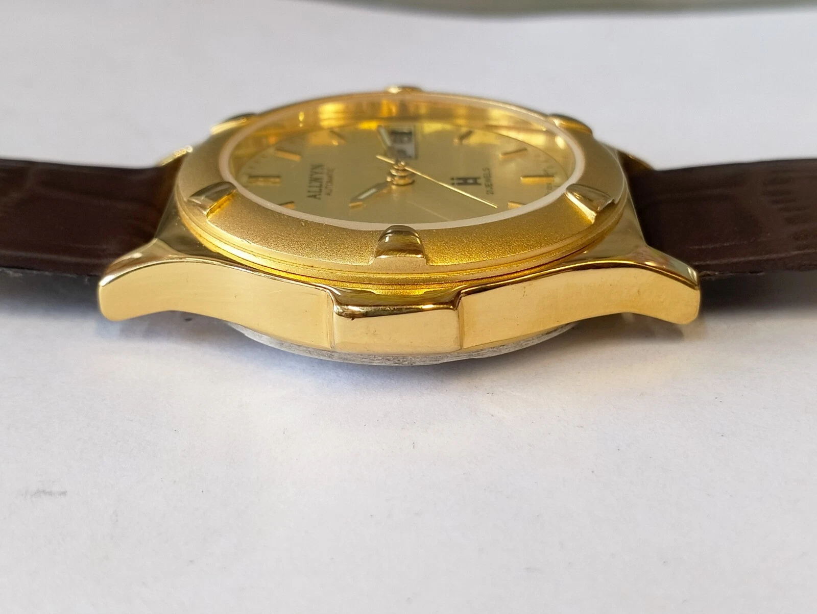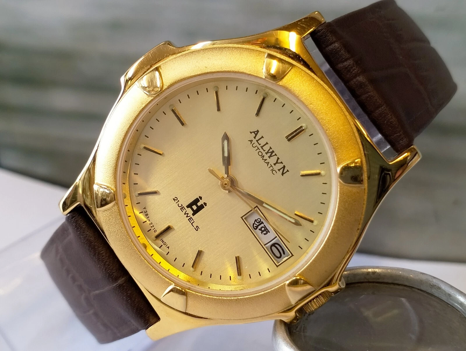 ORIGINAL ALLWYN AUTOMATIC NOS 21J GOLD DIAL Y381-8460 INDIA MEN'S FULL WORKING