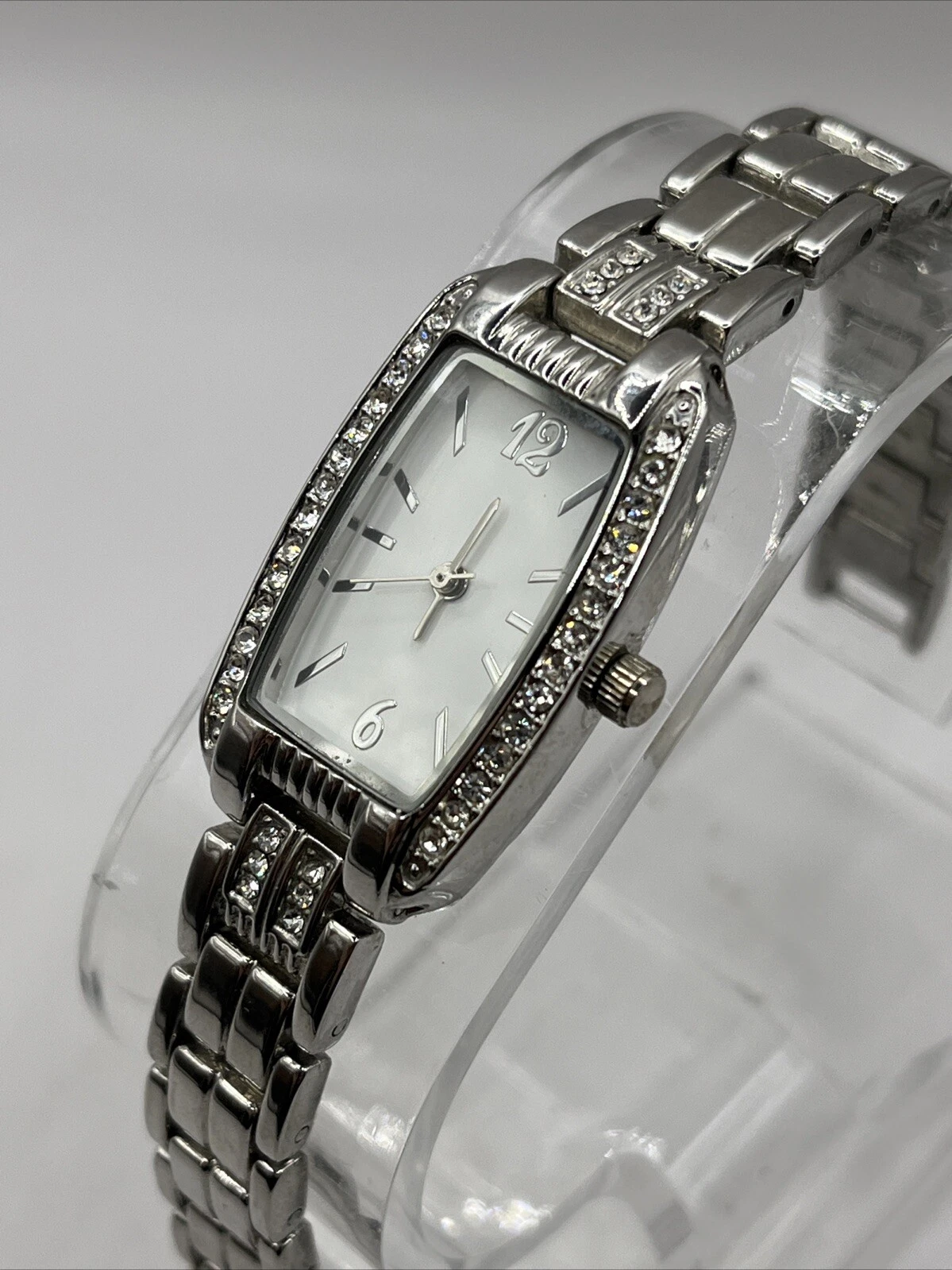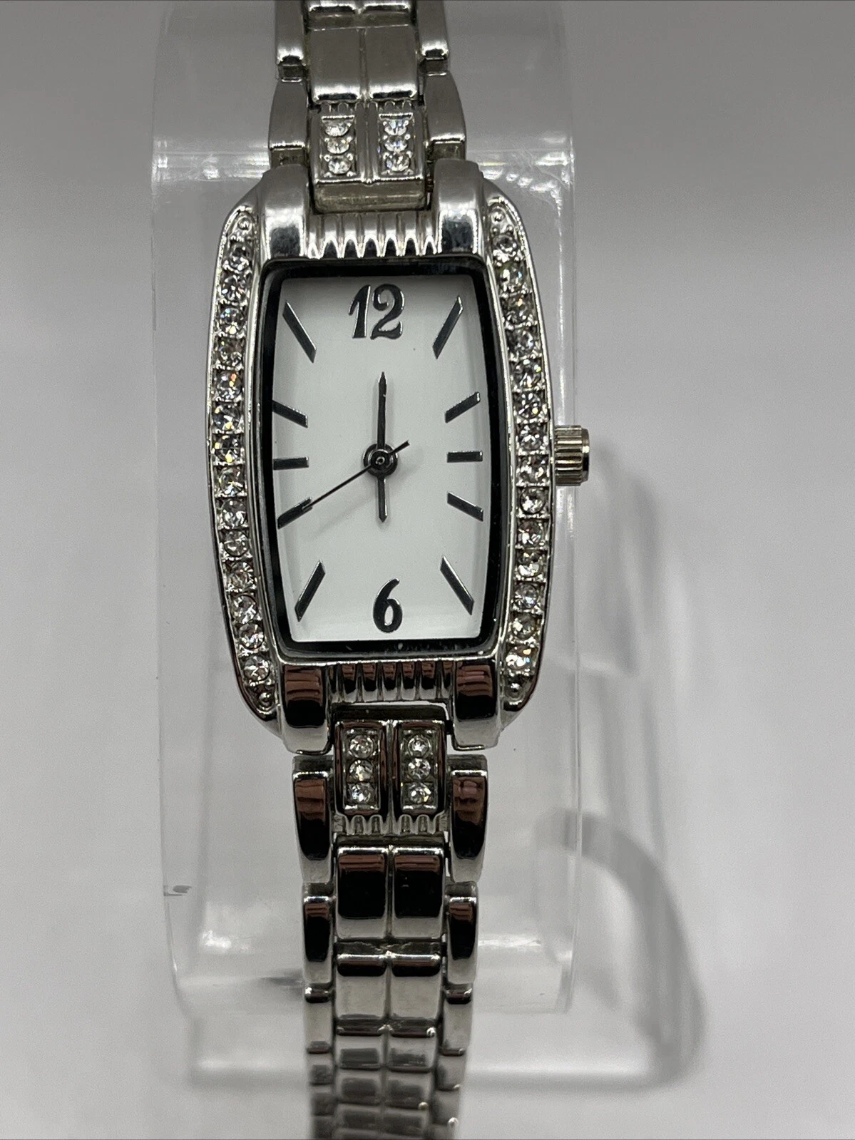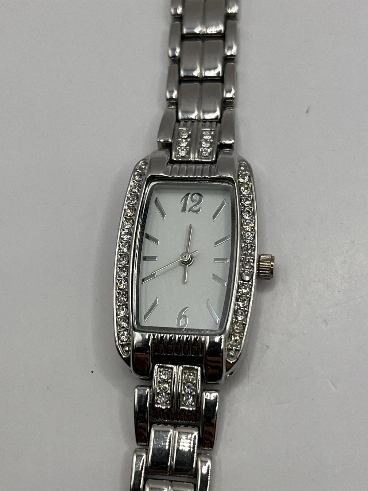 Allude Women's Watch Silver 7" Bracelet Band Rhinestone Bezel- New Battery