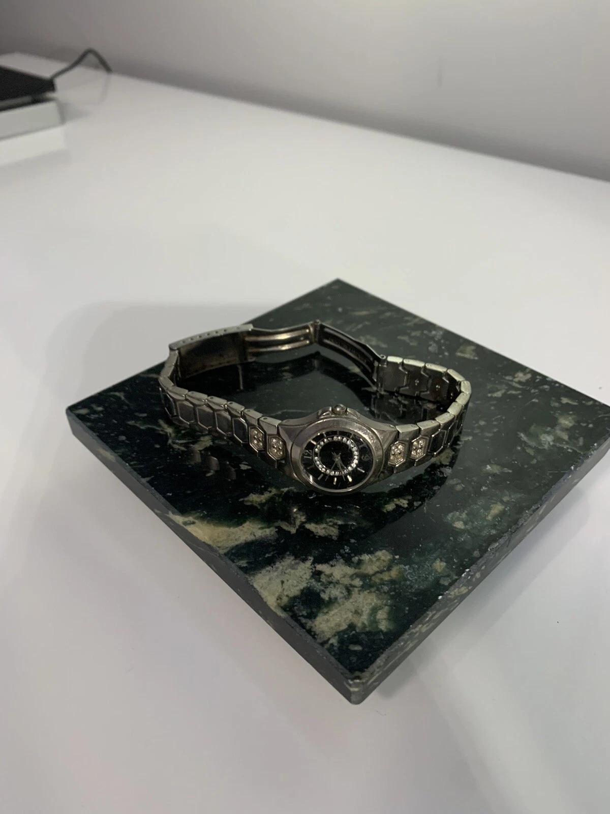 Vtg. Allude Women’s Silver And Black Watch With Stones. Band Is Nice With Weight