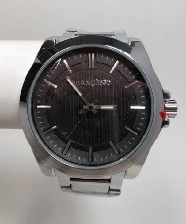 NEW Alexander Dubois 1487A Mens St Emilion Black Textured Silver Dial Watch 30m