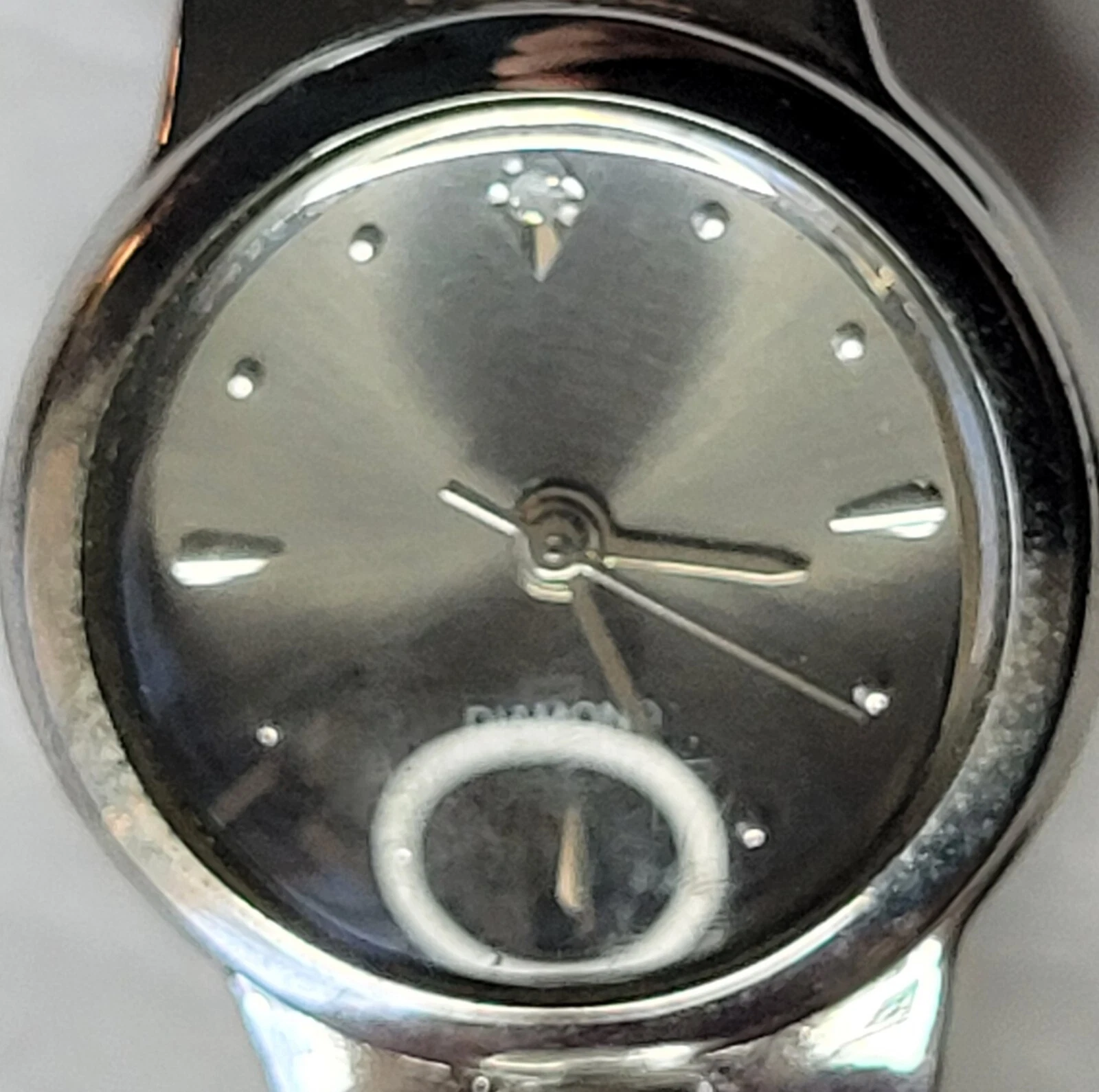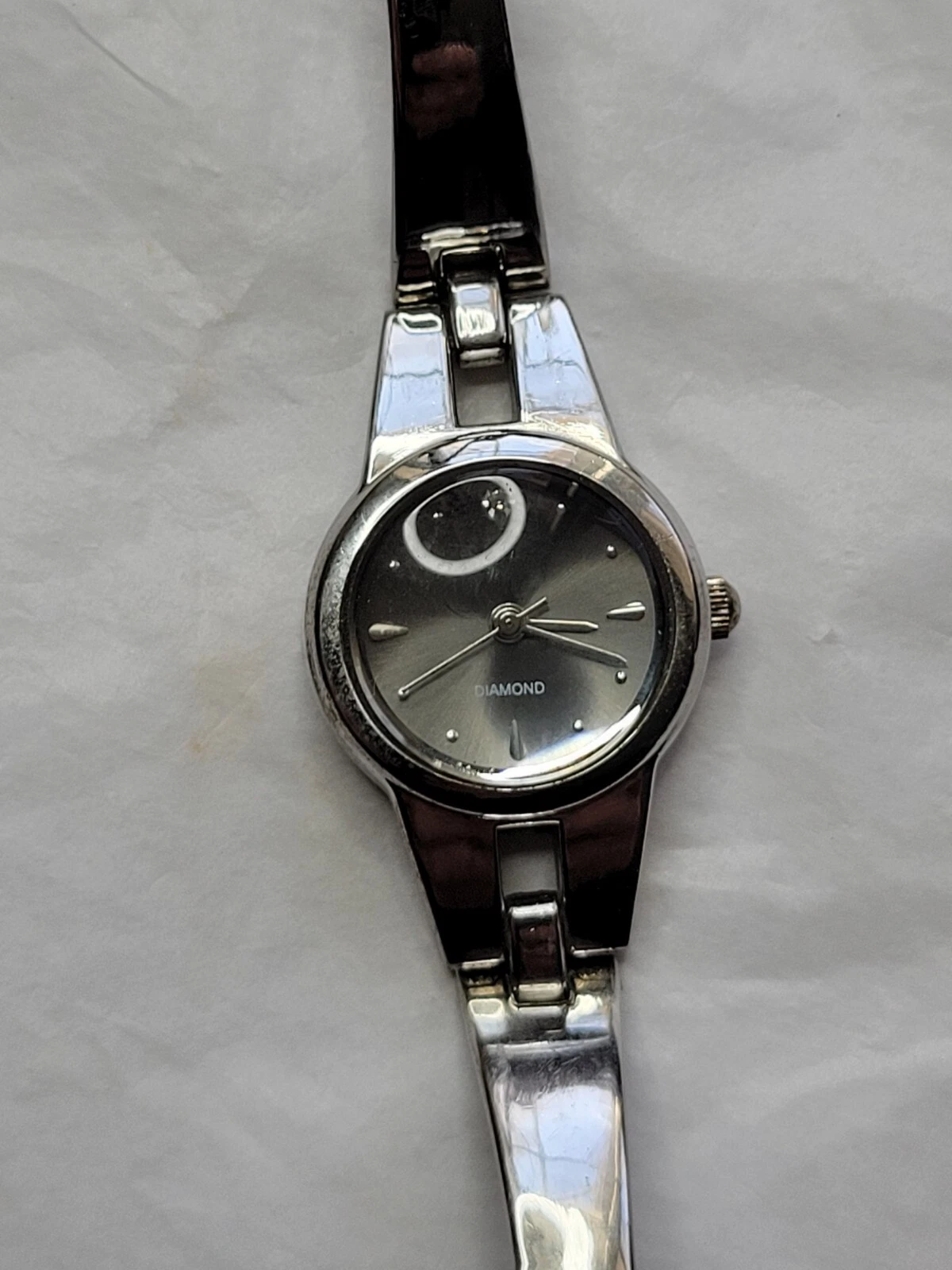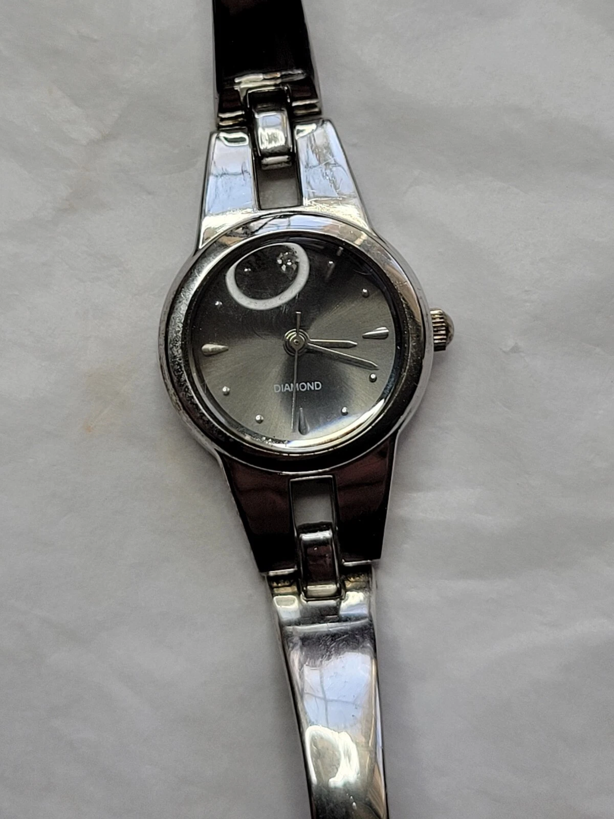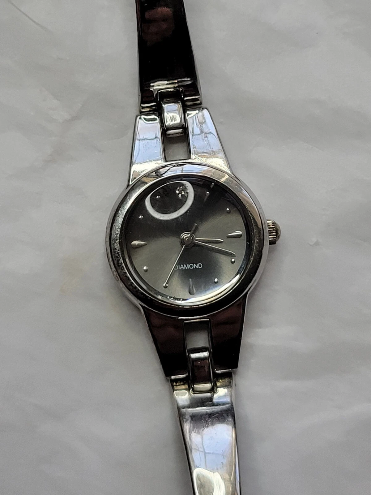 Allude Diamond Watch Silver Tone Cuff Band Chain Round Face New Battery Run Well