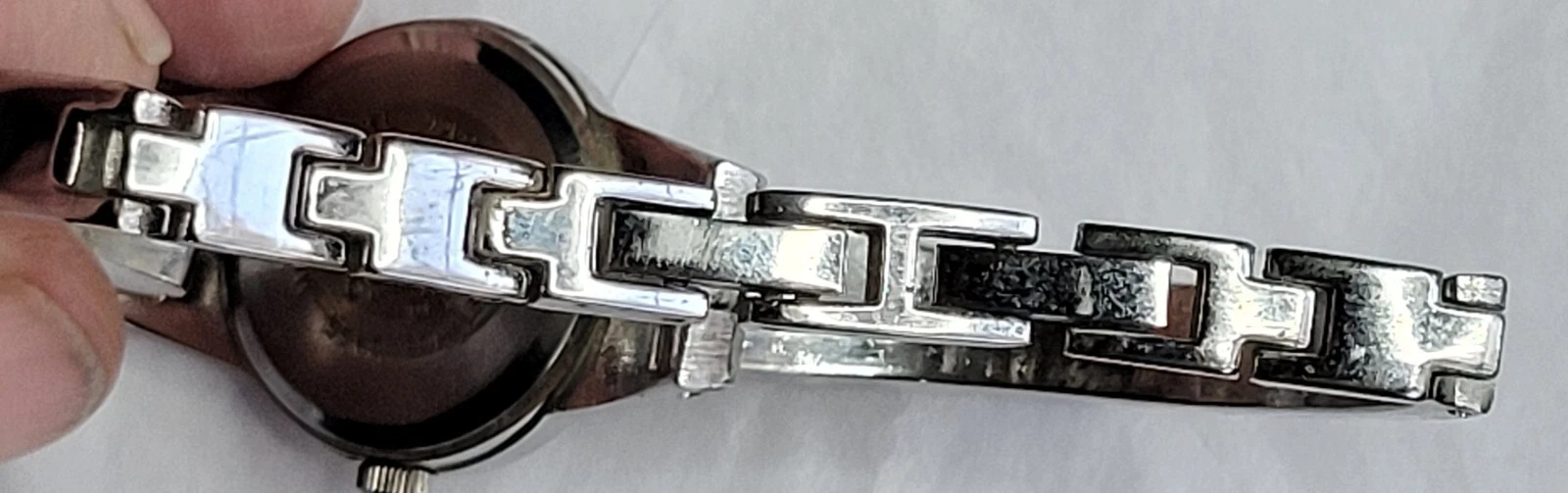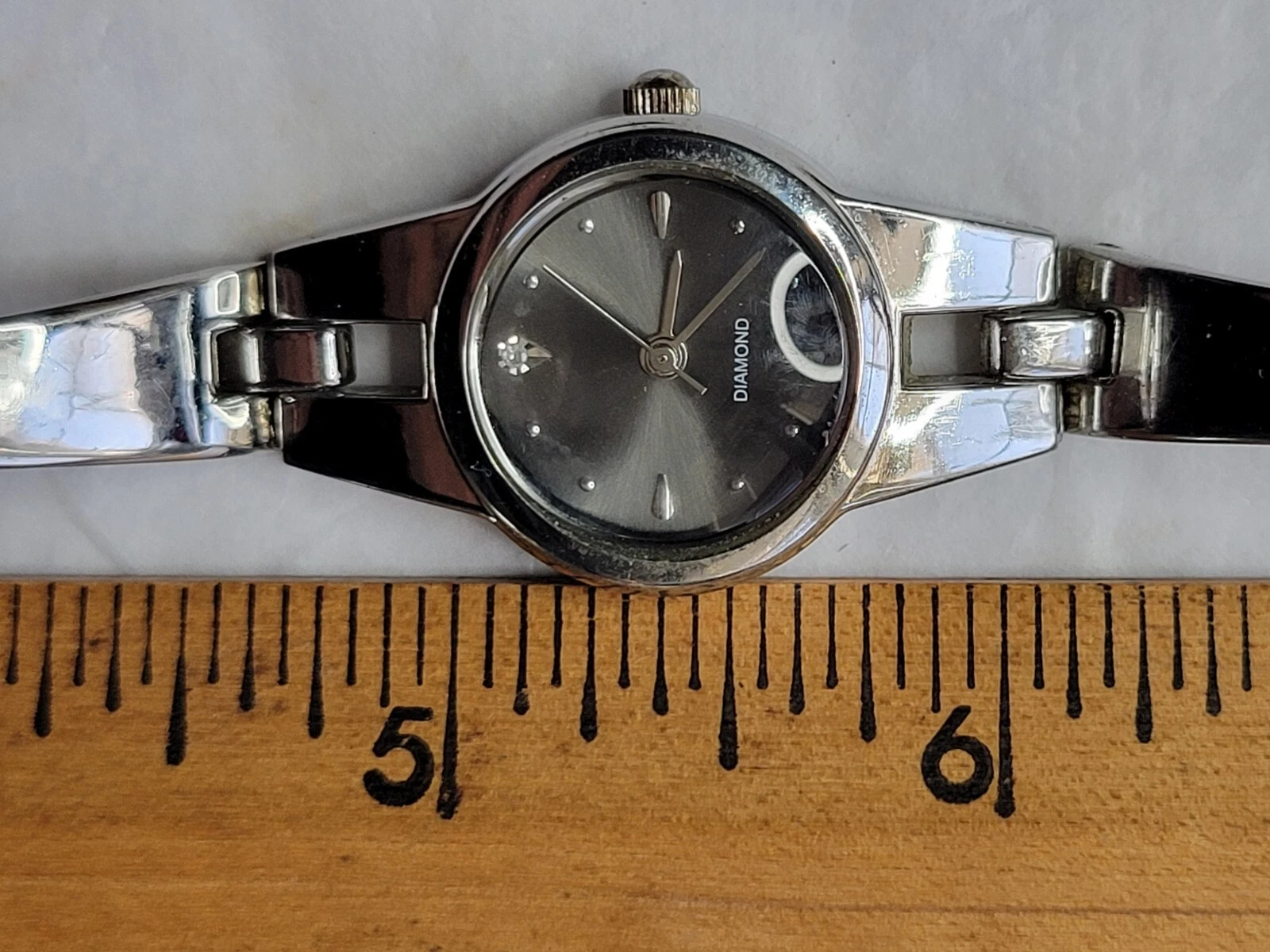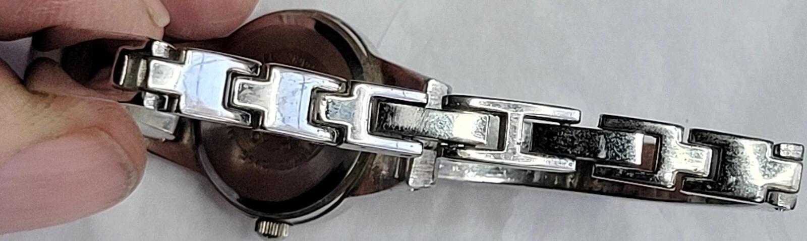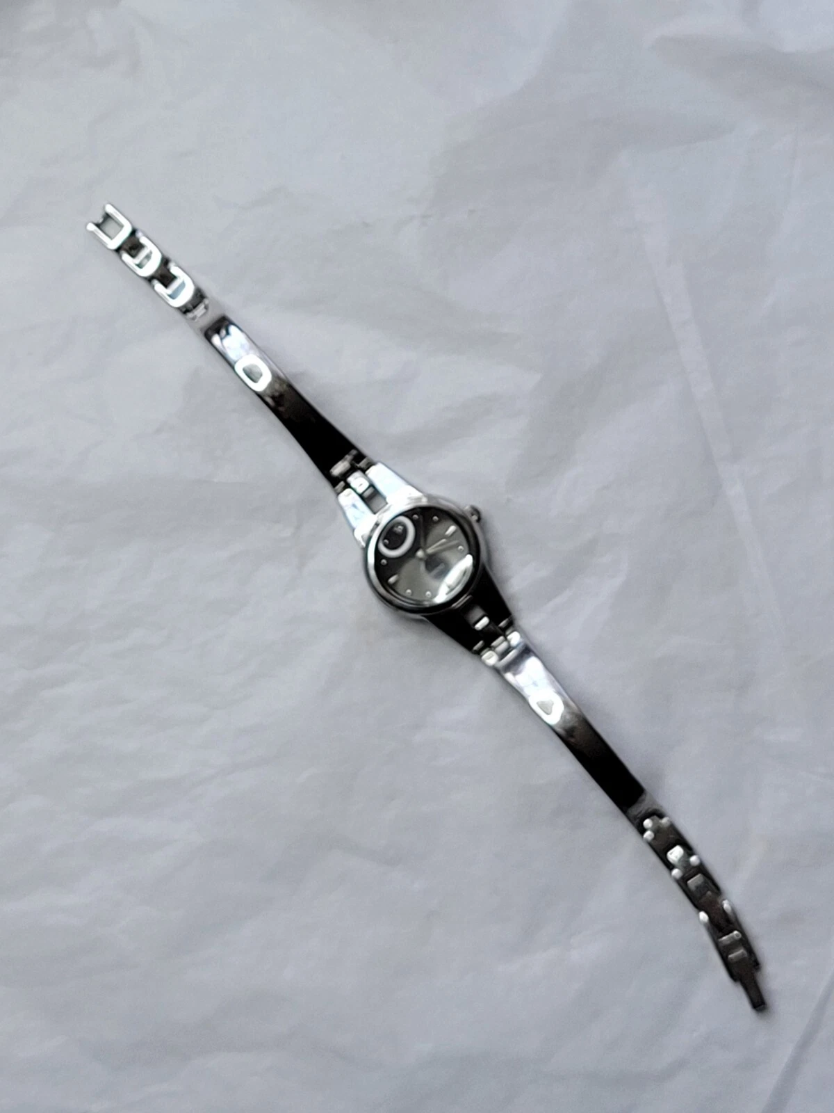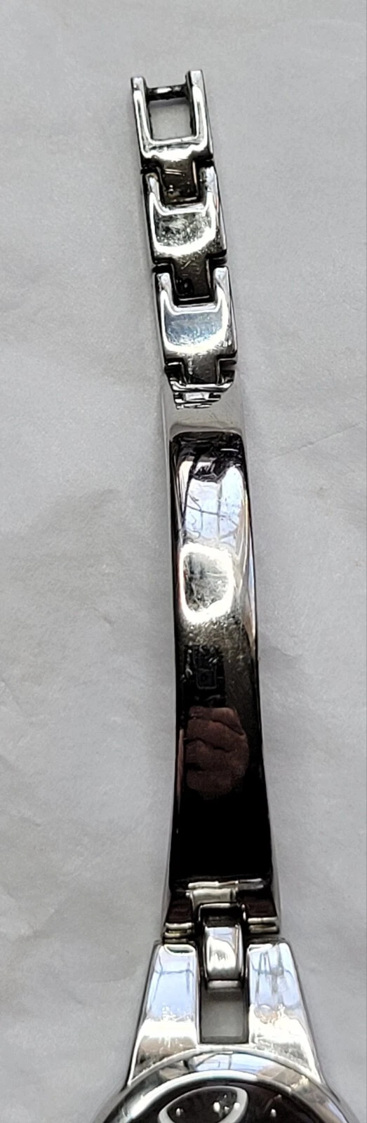 Allude Diamond Watch Silver Tone Cuff Band Chain Round Face New Battery Run Well