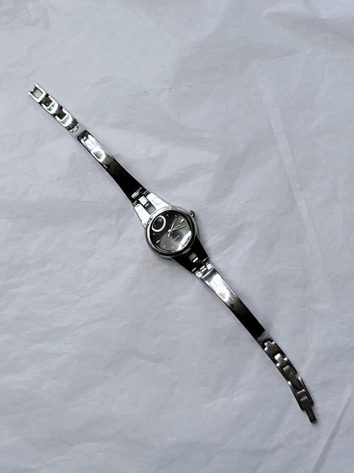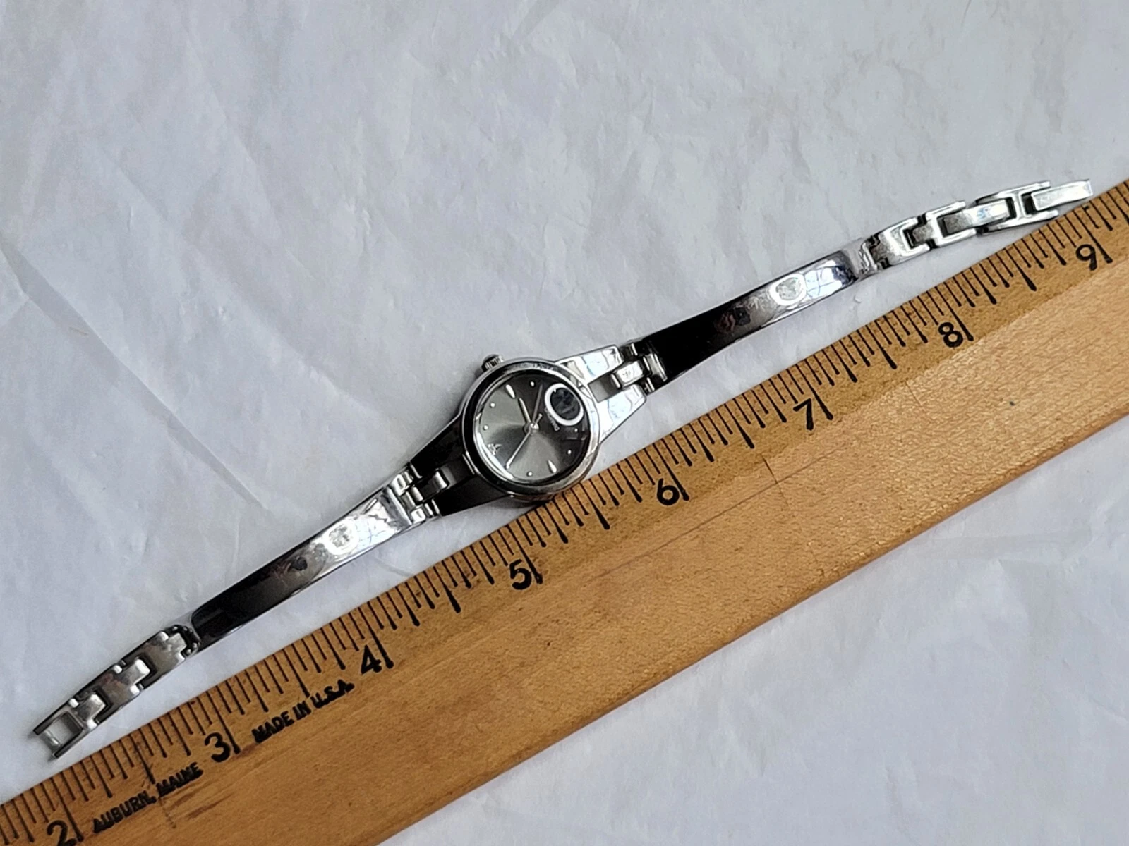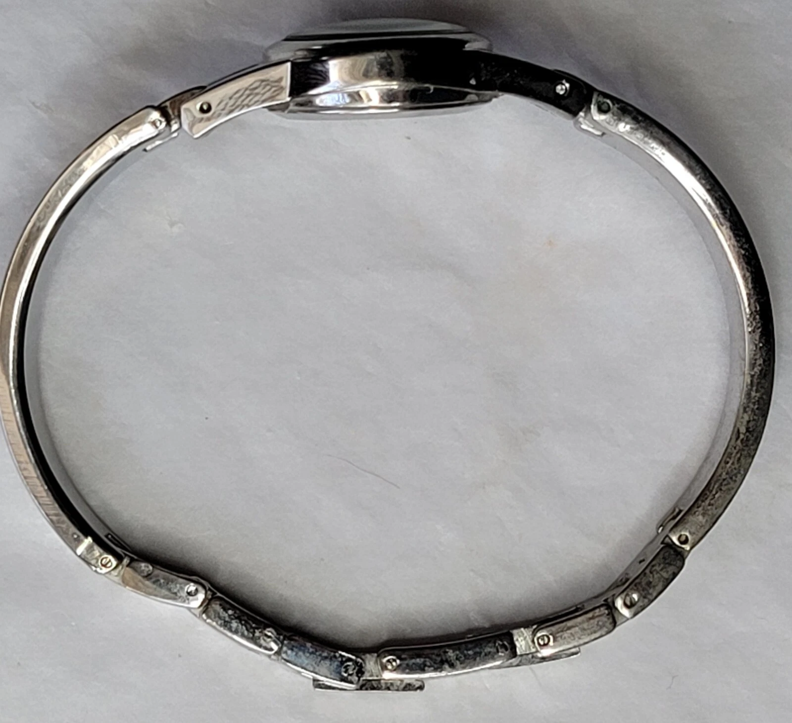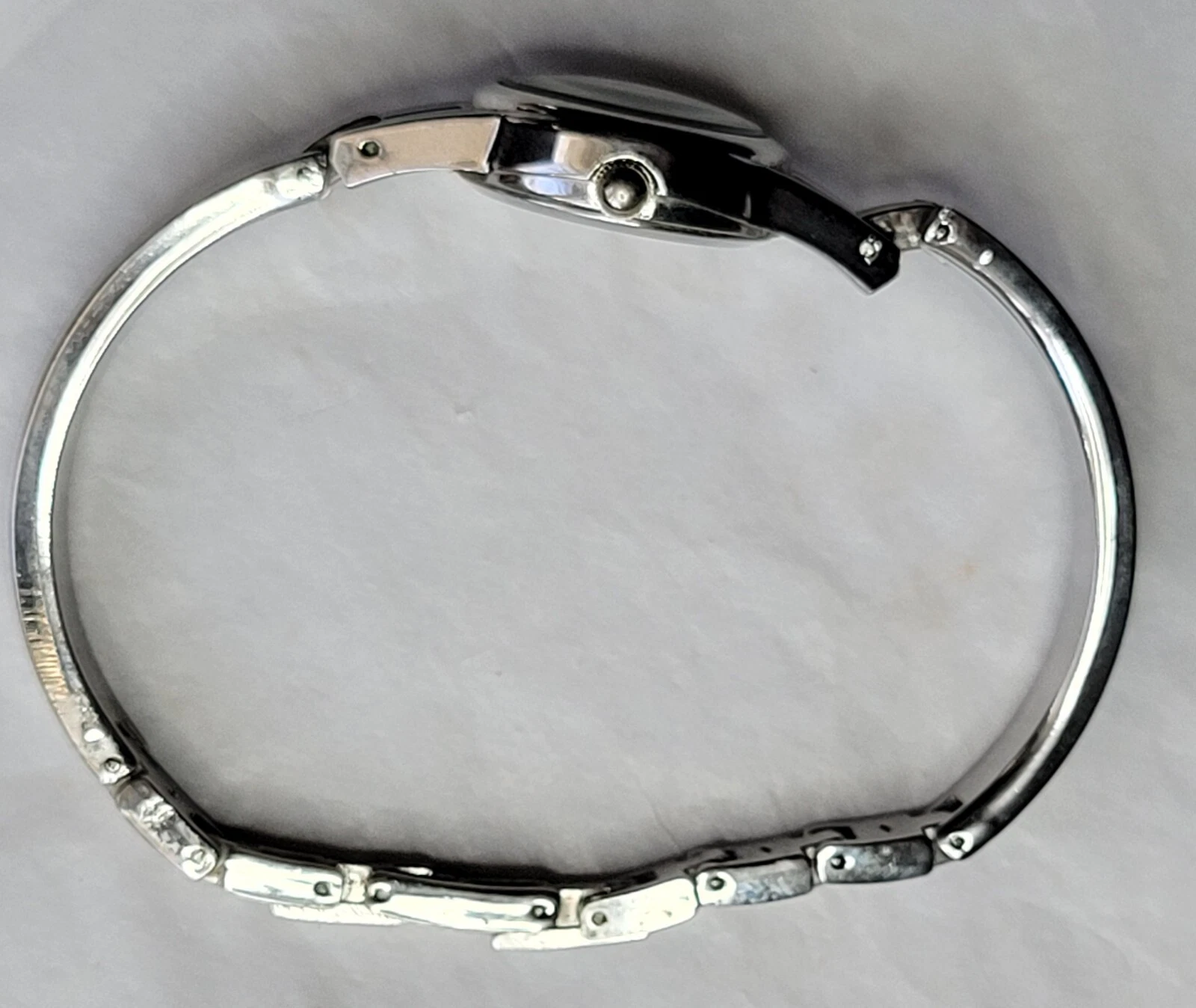Allude Diamond Watch Silver Tone Cuff Band Chain Round Face New Battery Run Well