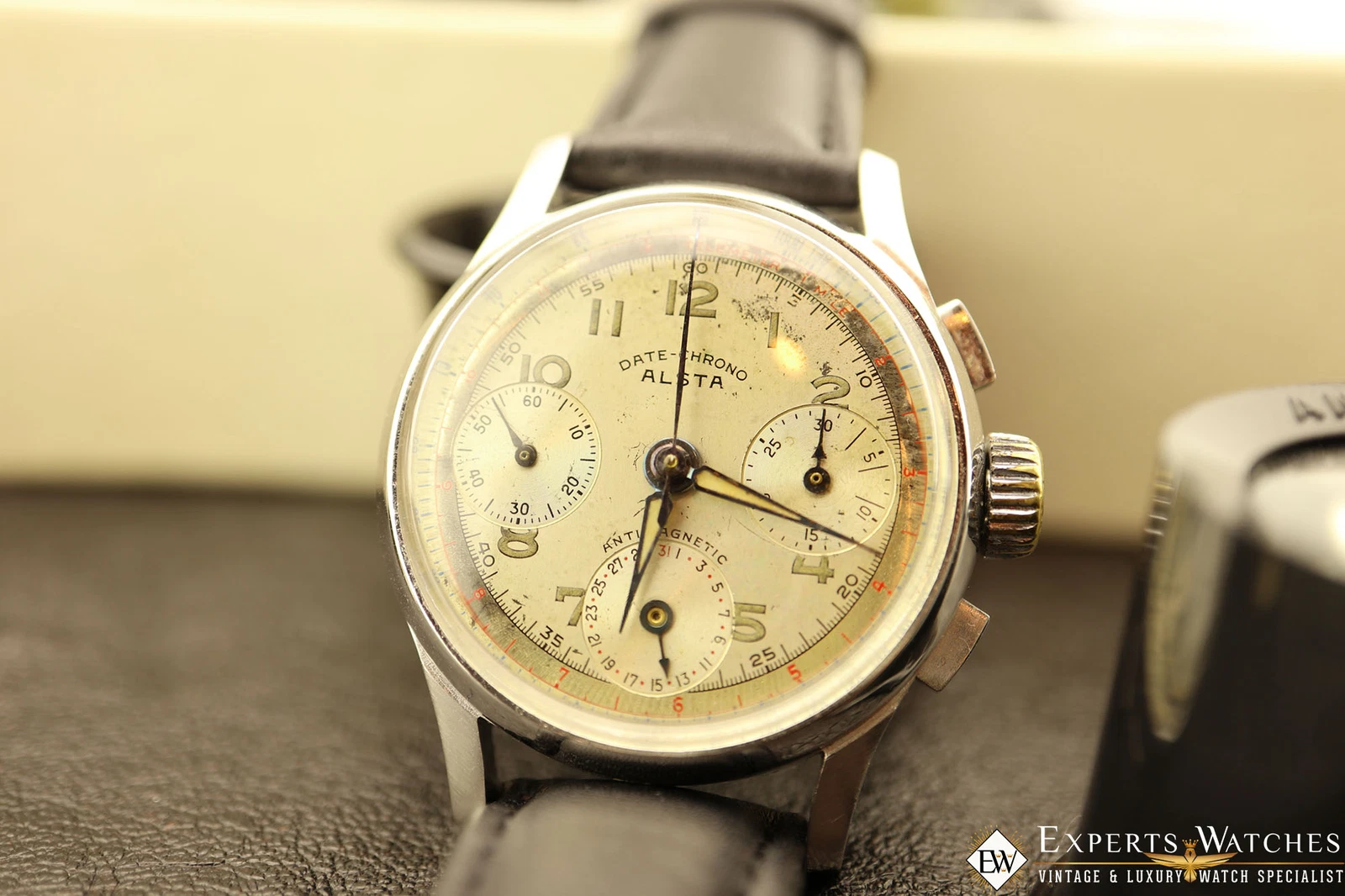 1950's Vintage Alsta Date-Chrono Watch Chronograph Landeron 159