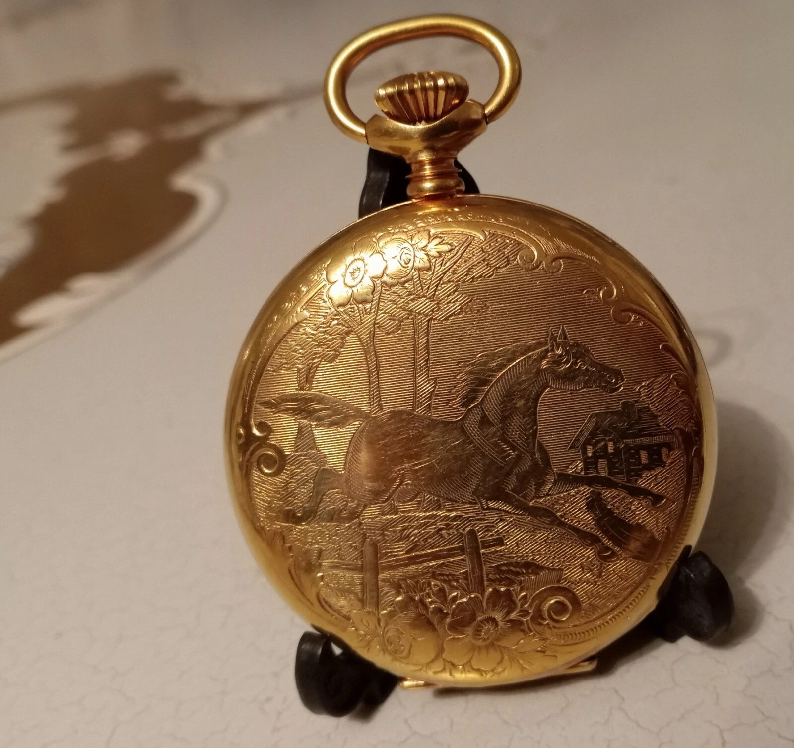 ALSTA VINTAGE  Electro Plated Gold Case Unitas 6497 Equestrian Pocket Watch
