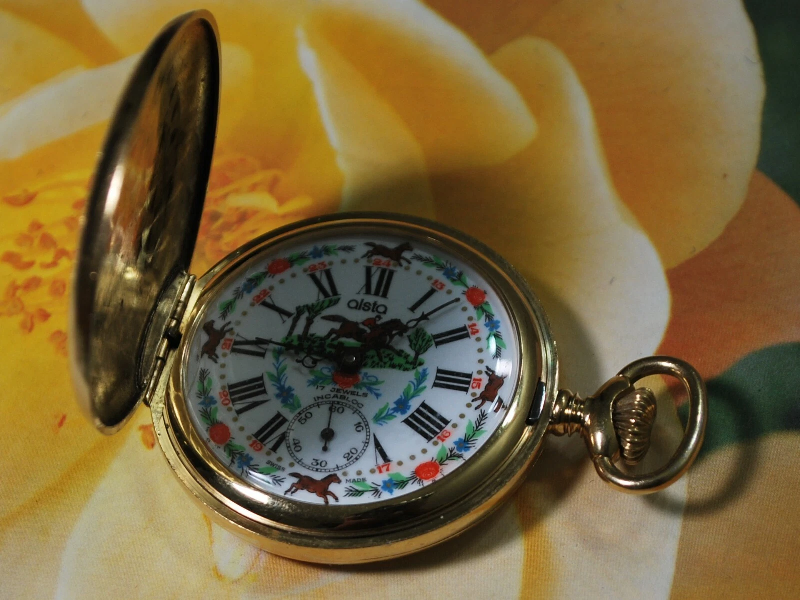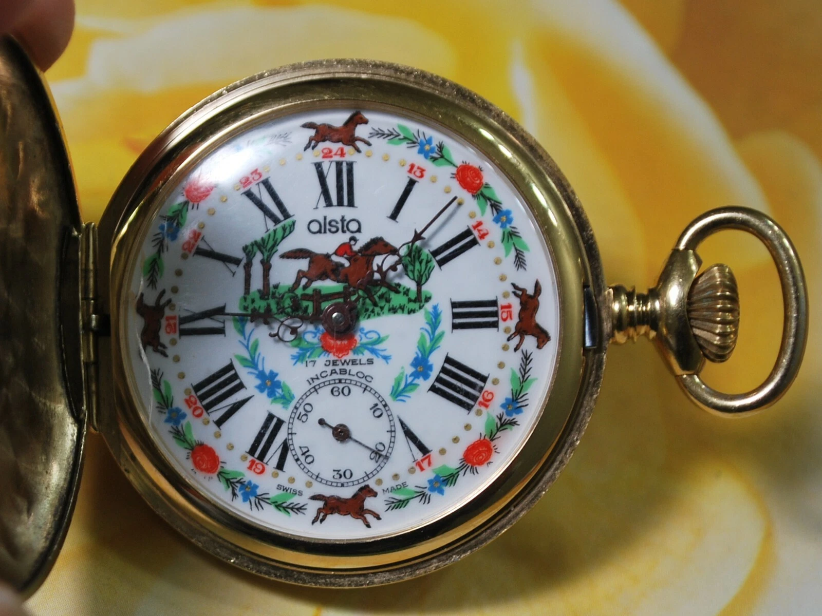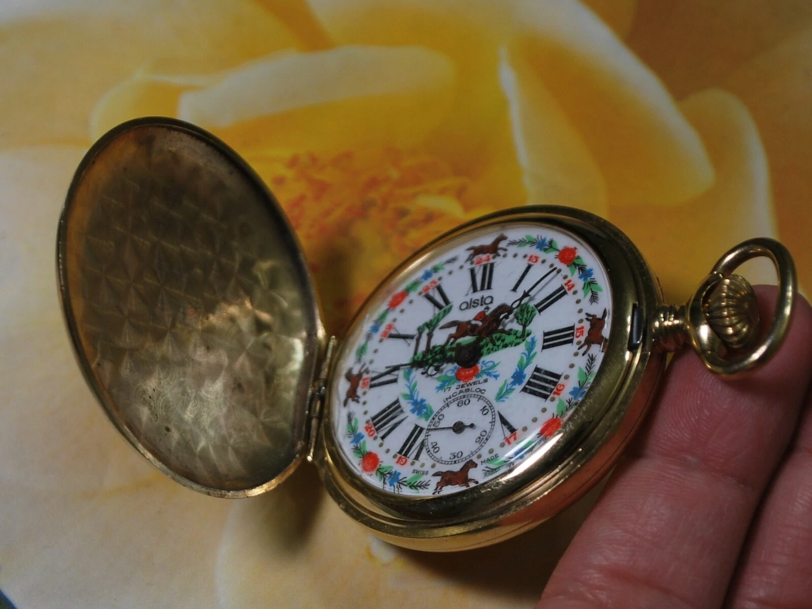 Vintage 1950s Swiss ALSTA Gold Tone 17J Unita 6498 Hunter Case Pocket Watch