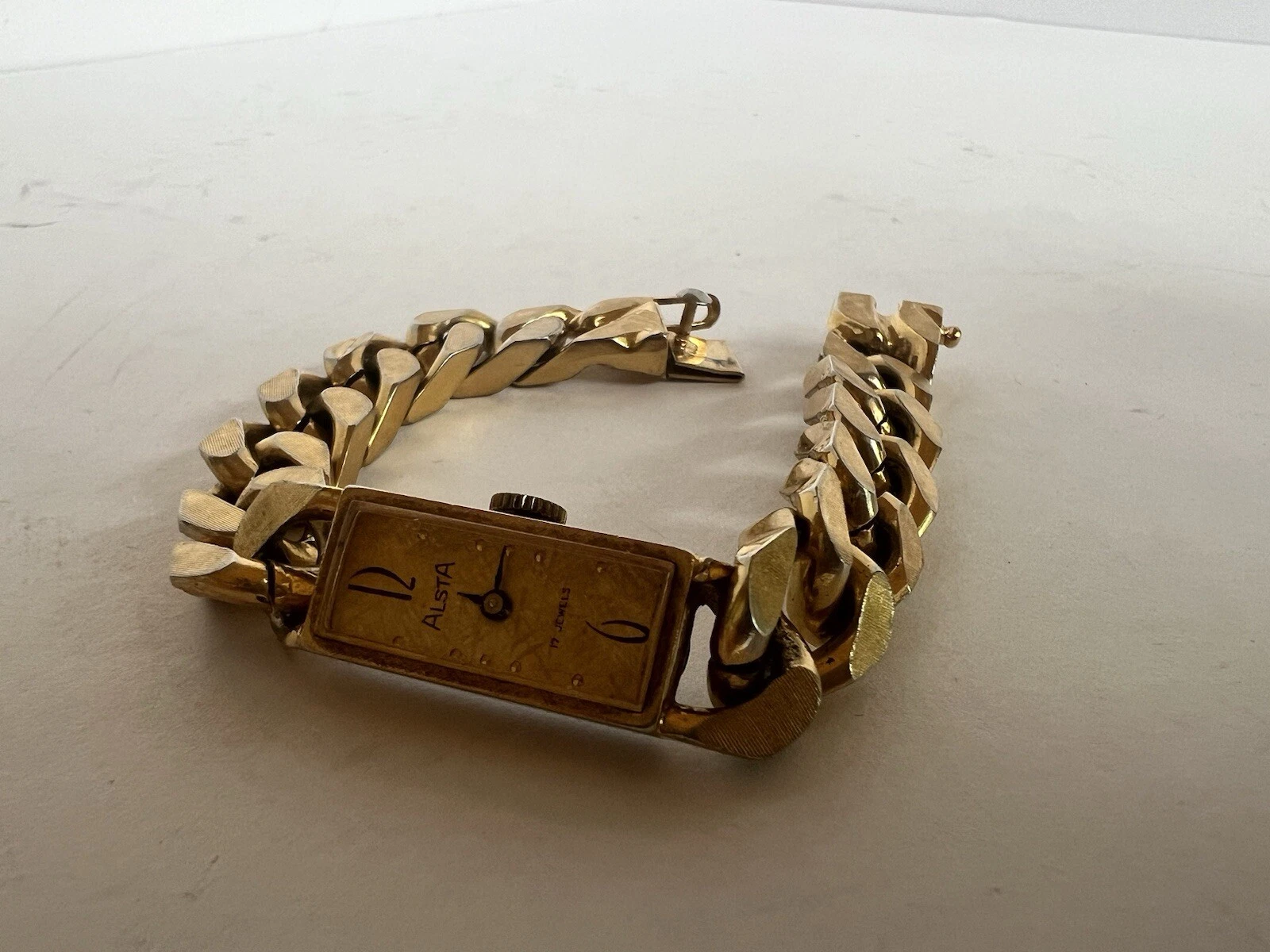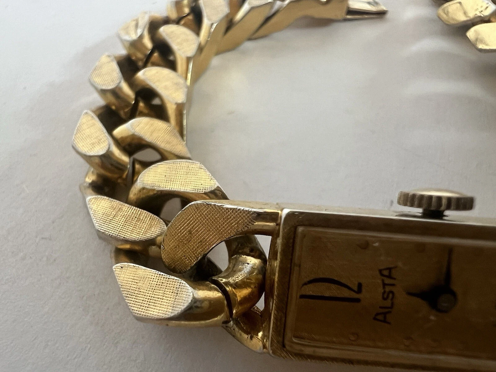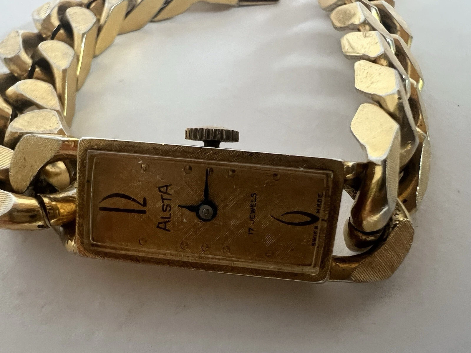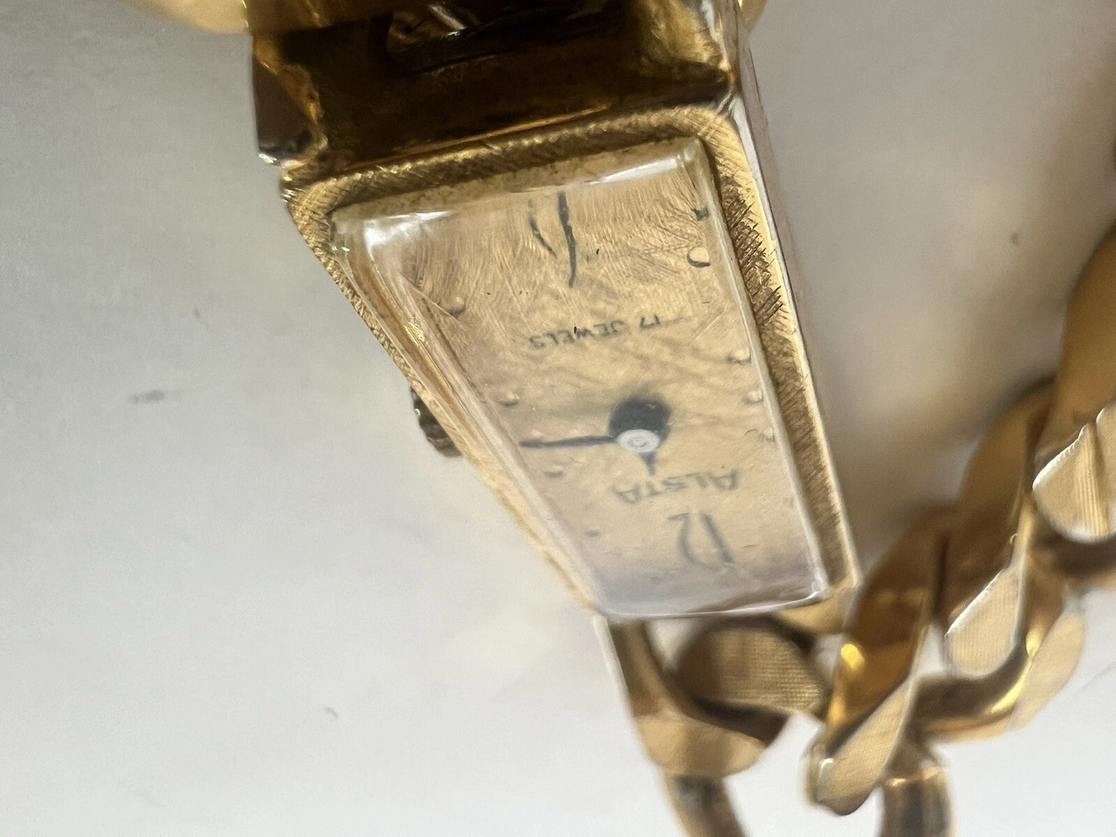 Vtg ALSTA 17 Jewel Gold Tone Women’s Watch Manual Wind Bracelet
