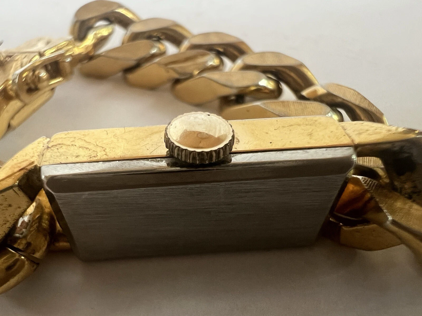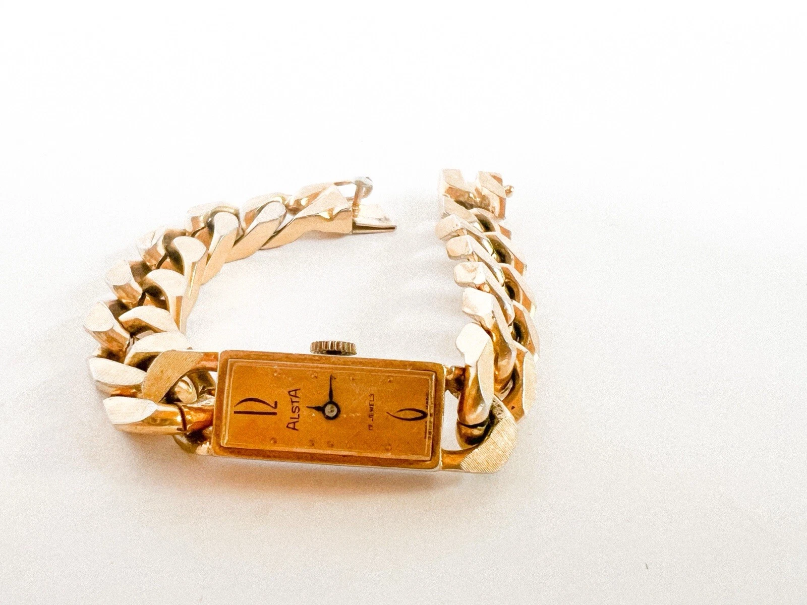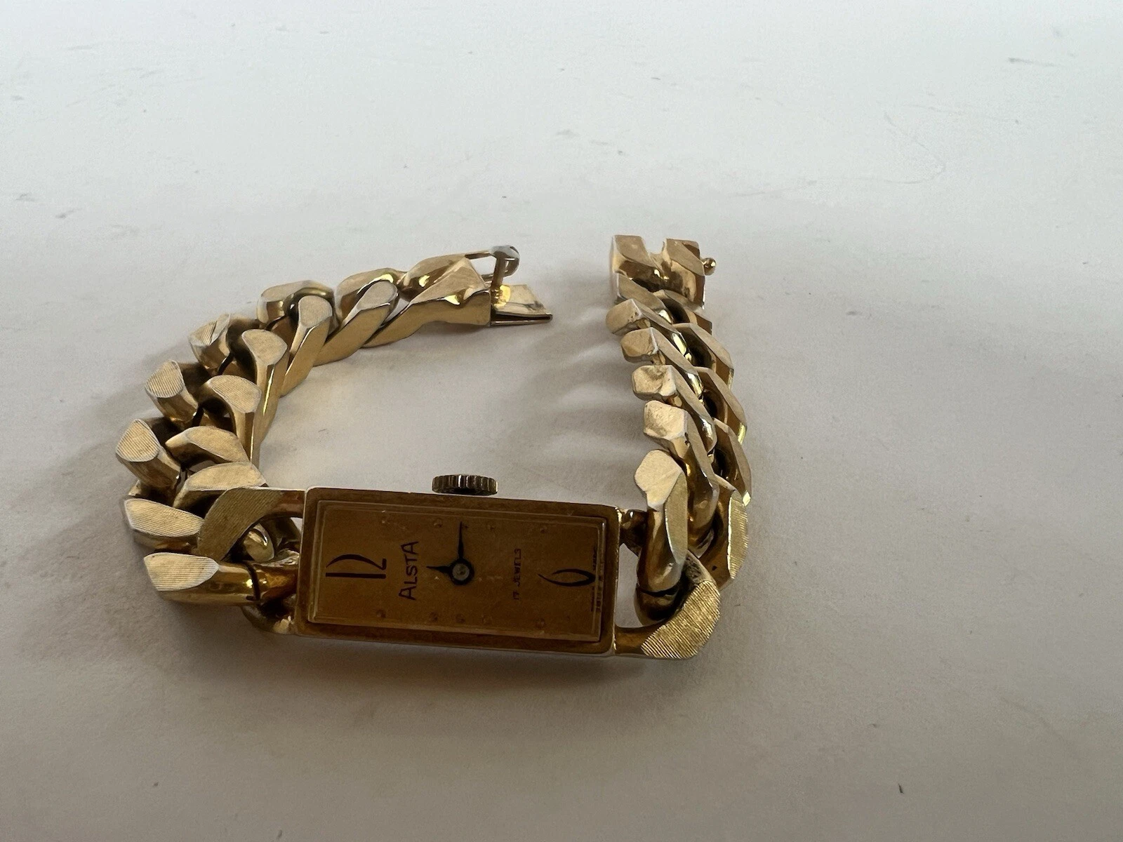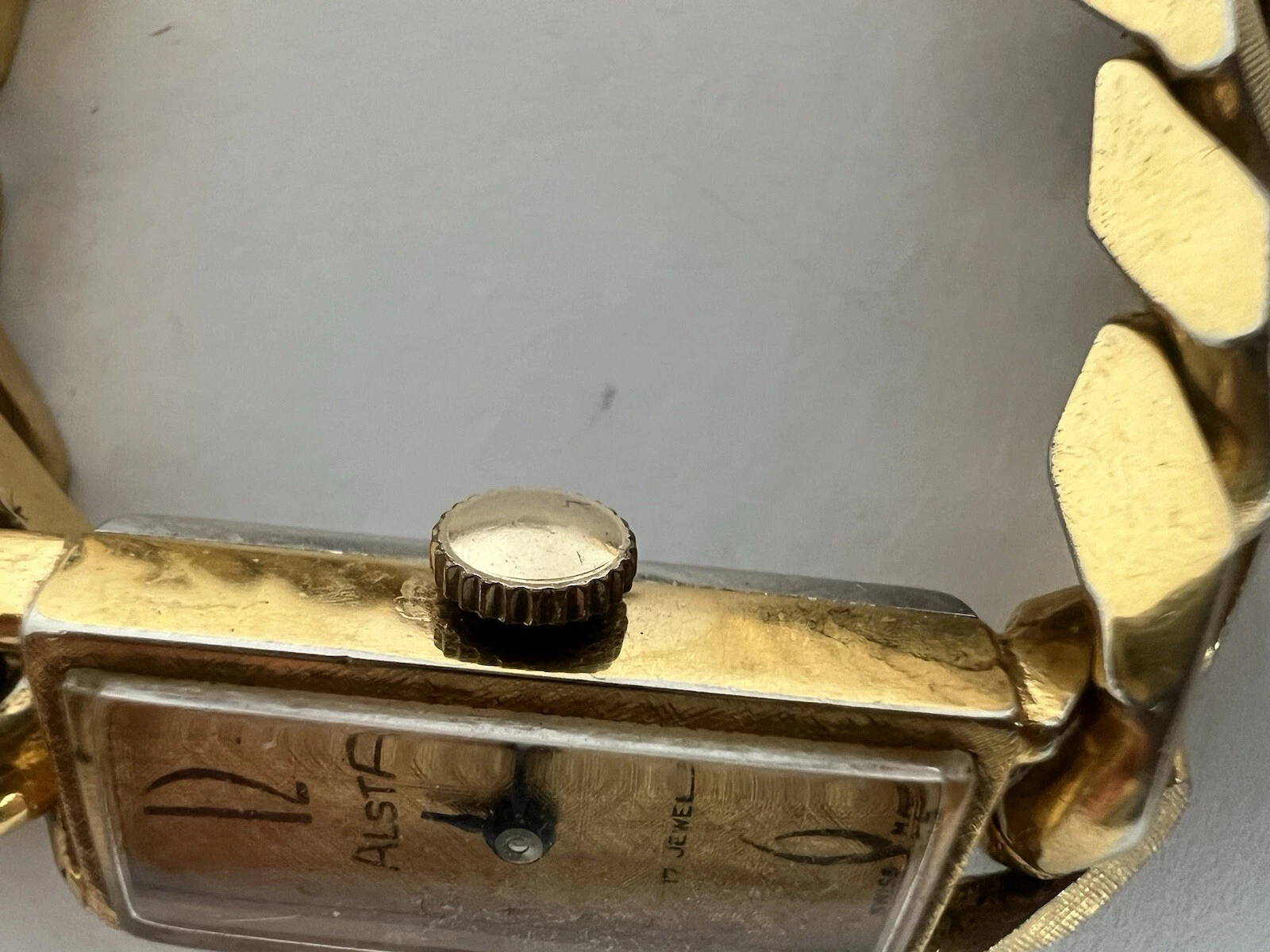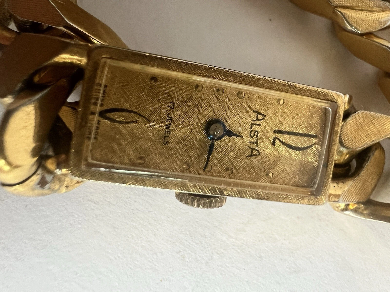 Vtg ALSTA 17 Jewel Gold Tone Women’s Watch Manual Wind Bracelet
