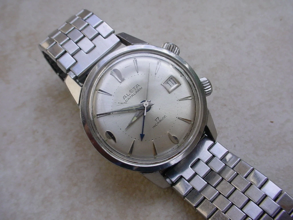 Vintage Collectible Alsta Mechanical Datalarm In Stainless Steel Case & Bracelet