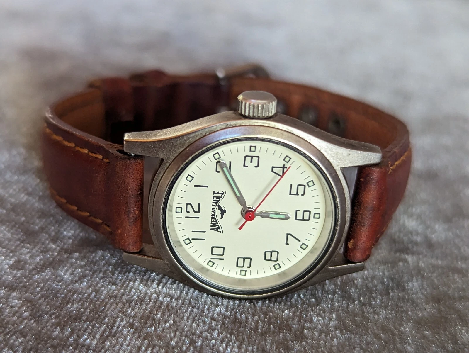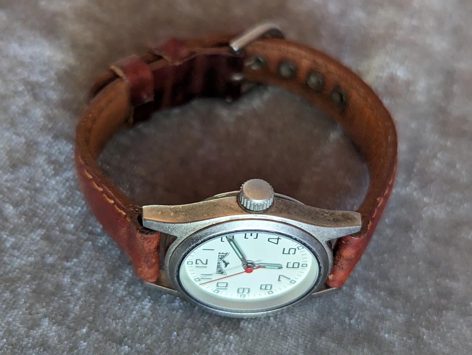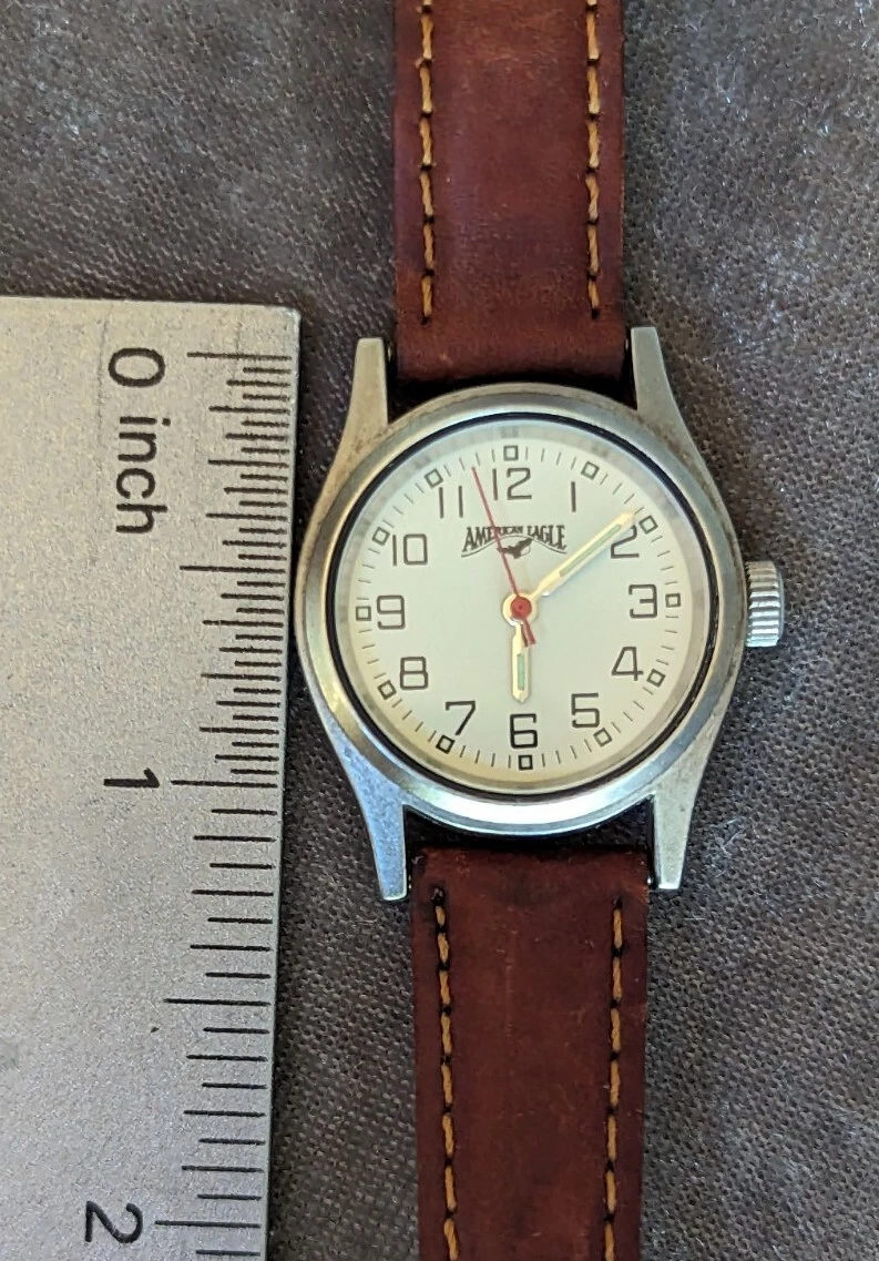American Eagle ZC-06707 Women's 27mm Silver Tone Quartz Watch Leather Bands