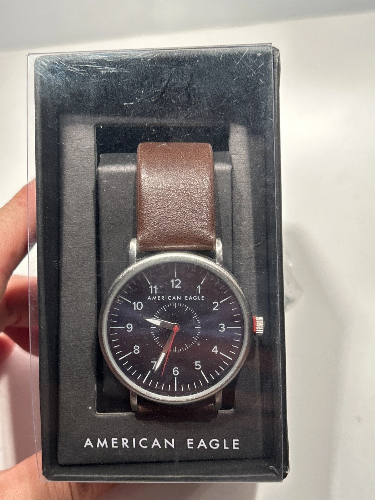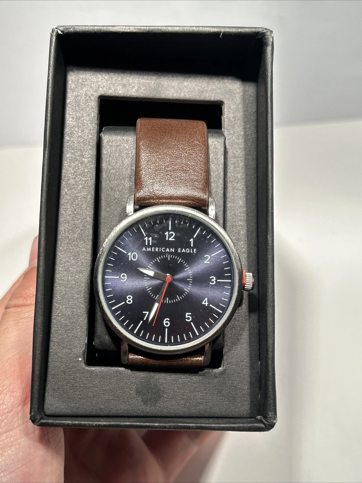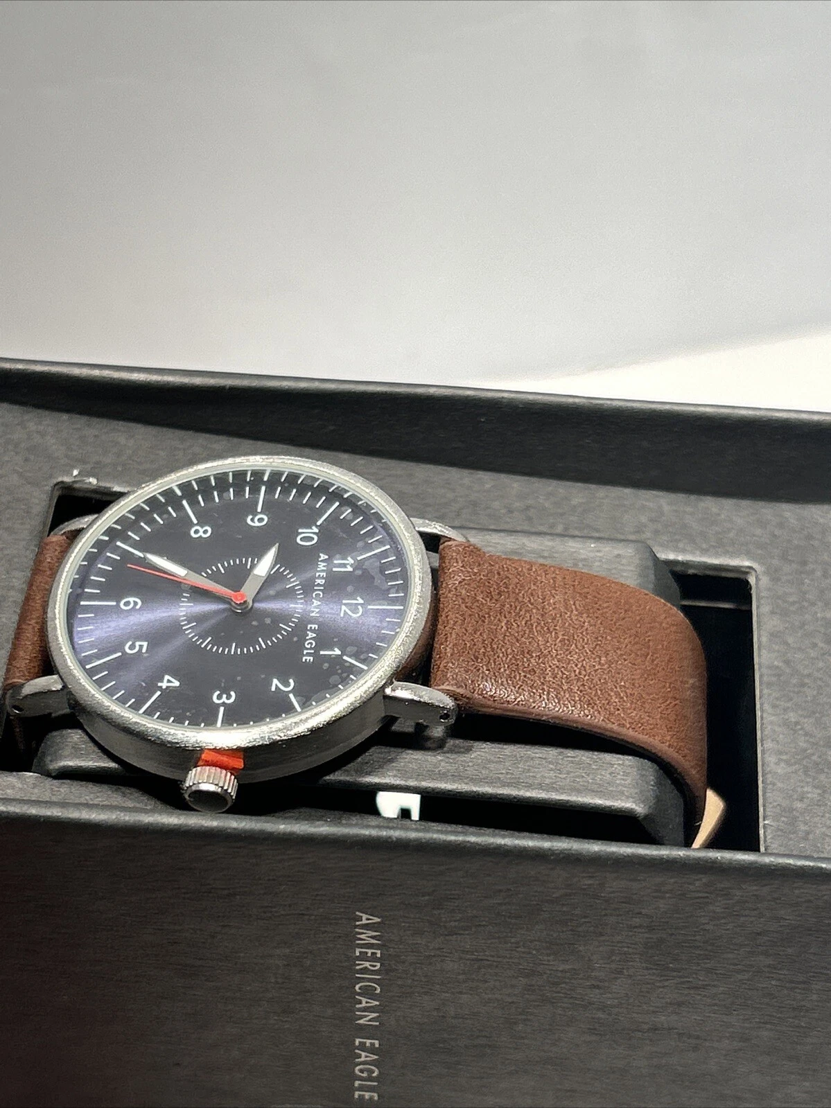 American Eagle Silver Tone Case 40mm Brown Leather Band Watch Sealed In Box