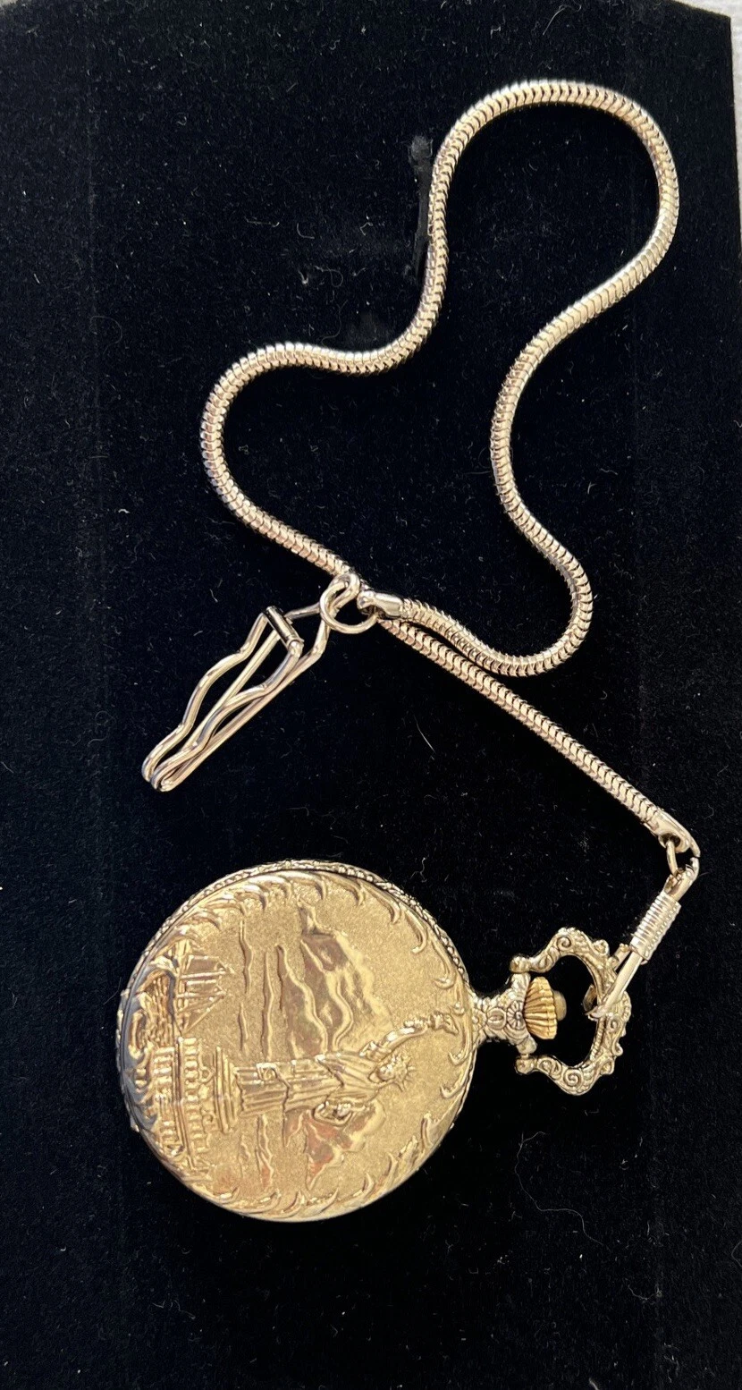 Statue of Liberty American eagle quartz pocket watch in gold commemorative LTD