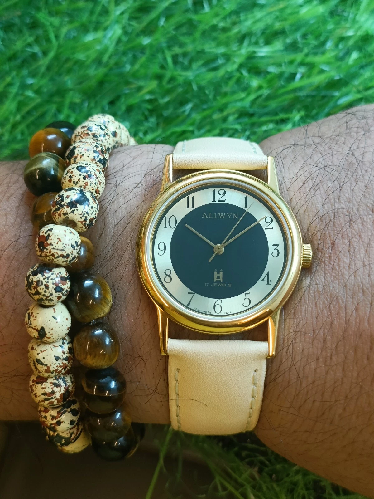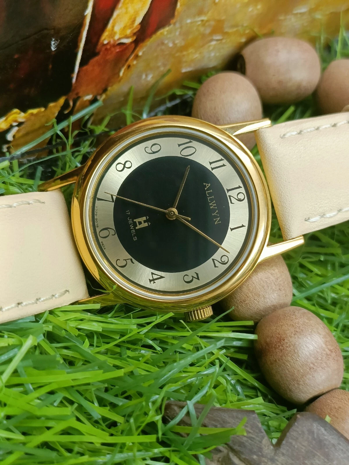 AUTHENTIC ALLWYN 17 JEWELS MEN'S SLIM WINDING INDIA MADE NOS NEW OLD STOCK WATCH