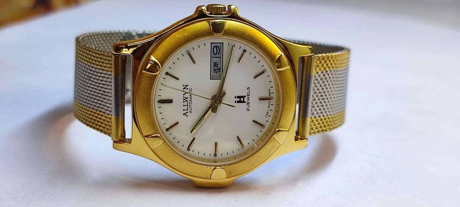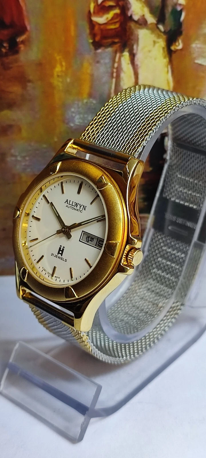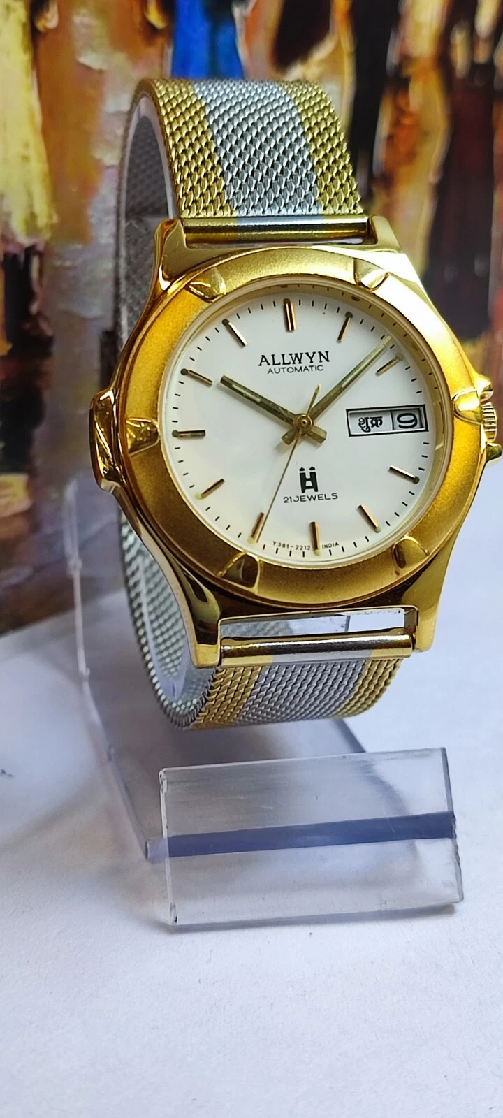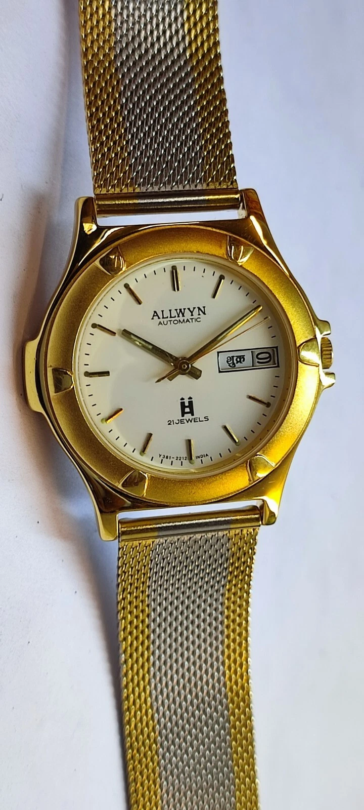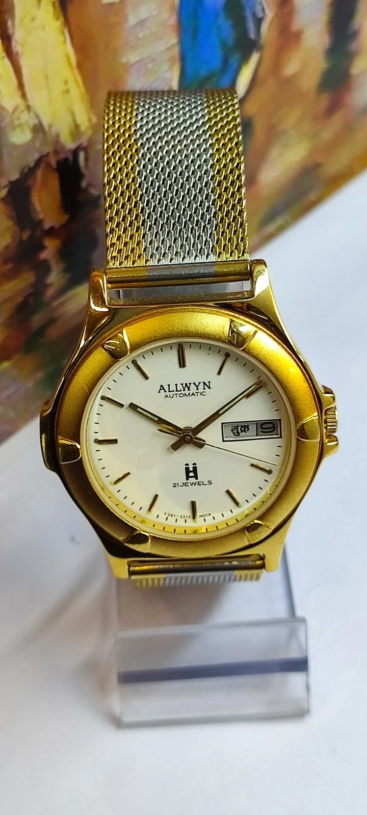 ALLWYN 21 JEWELS AUTOMATIC NOS WHITE DIAL Y381-8460 INDIA MEN'S FULL WORKING VTG