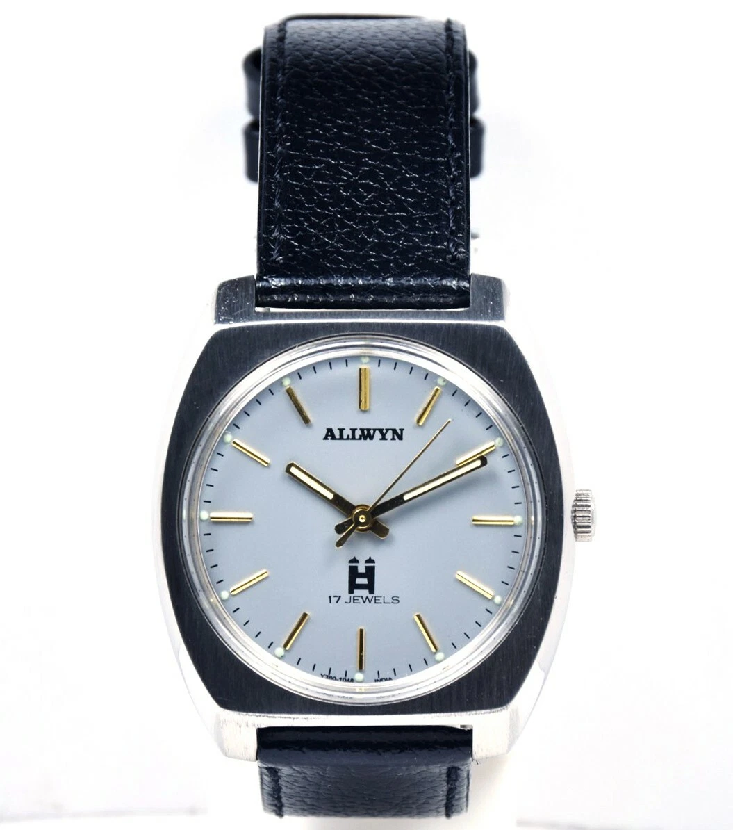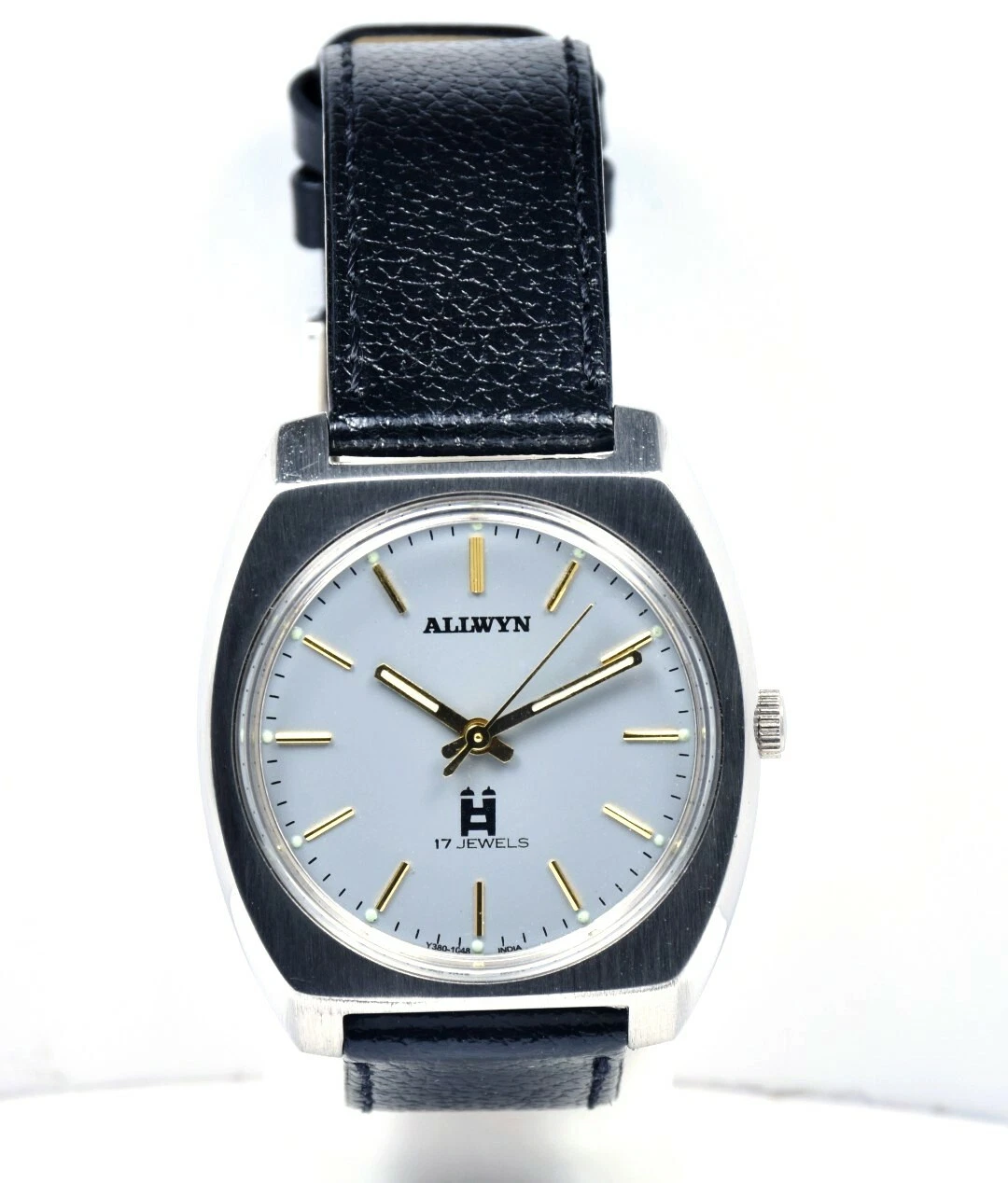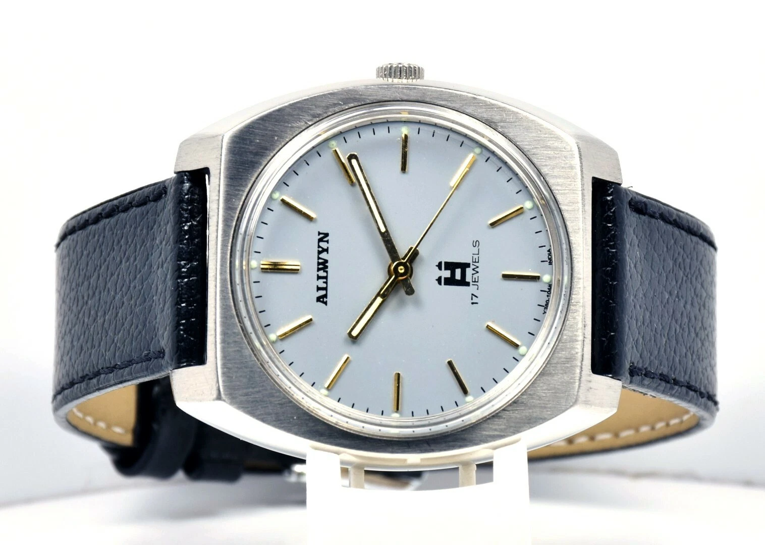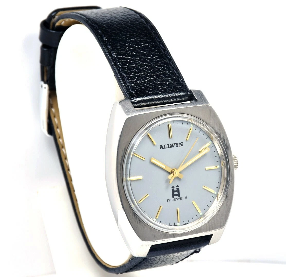 Rare Allwyn Light Gray Face 17 Jewels Men's Hand Winding Wrist Watch Case 37 mm