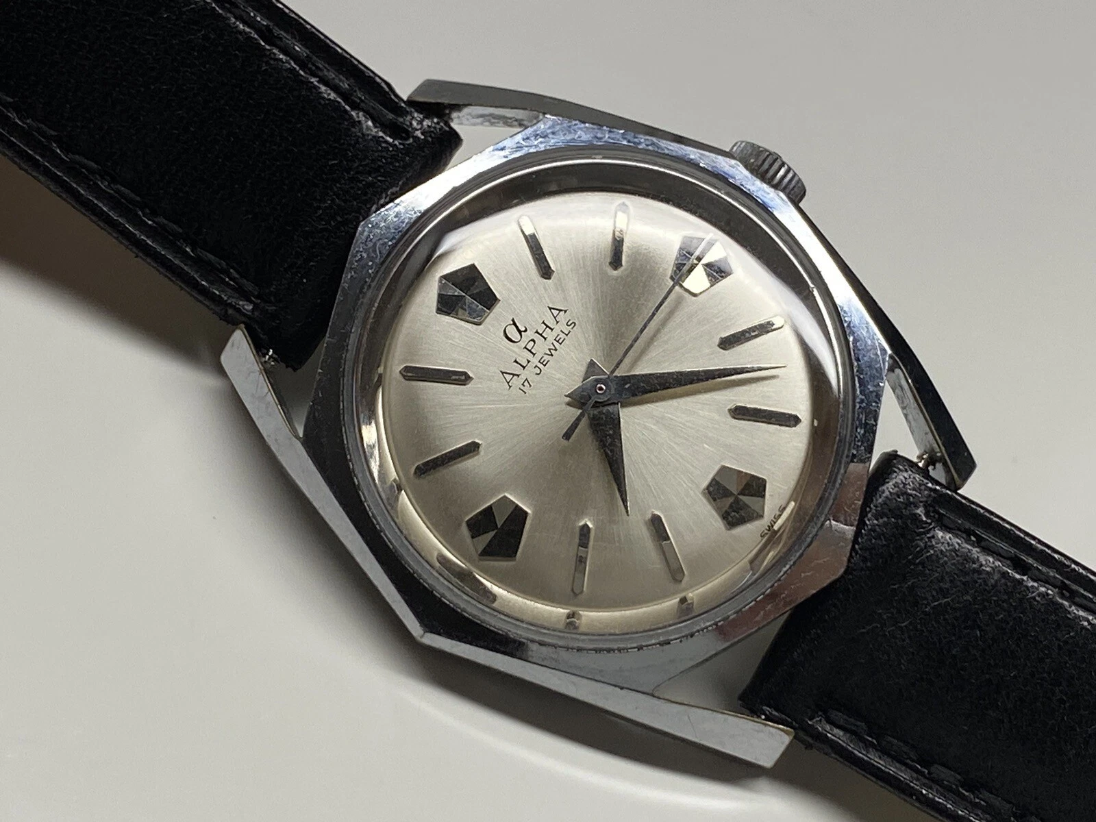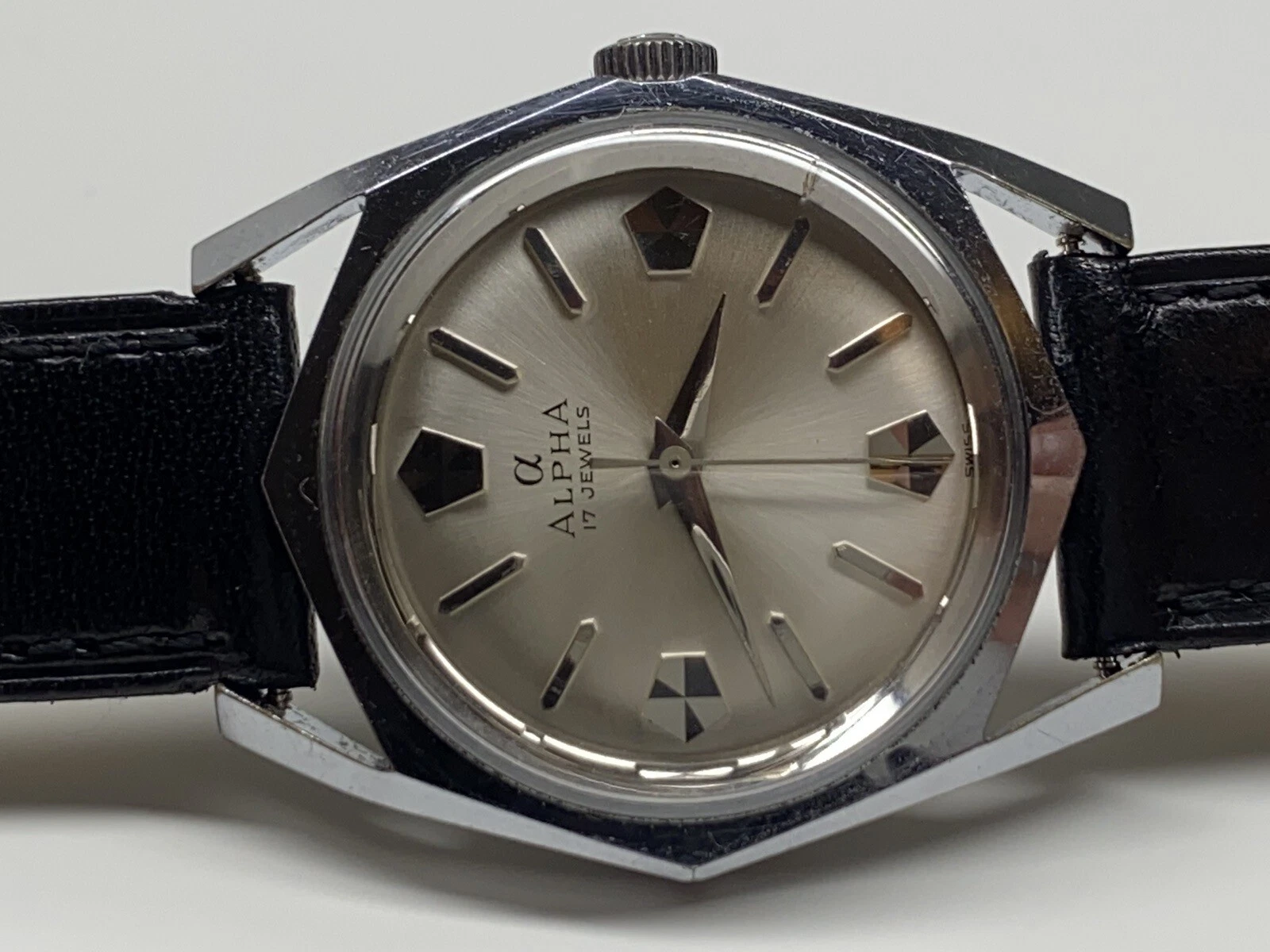 rare vintage alpha mechanical swiss made wristwatch