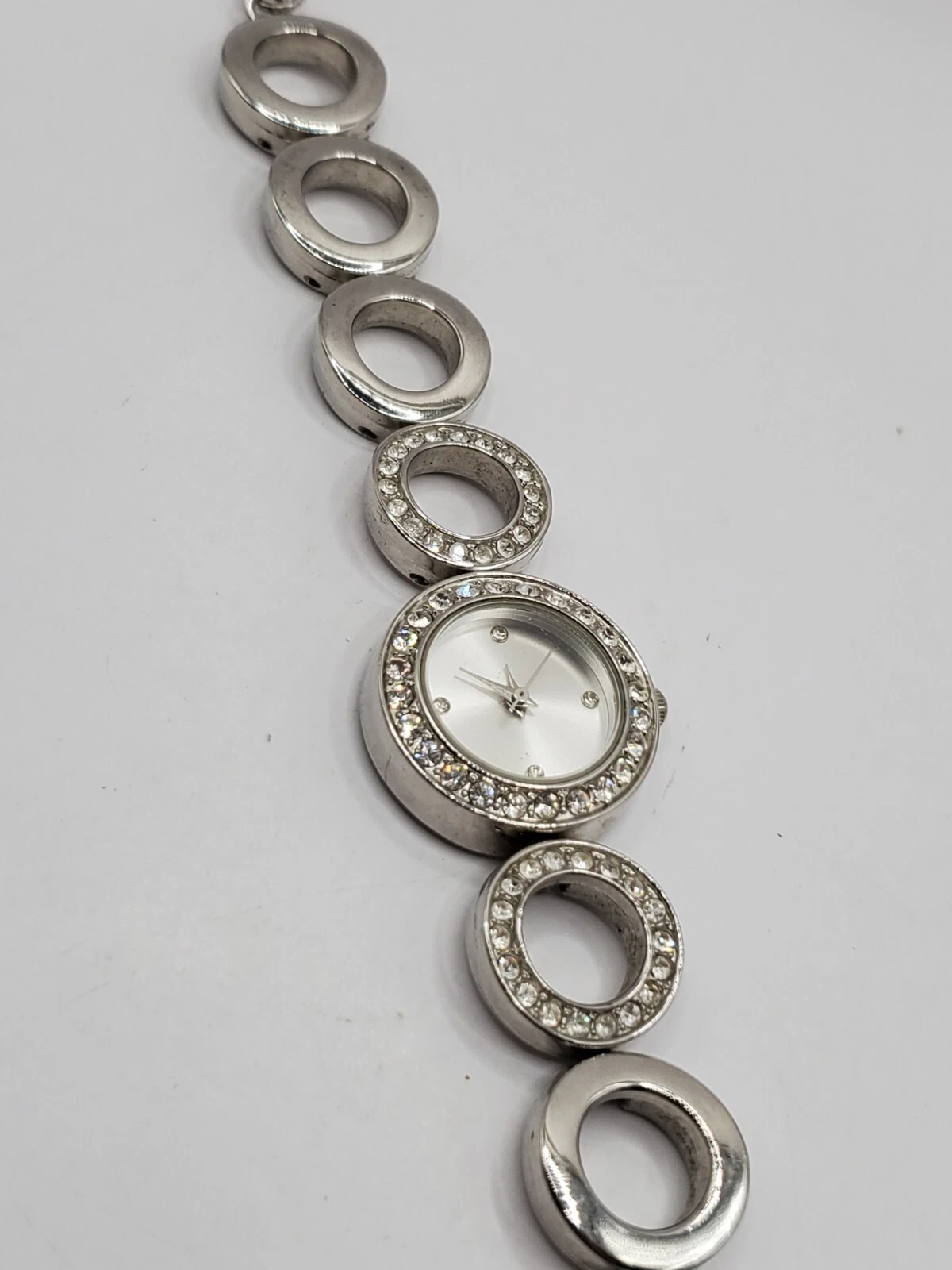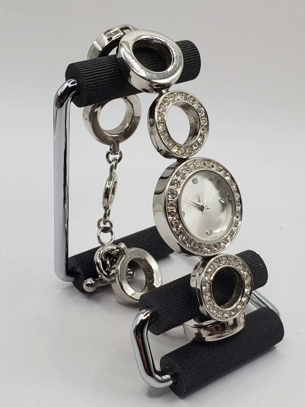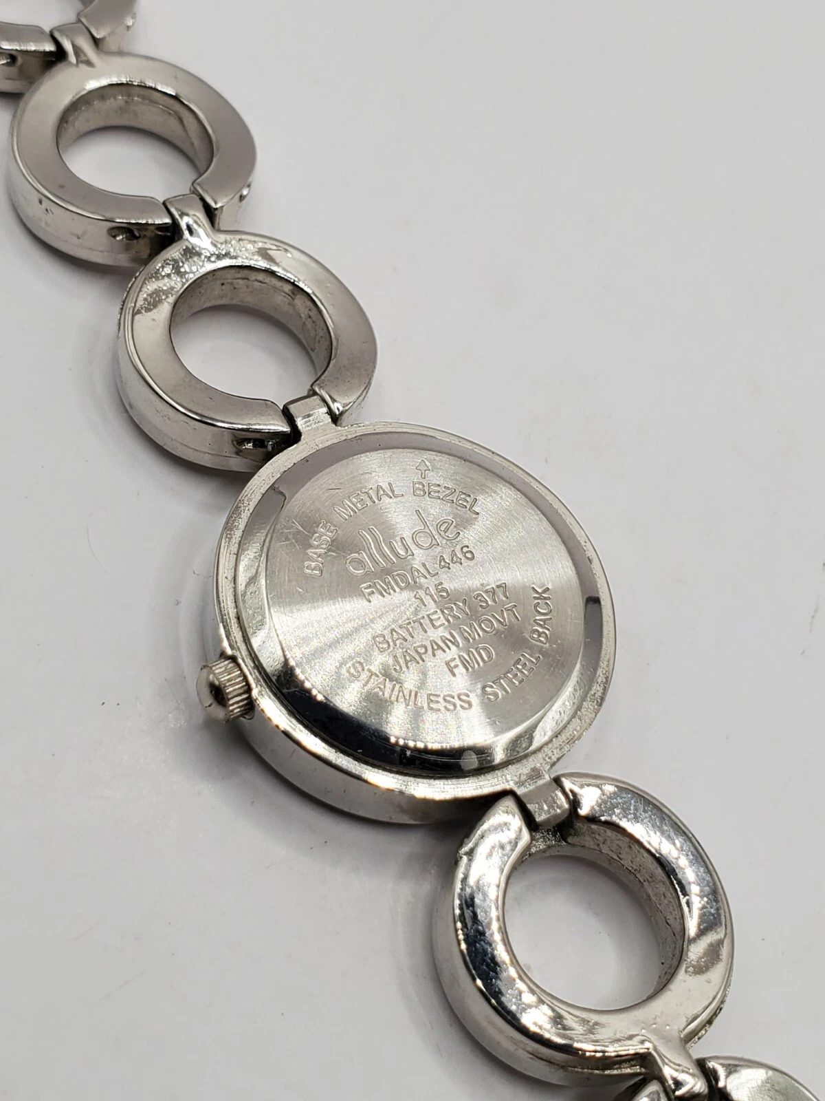 Allude Ladies Fashion Gemmed Quartz Watch 24mm Round Silver Tone Bracelet Band