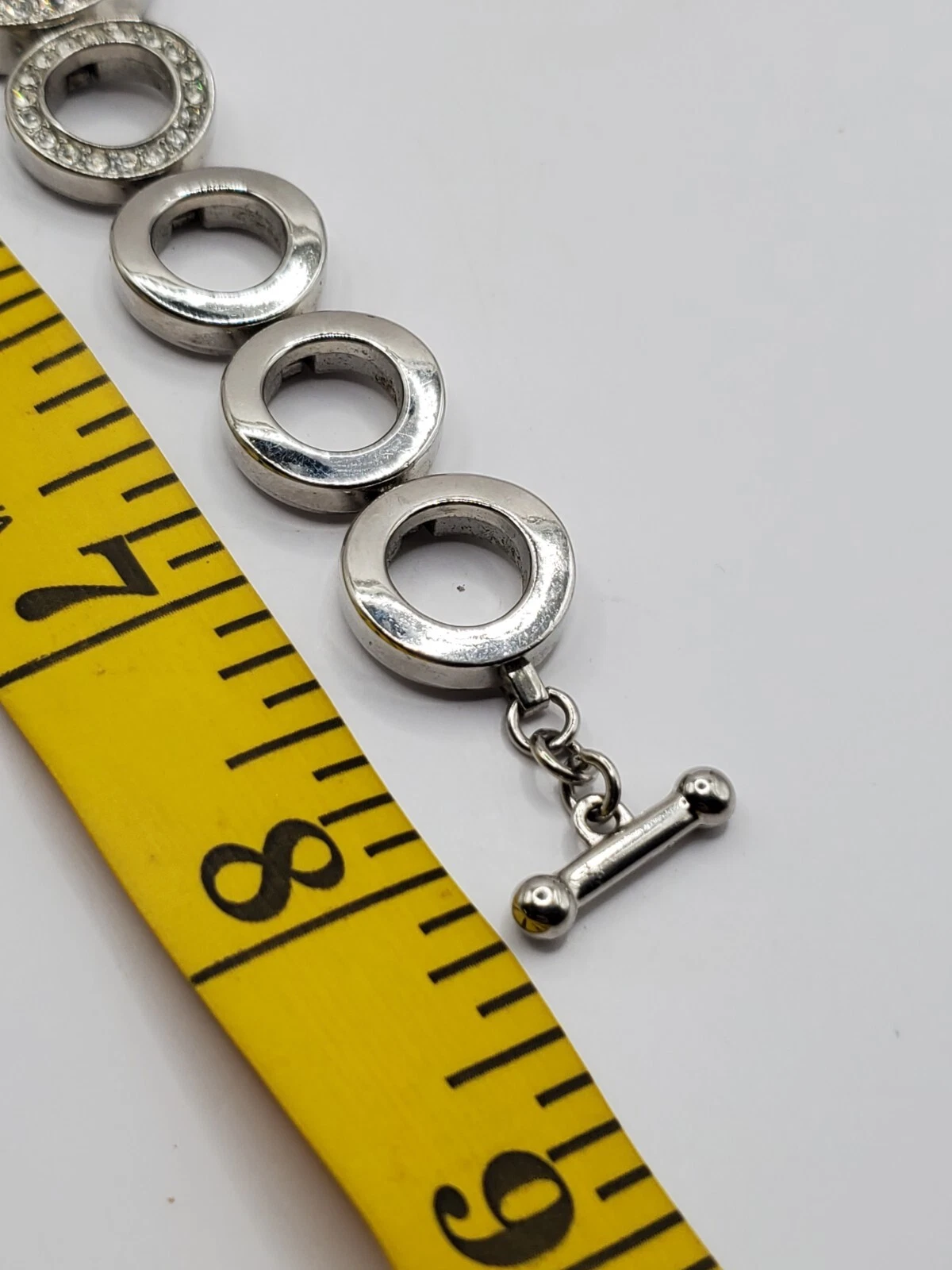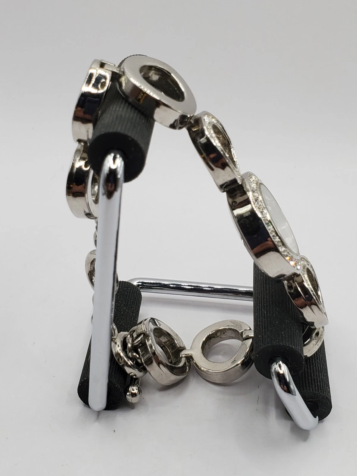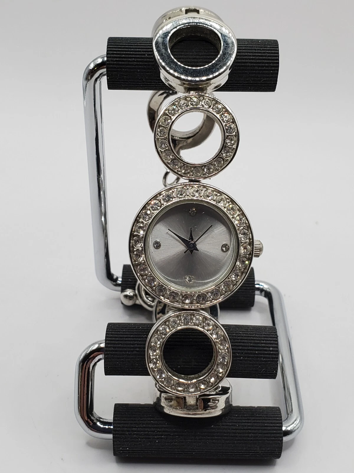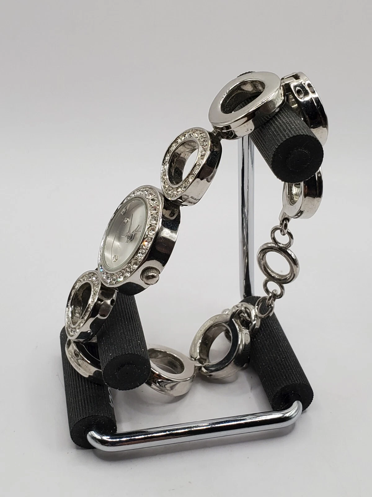 Allude Ladies Fashion Gemmed Quartz Watch 24mm Round Silver Tone Bracelet Band