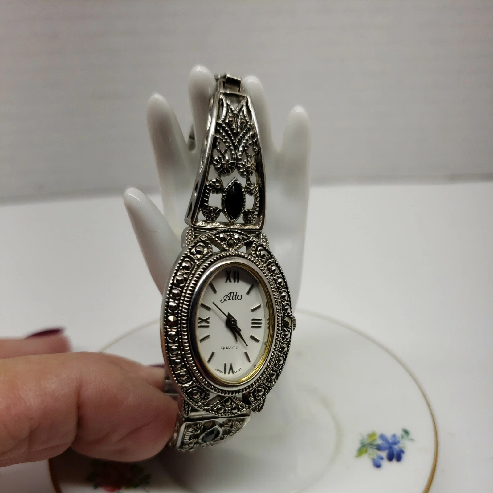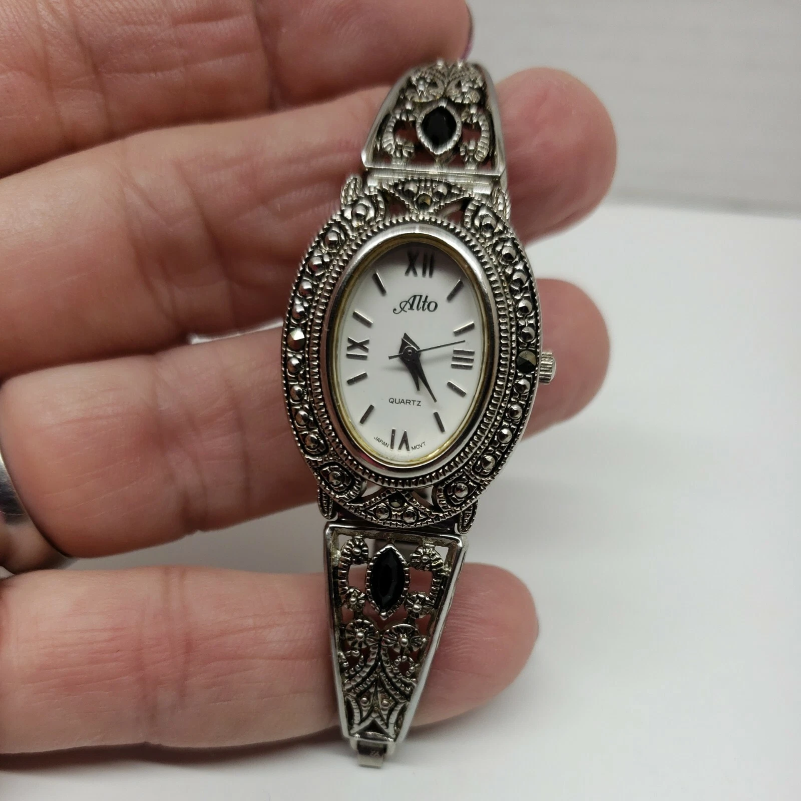 Alto Marcasite and Rhinestone Bracelet Watch. Stretch band. EUC NEW BATTERY