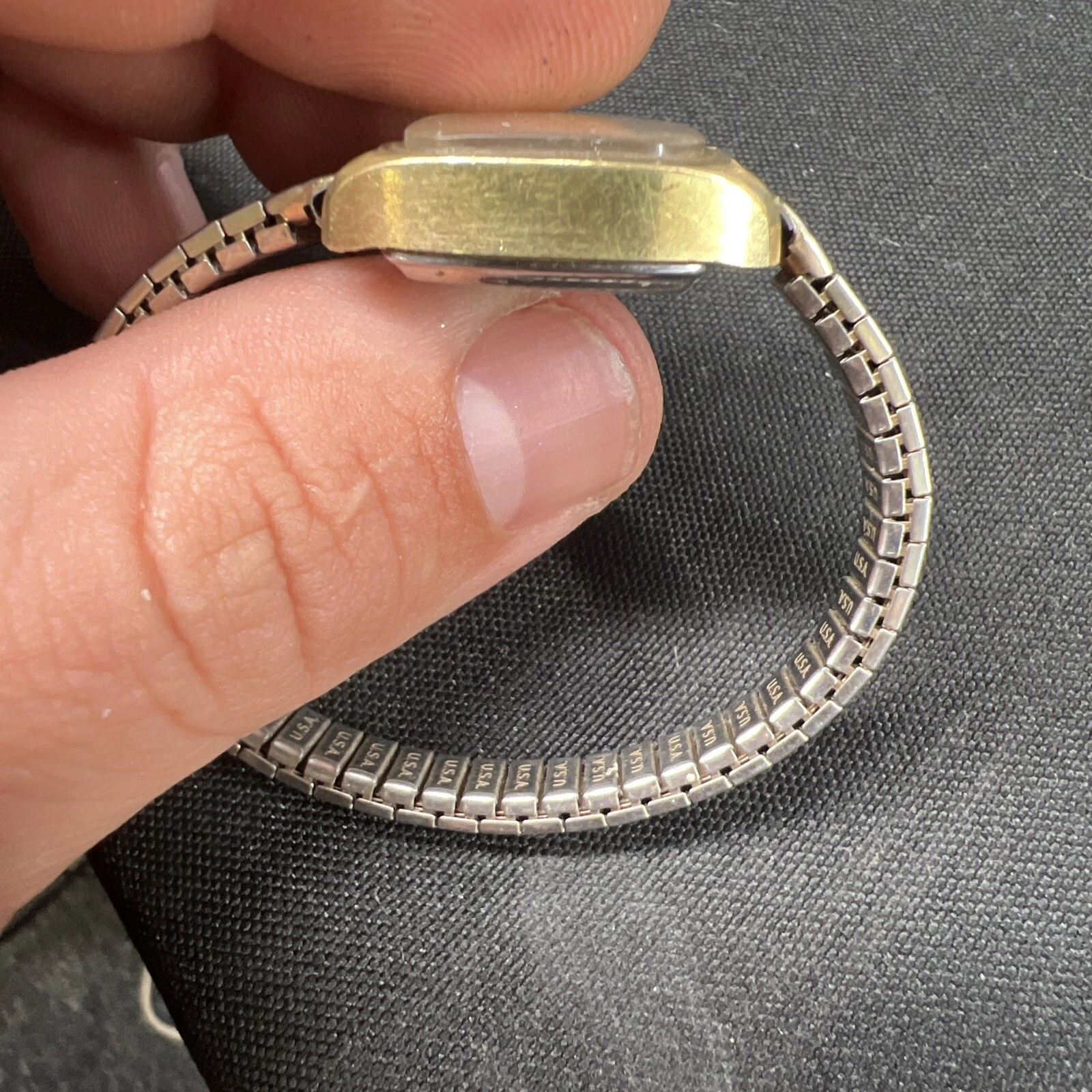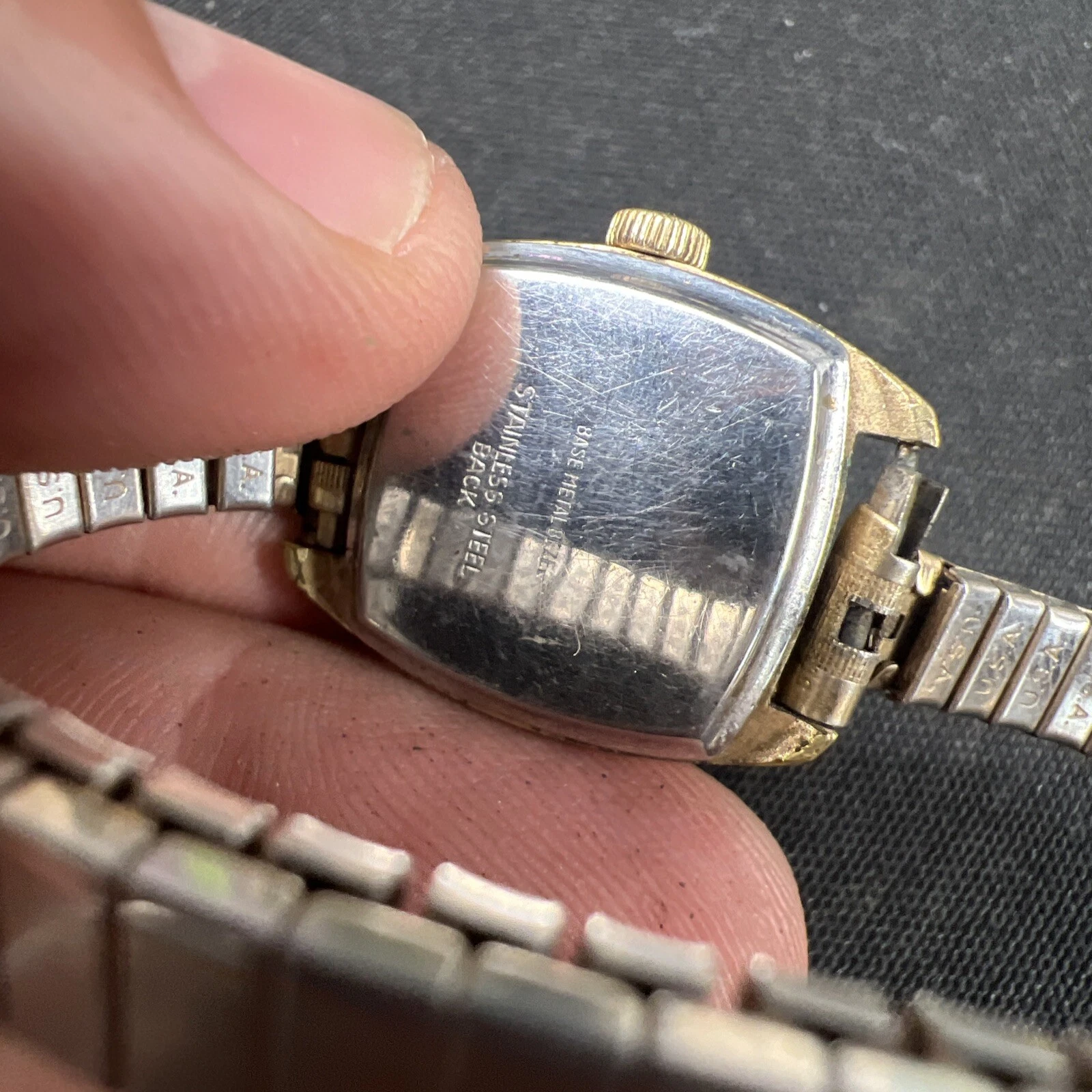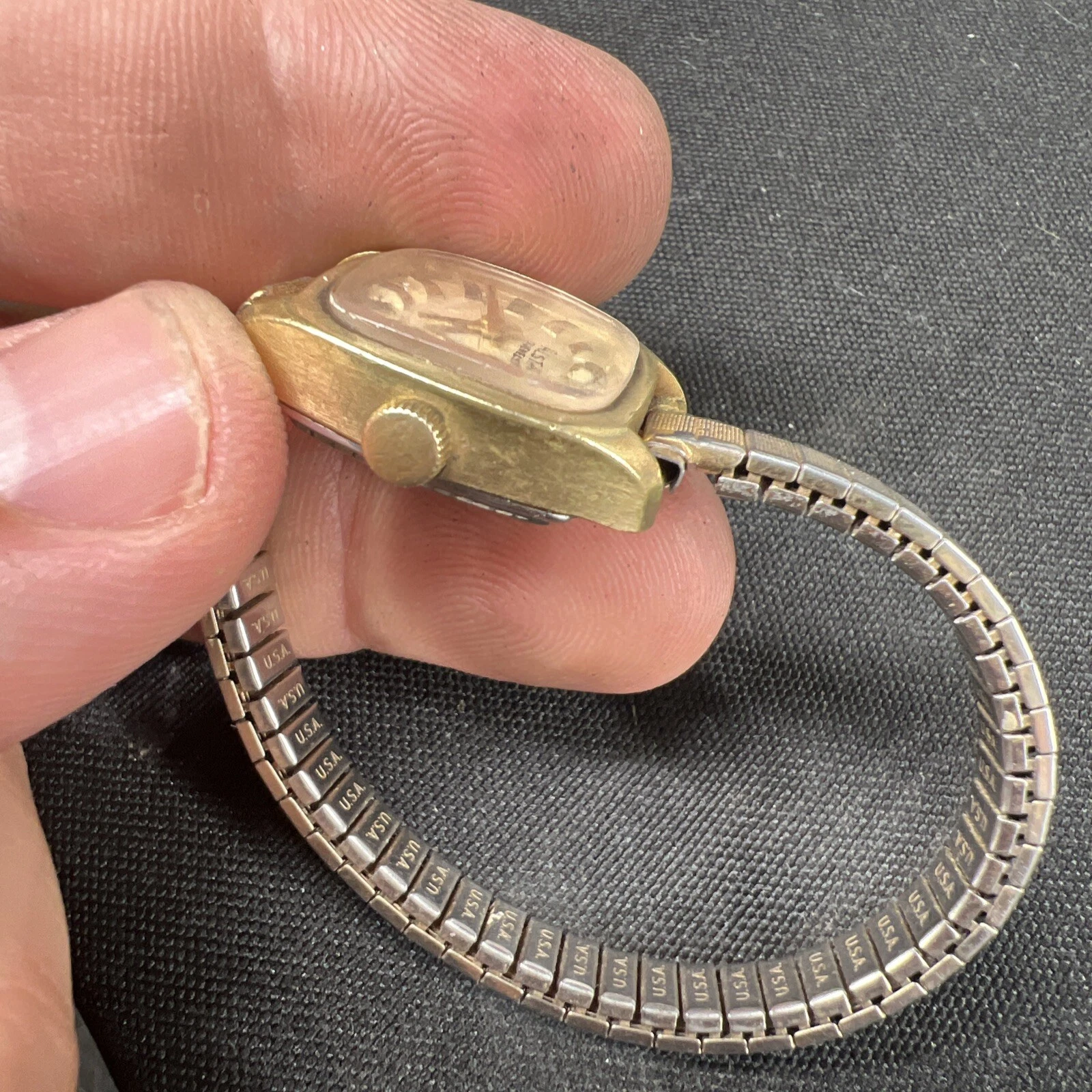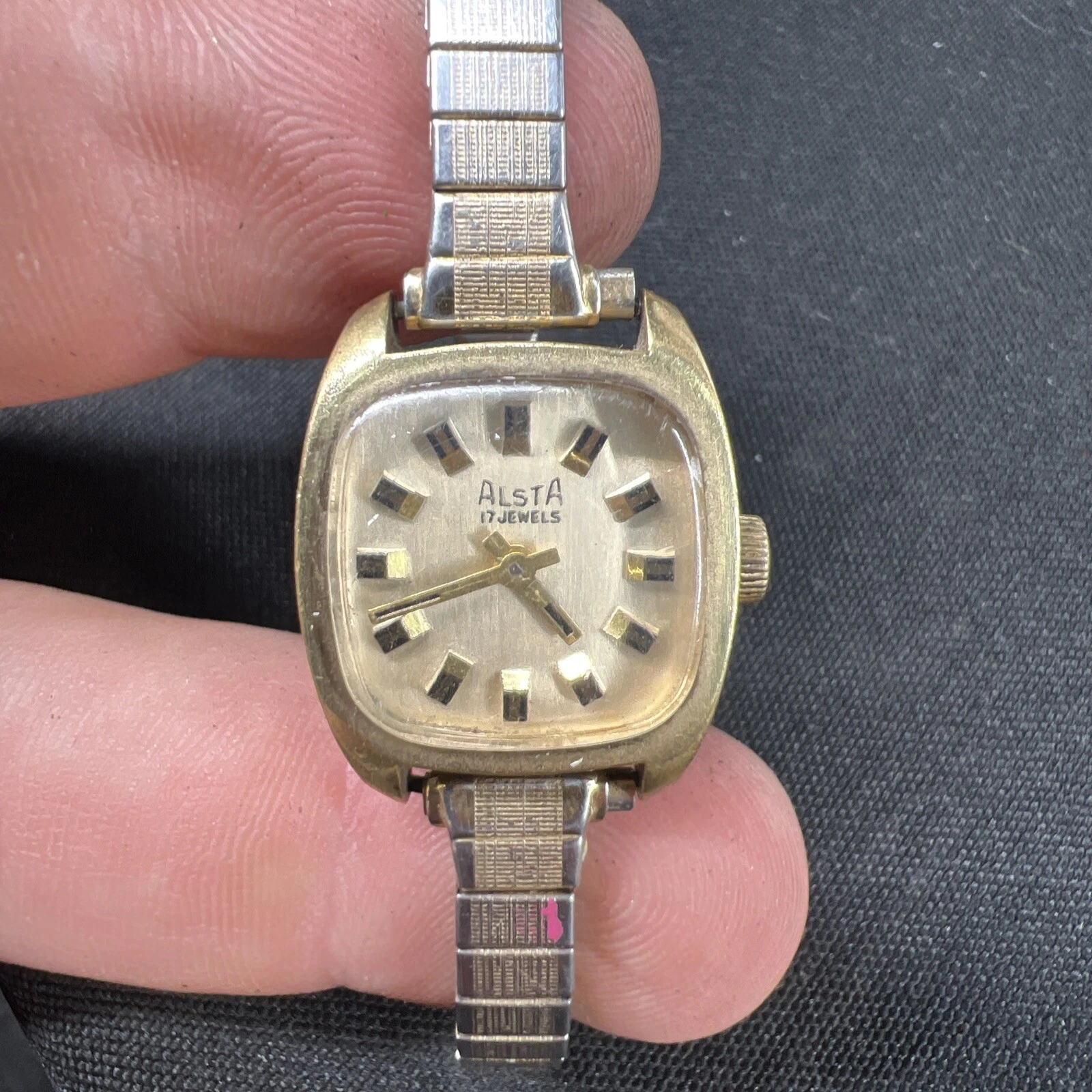 Vtg ALSTA 17 Jewel Gold Women’s Watch Manual Wind 20mm USA Stretch Band