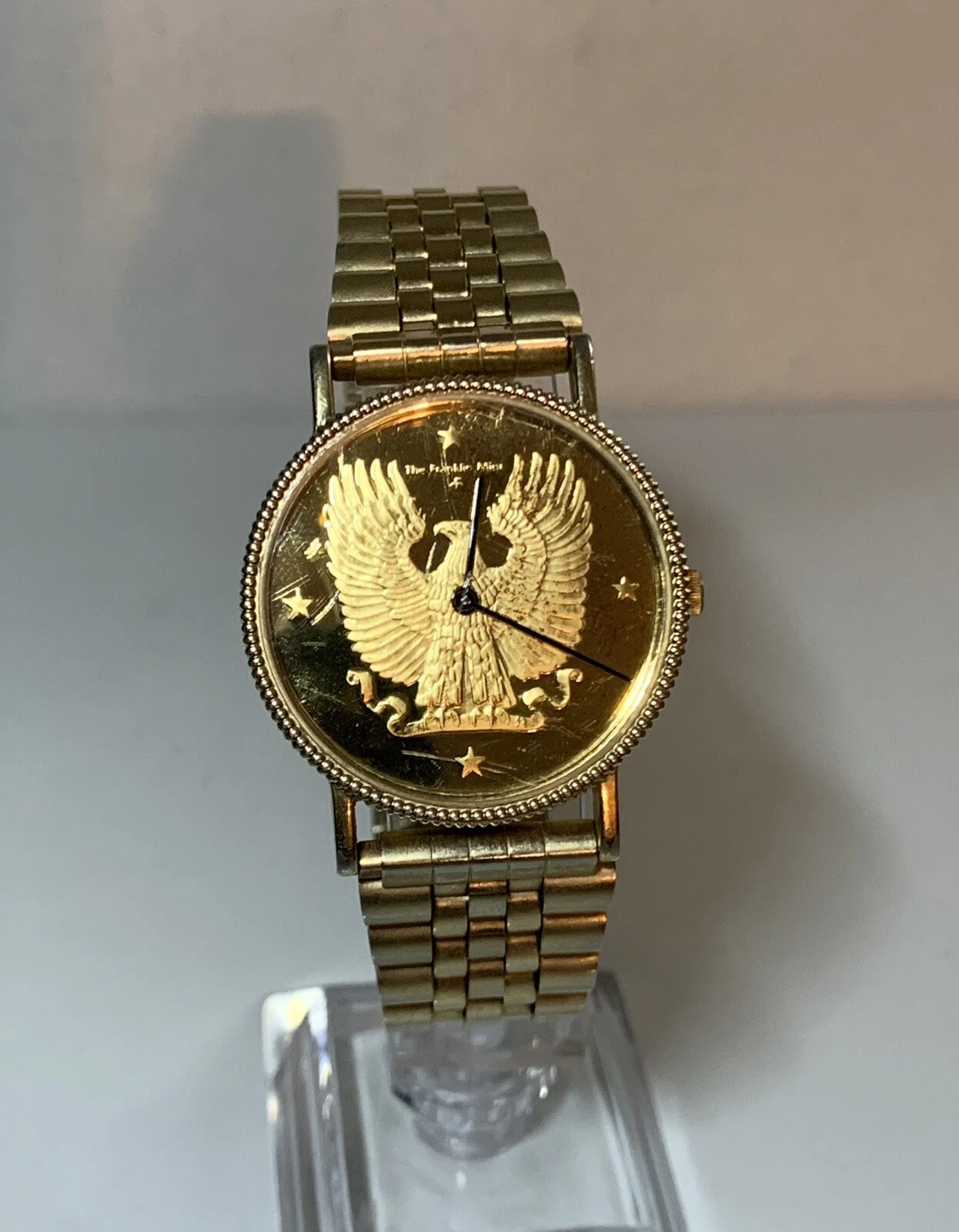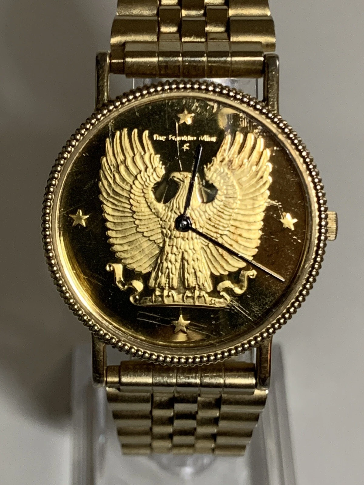 THE FRANKLIN MINT AMERICAN EAGLE DIAL SWISS MOV’T 1988 FLEX BAND UNTESTED