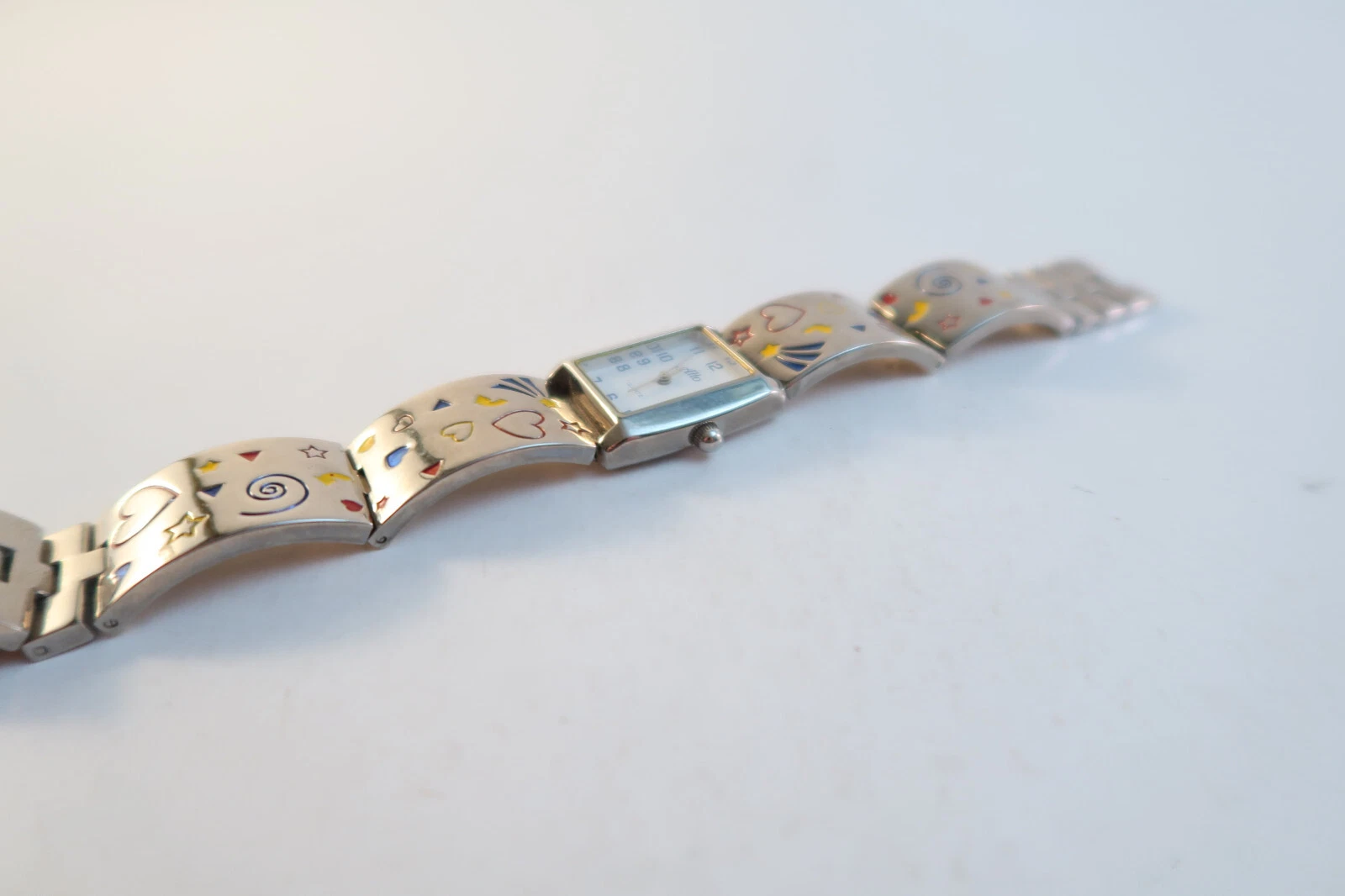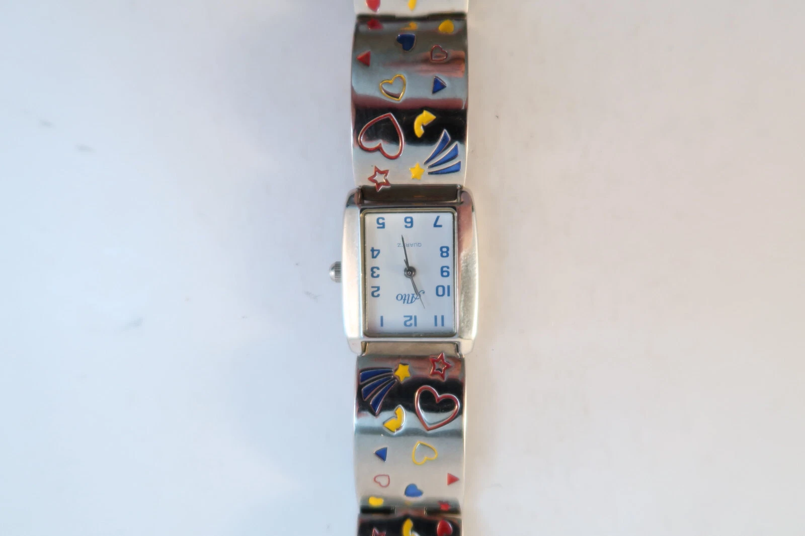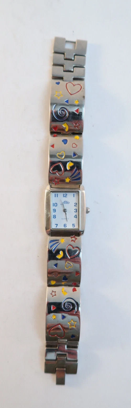 Alto Women's Watch Japan Movement Base Metal Bezel Silver Hearts Stars Swirls