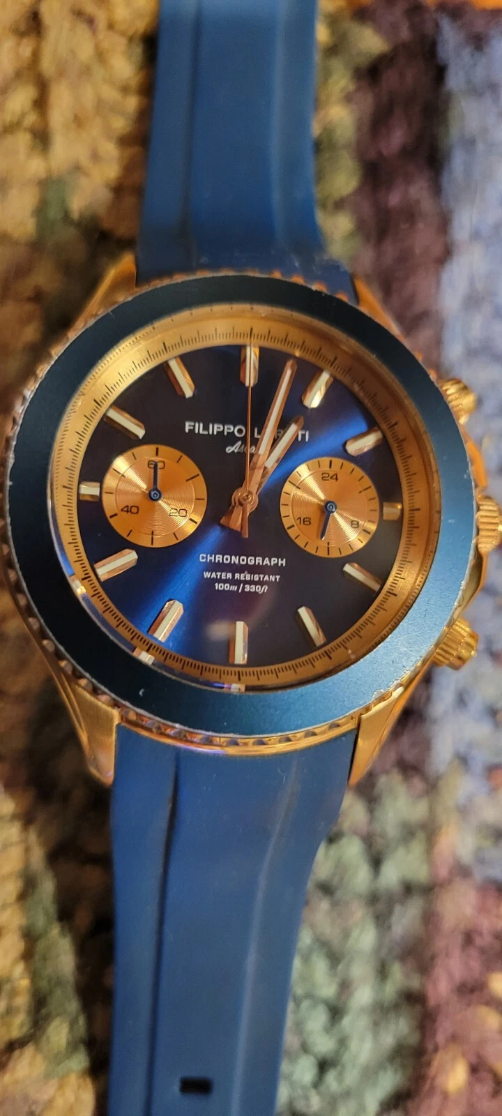 Filippo Loreti Ascari Chronograph Quartz Men's Watch - Rose Gold and Blue