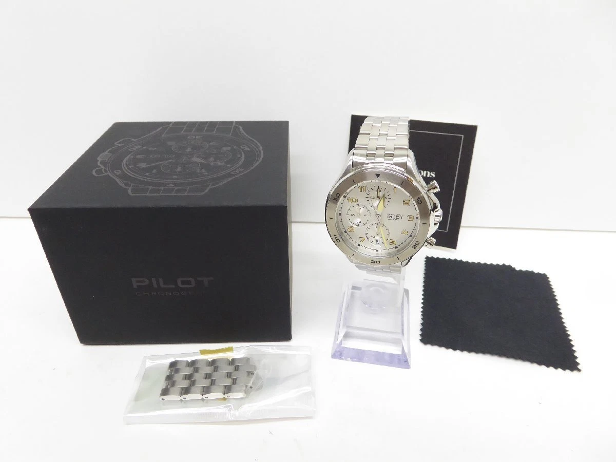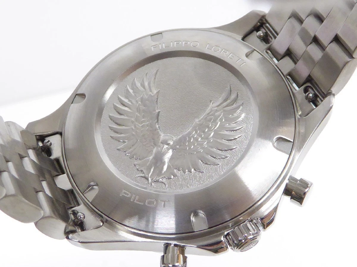 FILIPPO LORETI PILOT Quartz Men's Used Watch Chronograph Silver White Dial