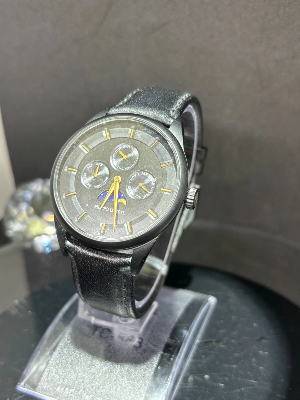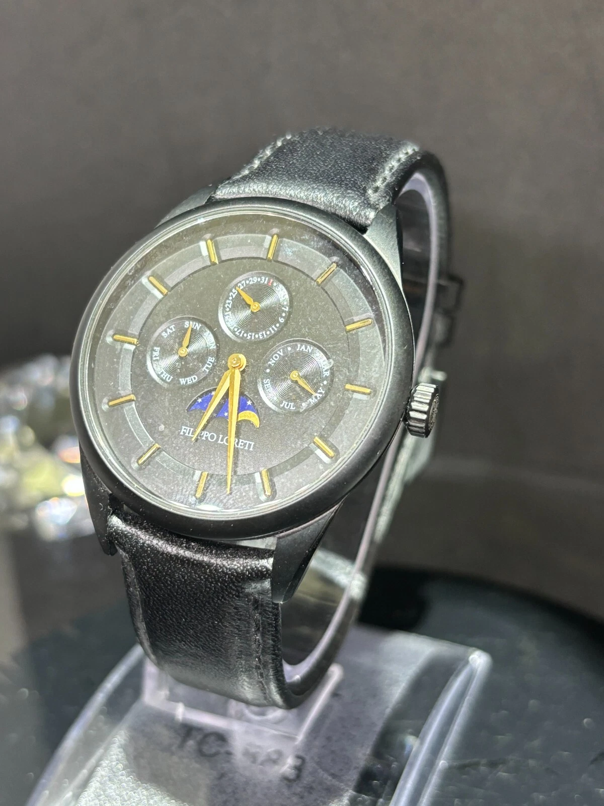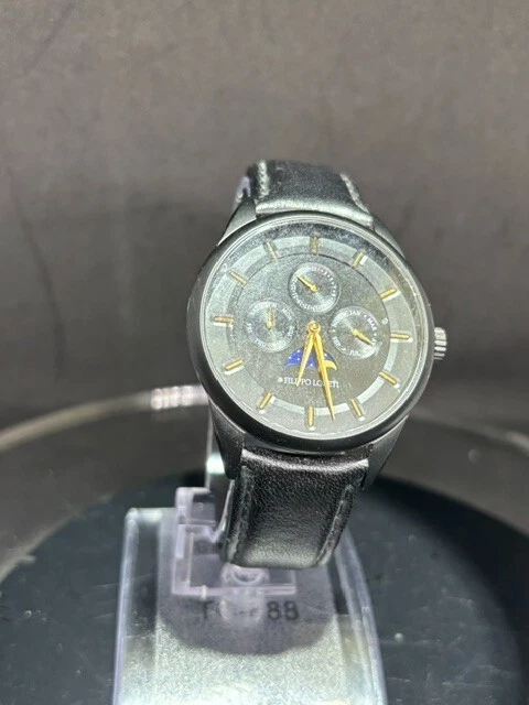 Filippo Loreti Venice Moon Phase Black Dial 40mm Men's Watch Italian Leather