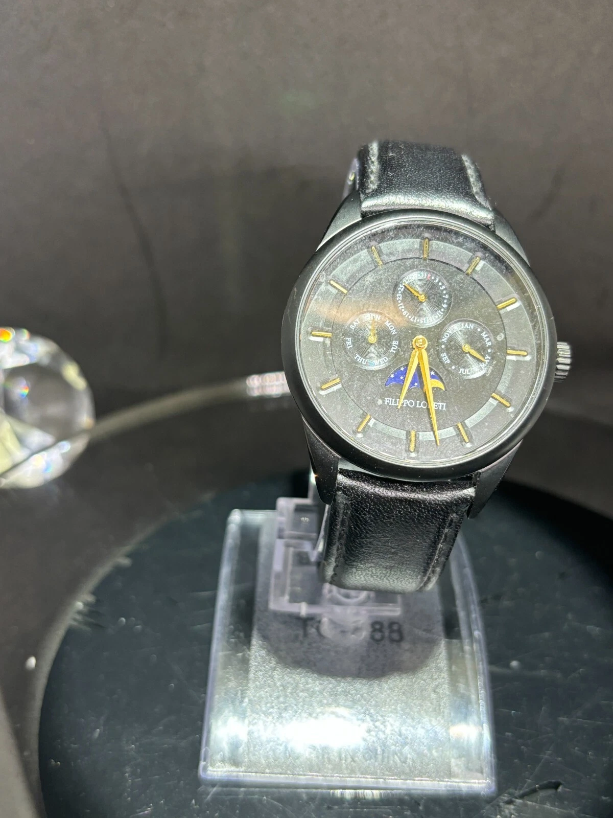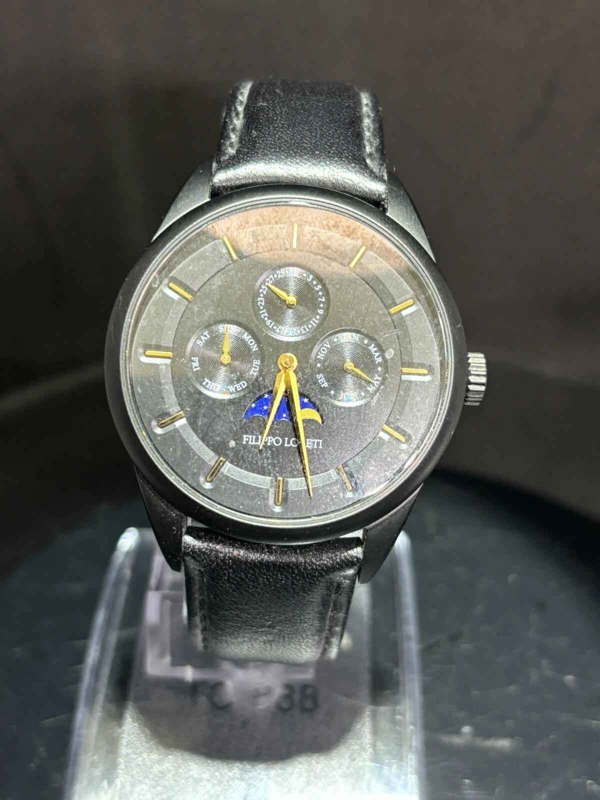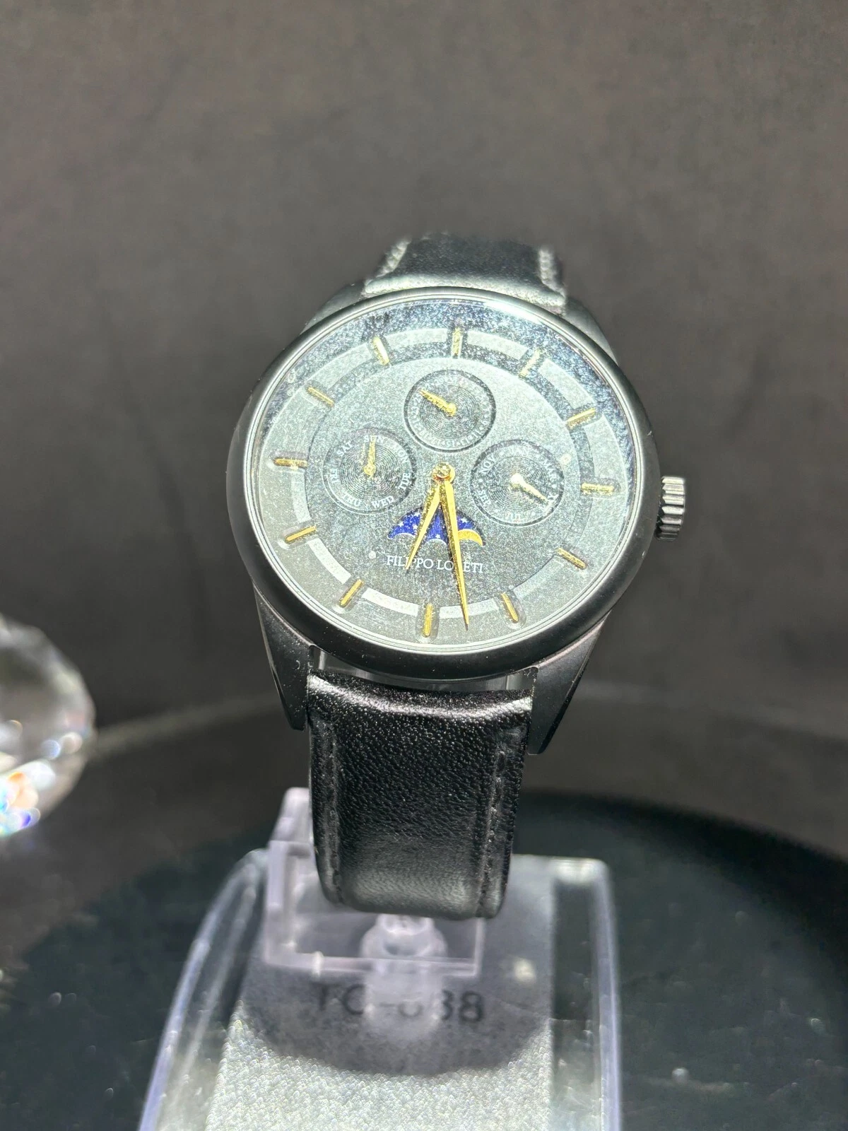 Filippo Loreti Venice Moon Phase Black Dial 40mm Men's Watch Italian Leather