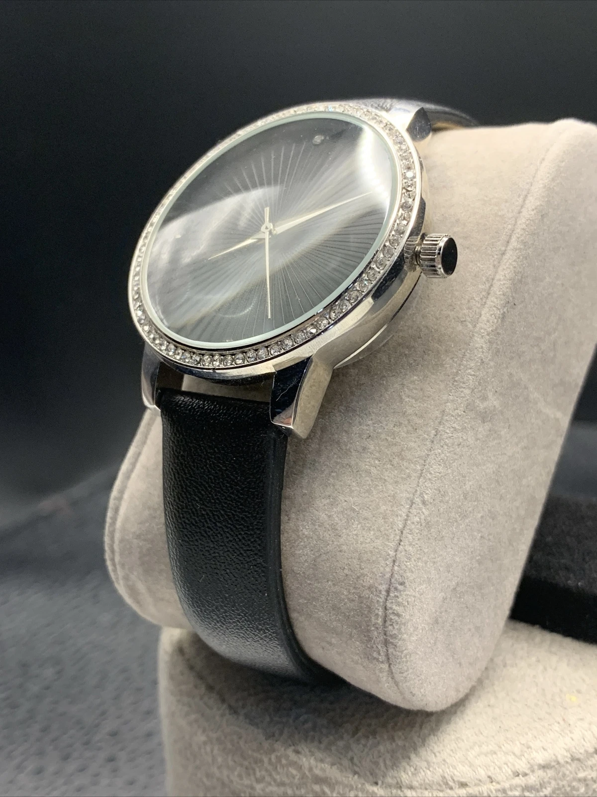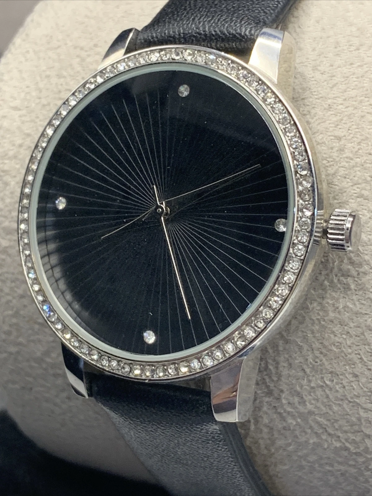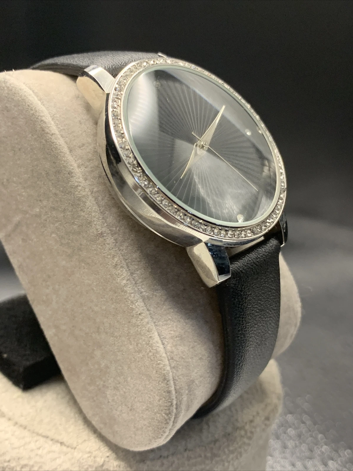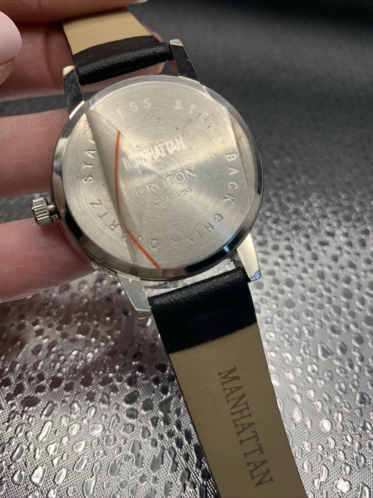 MANHATTAN BY CROTON Ladies Watch Black Dial Black Strap Quartz