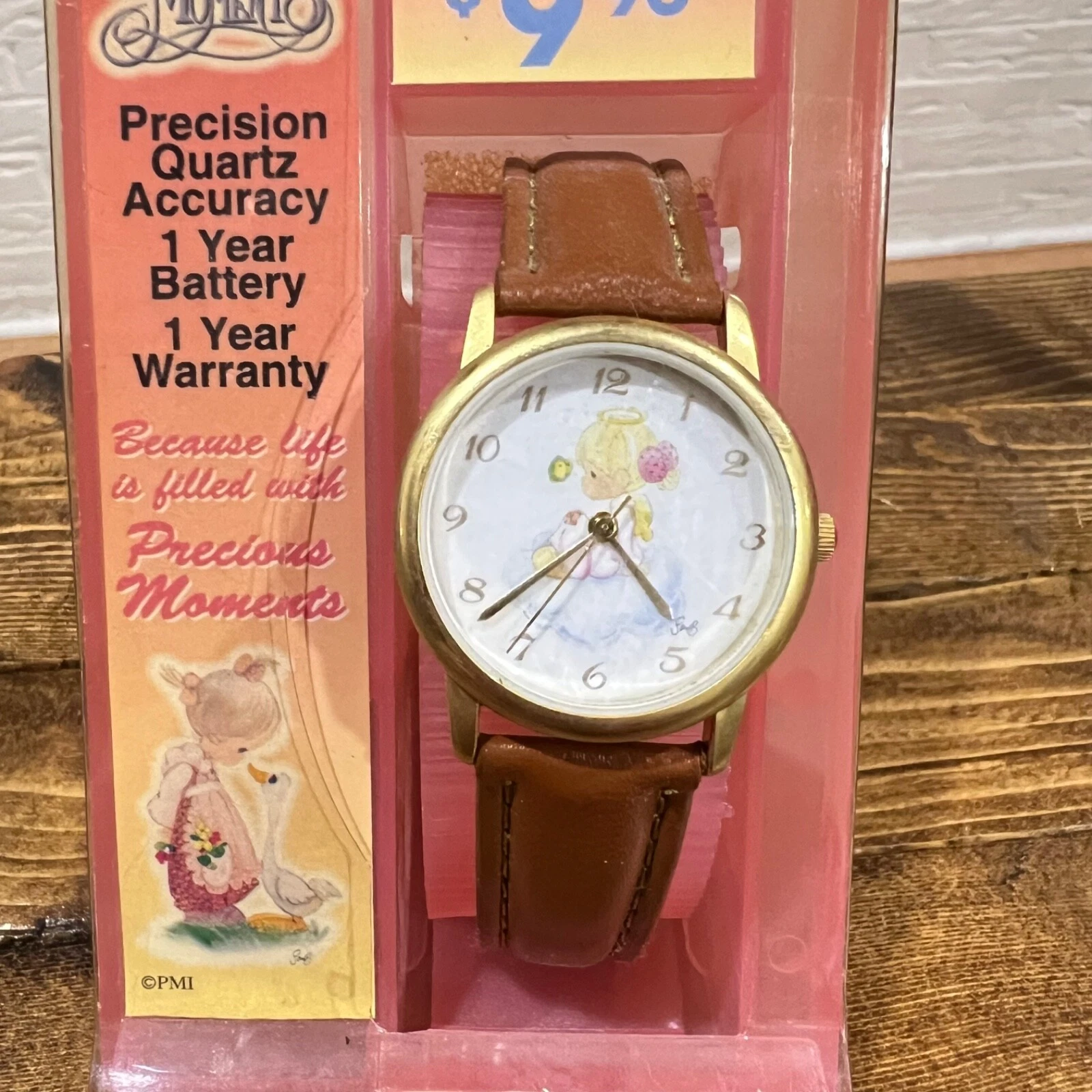 New Precious Moments Gold Tone Precision Quartz Leather Band Watch