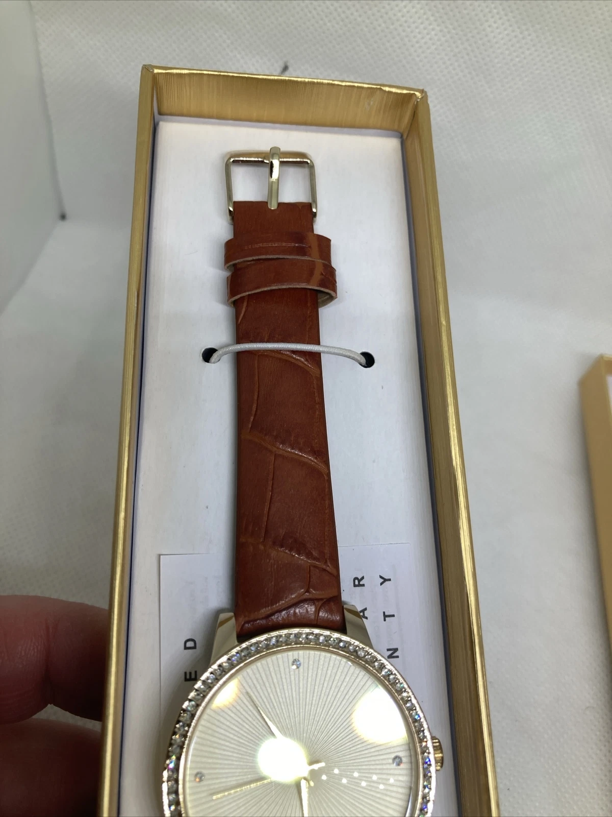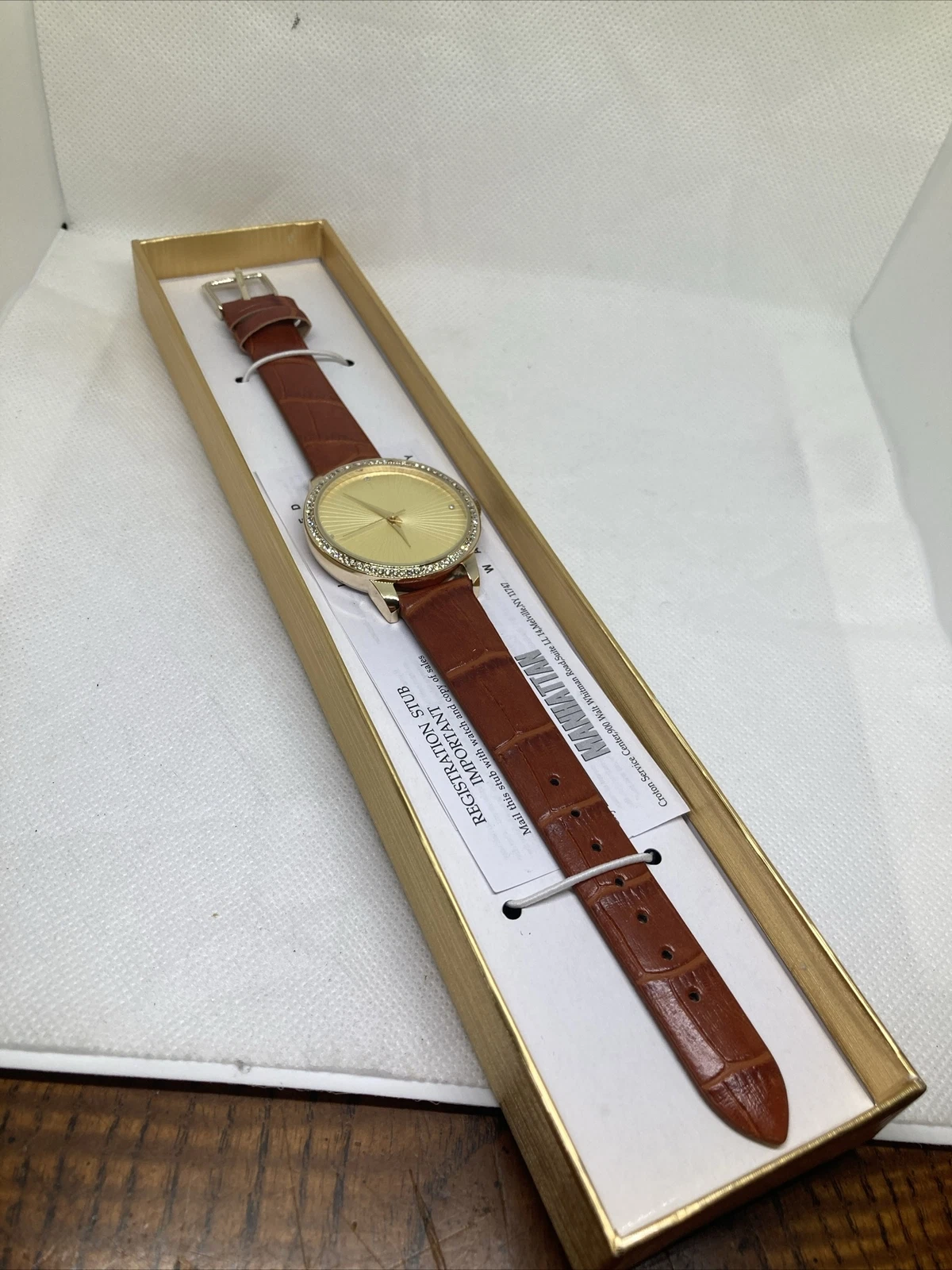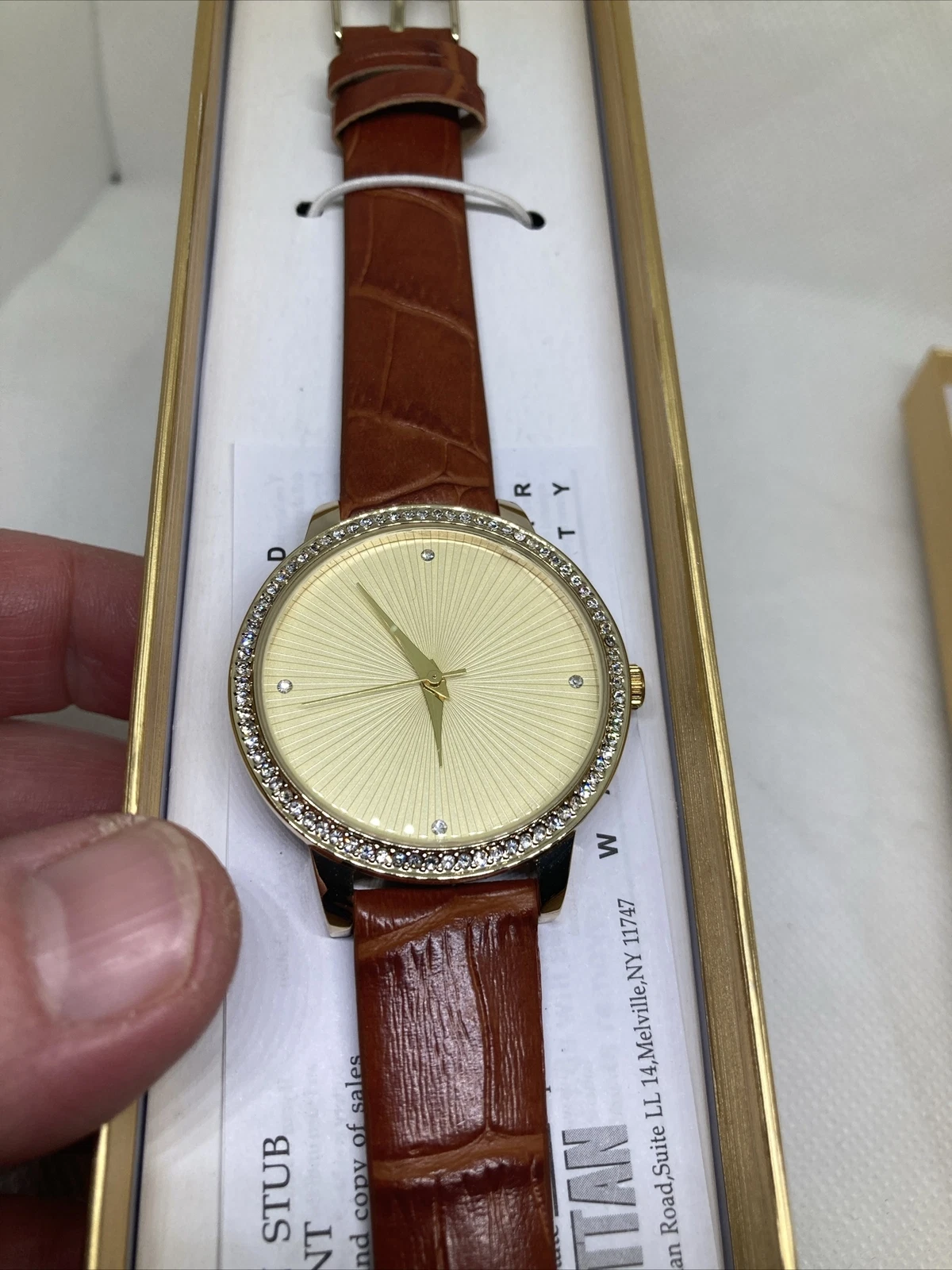 New Boxed Manhattan By Croton Brown Jeweled Ladies Watch